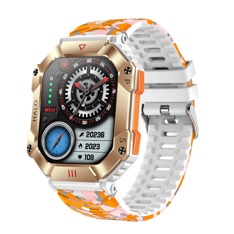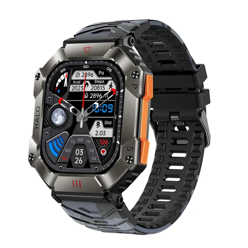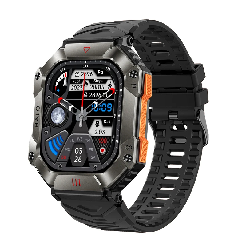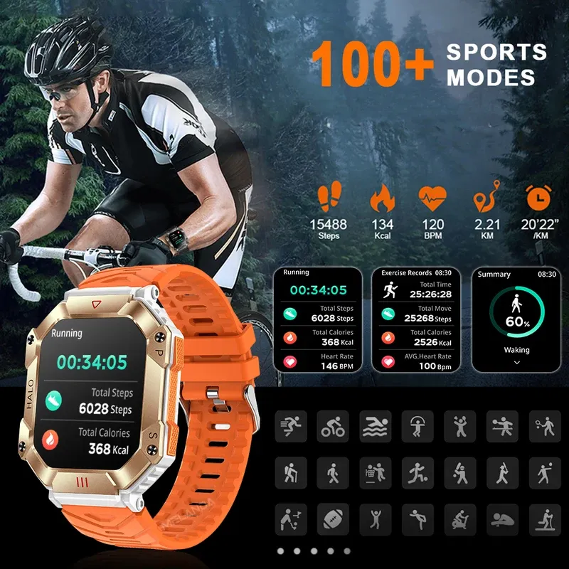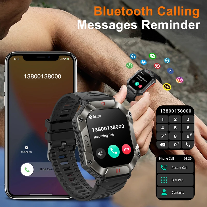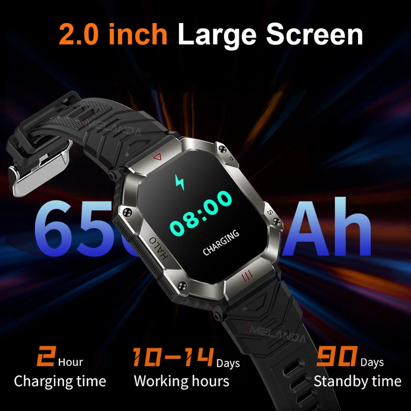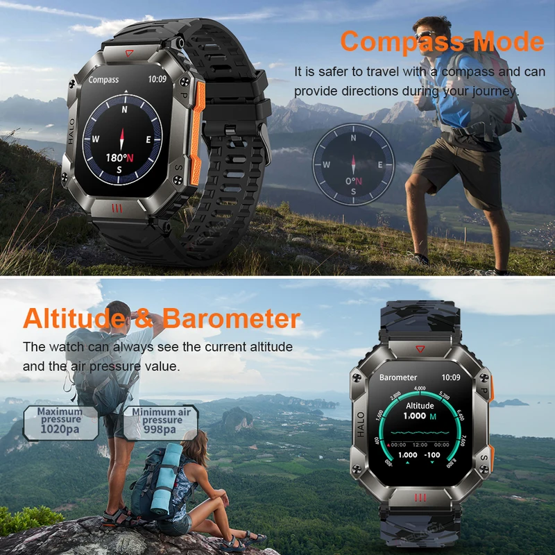 Hit 2.0 "Bluetooth call smart watch men 100 fitness tracker compass altitude barometric smartwatch for Android iOS 650mAh