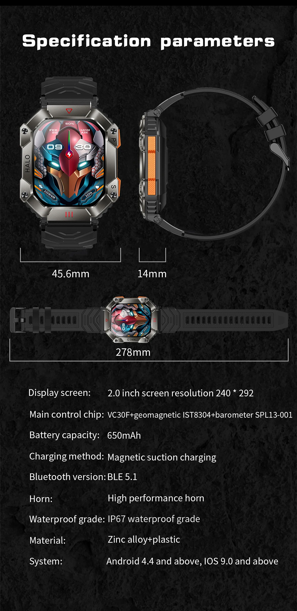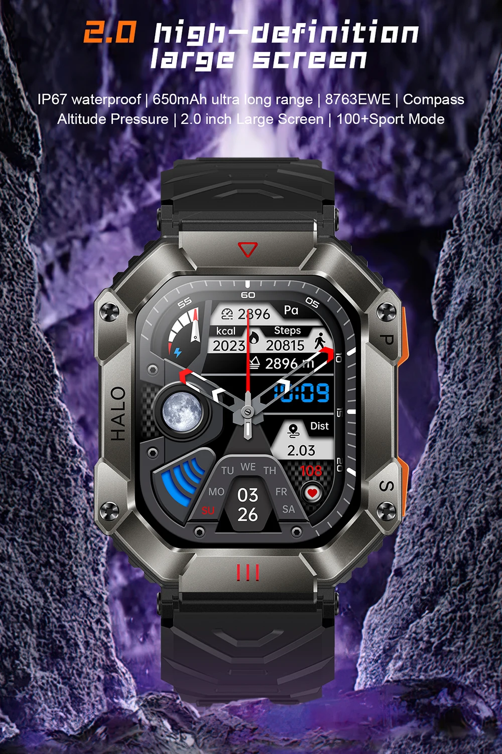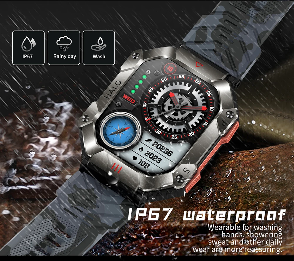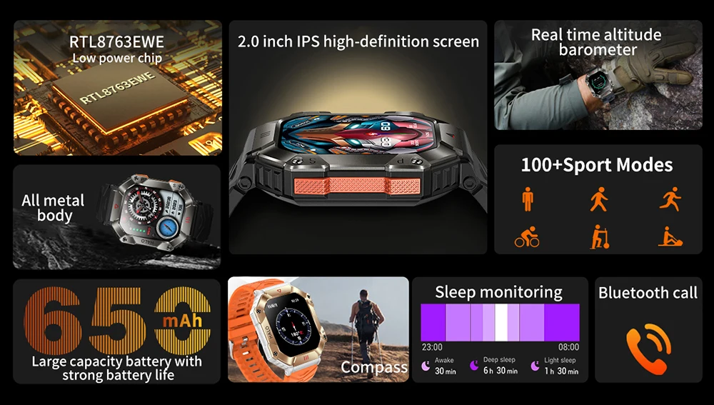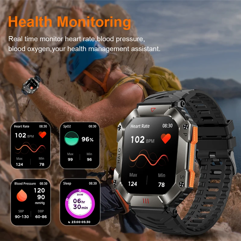 Hit 2.0 "Bluetooth call smart watch men 100 fitness tracker compass altitude barometric smartwatch for Android iOS 650mAh