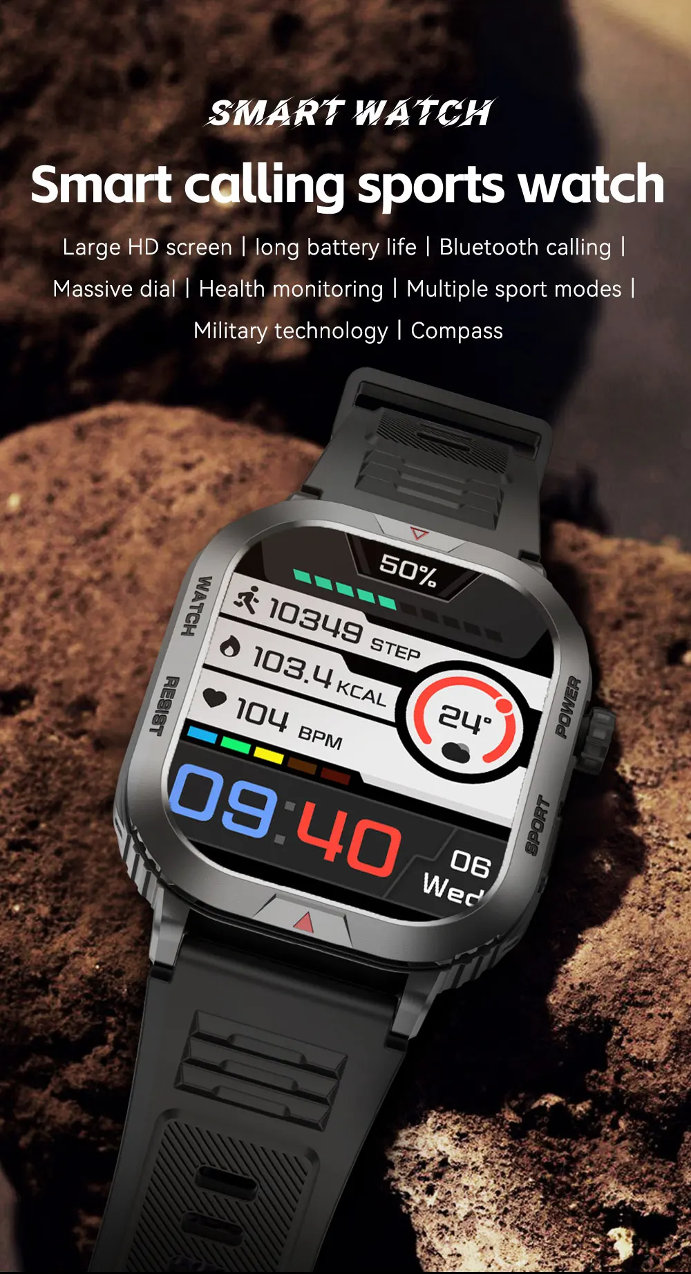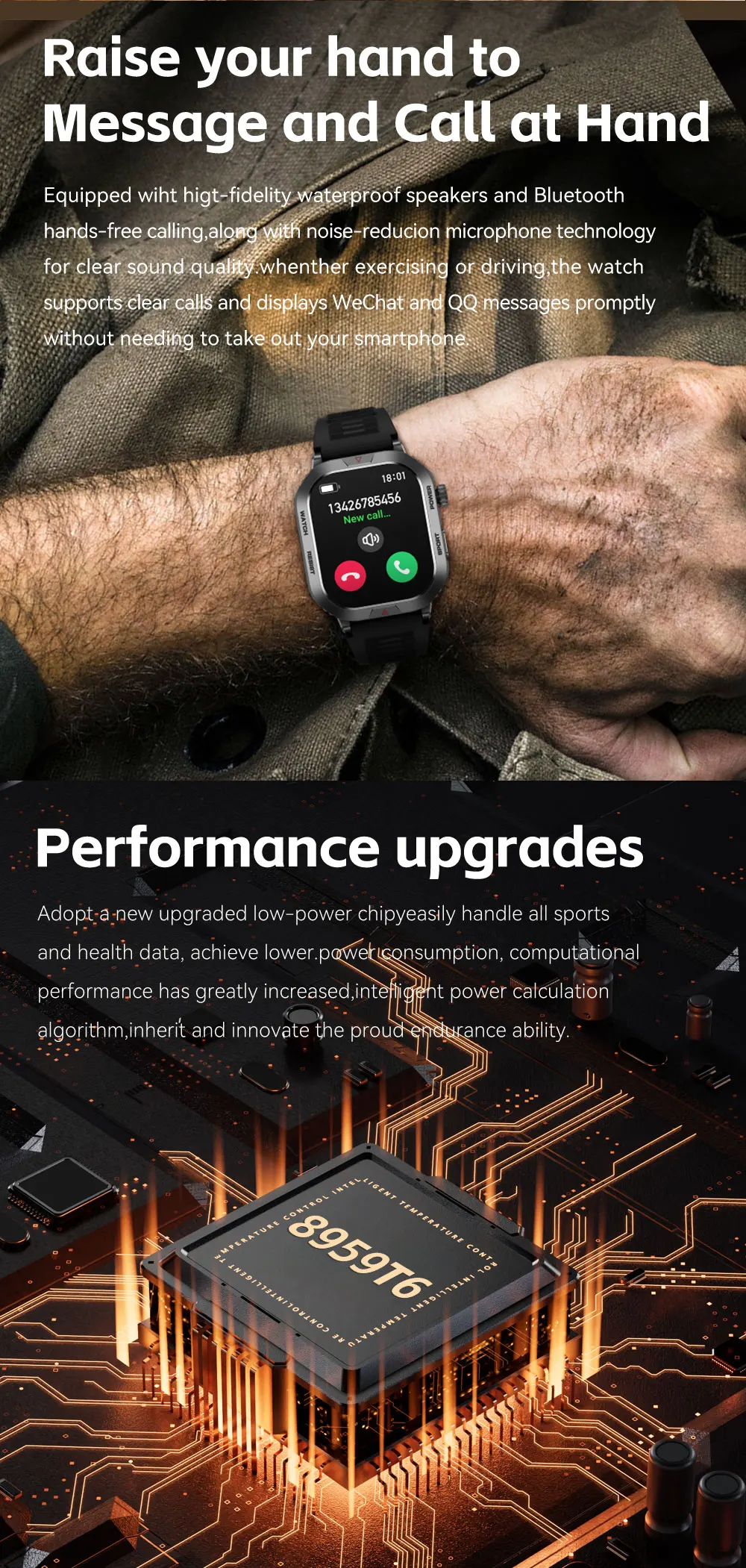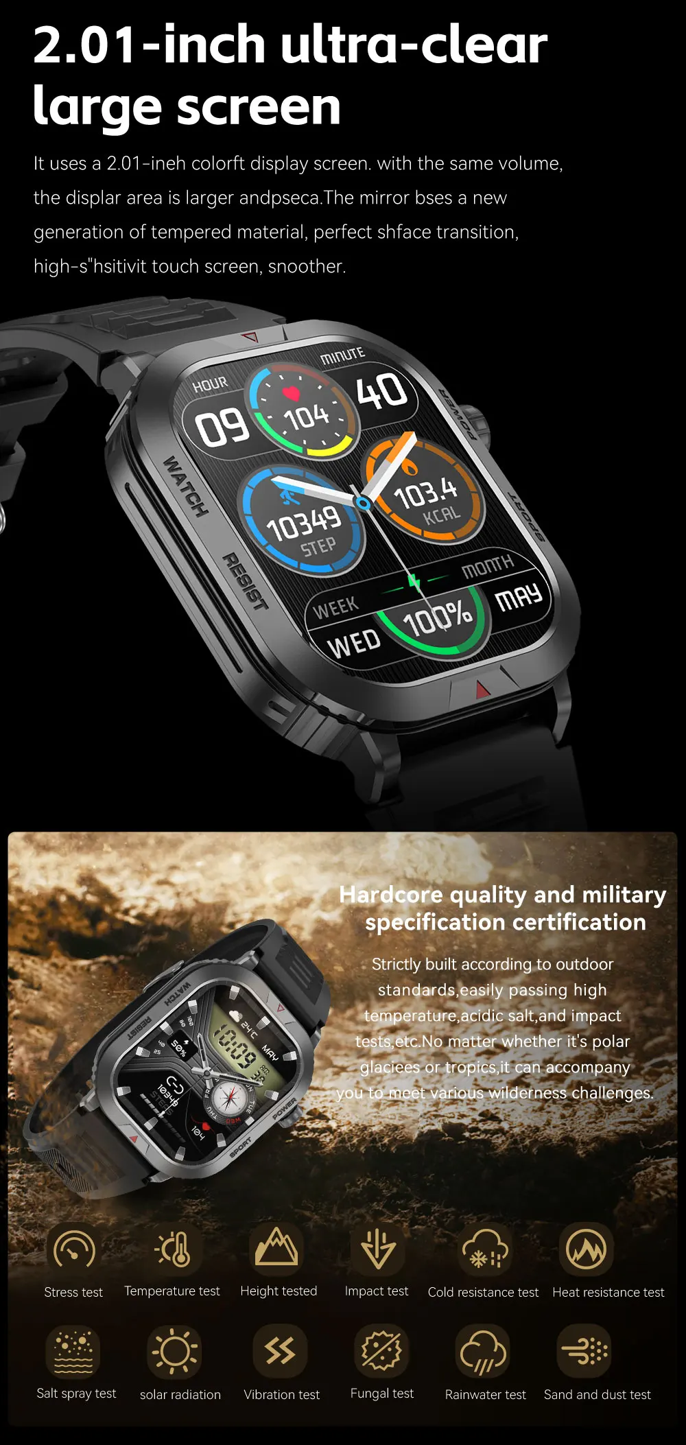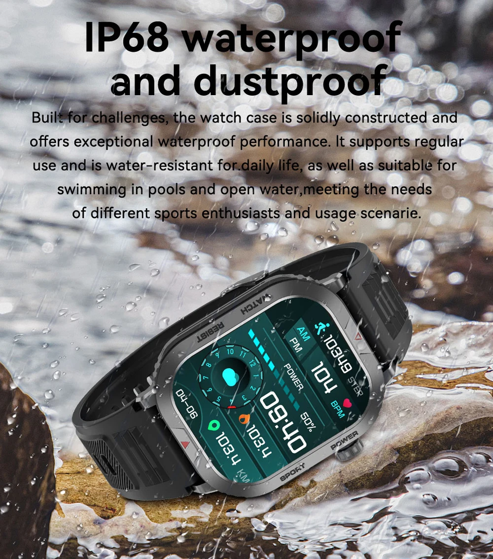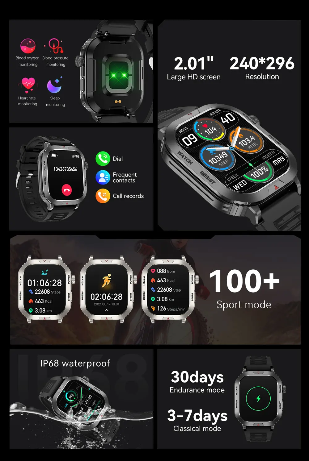 Hit 2.01 "HD Bluetooth call men outdoor smart watch Sports Tracker health monitoring IP68 smart watch for Android iOS zw66