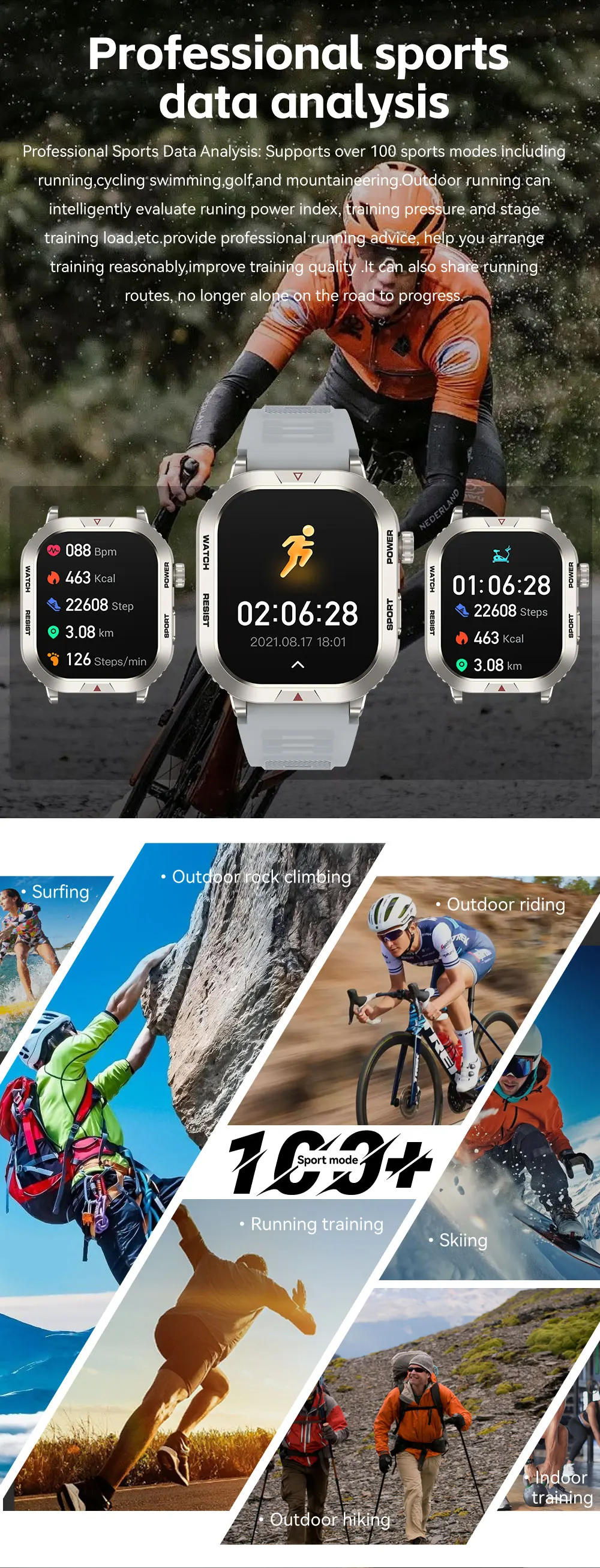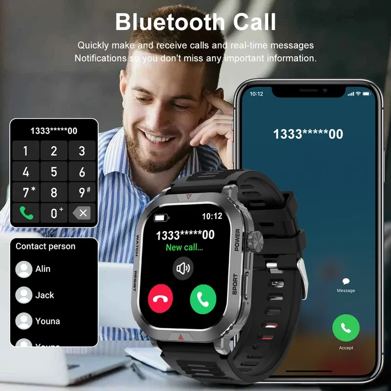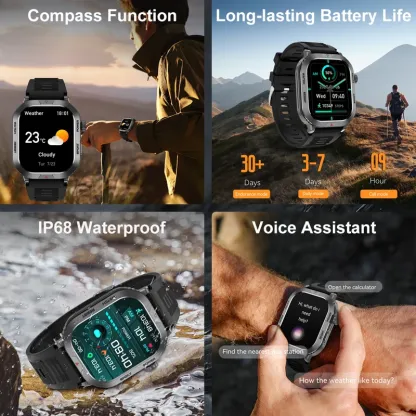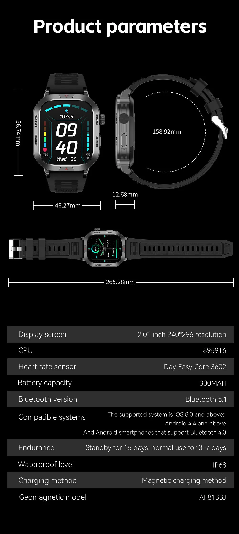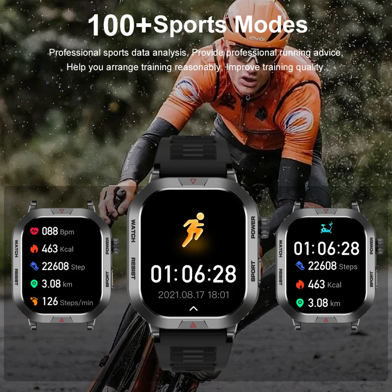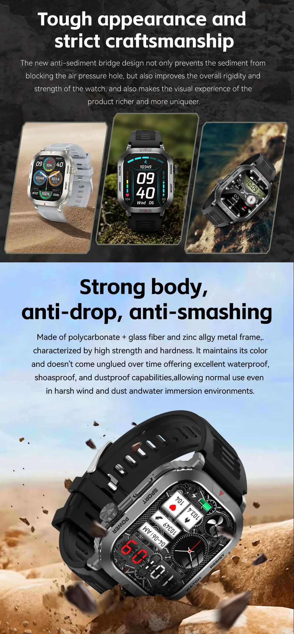 Hit 2.01 "HD Bluetooth call men outdoor smart watch Sports Tracker health monitoring IP68 smart watch for Android iOS zw66