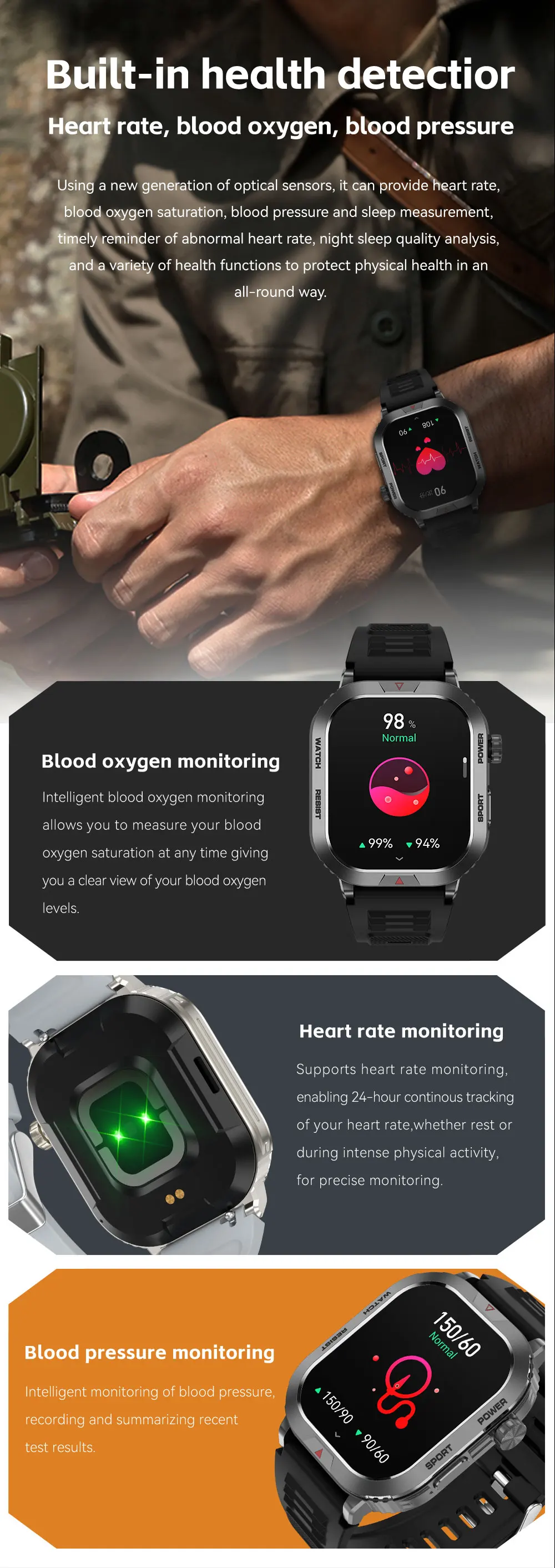 Built in optical heart rate sensor combines intelligent algorithm it pays attention on your heart health all day.
