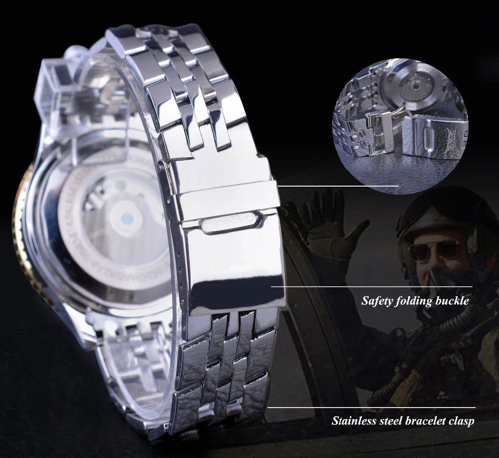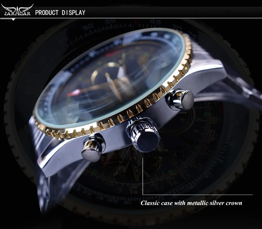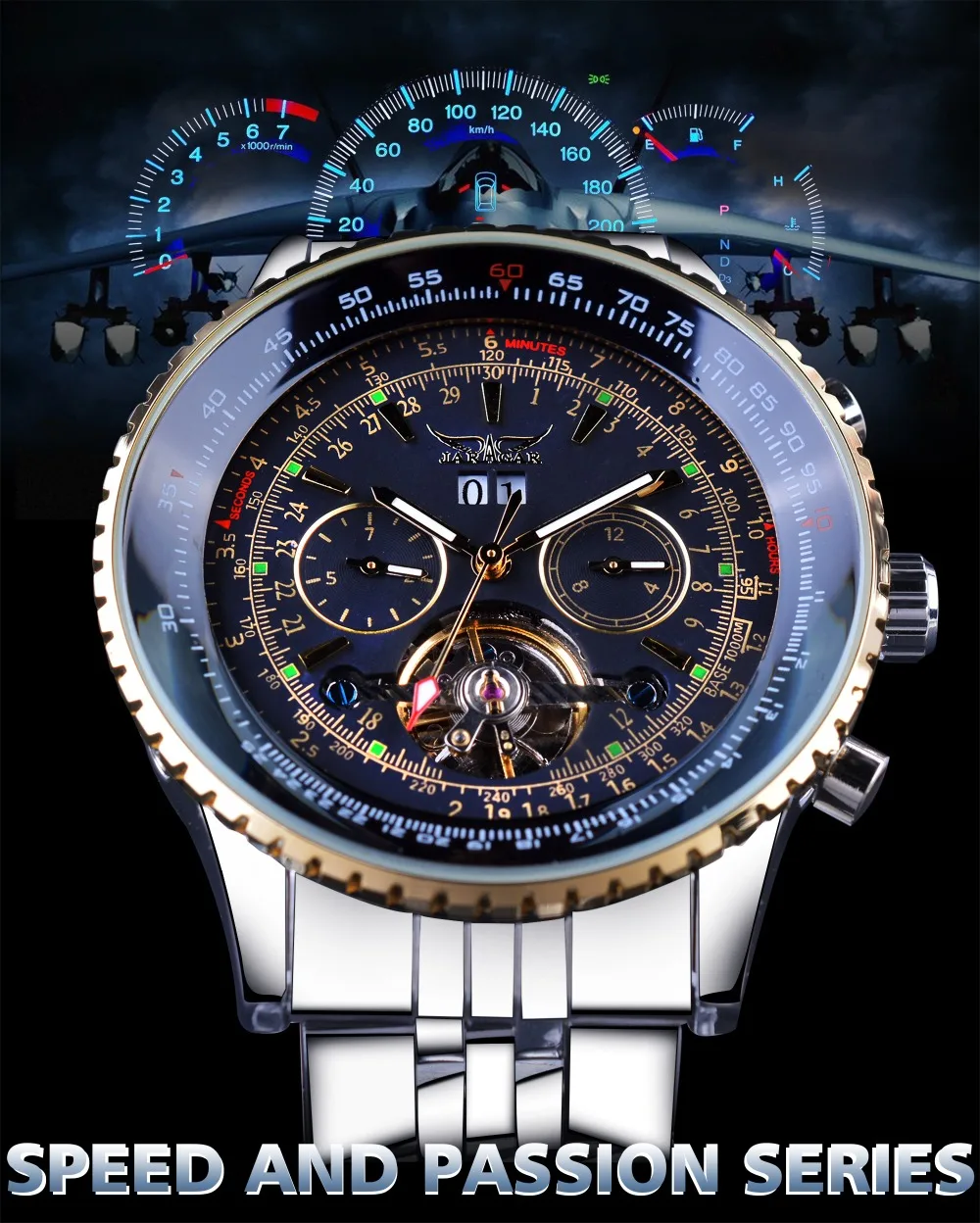 Jaragar 2017 Flying Series Golden Bezel Scale Dial Design Stainless Steel Mens Watch Top Brand Luxury Automatic Mechanical Watch