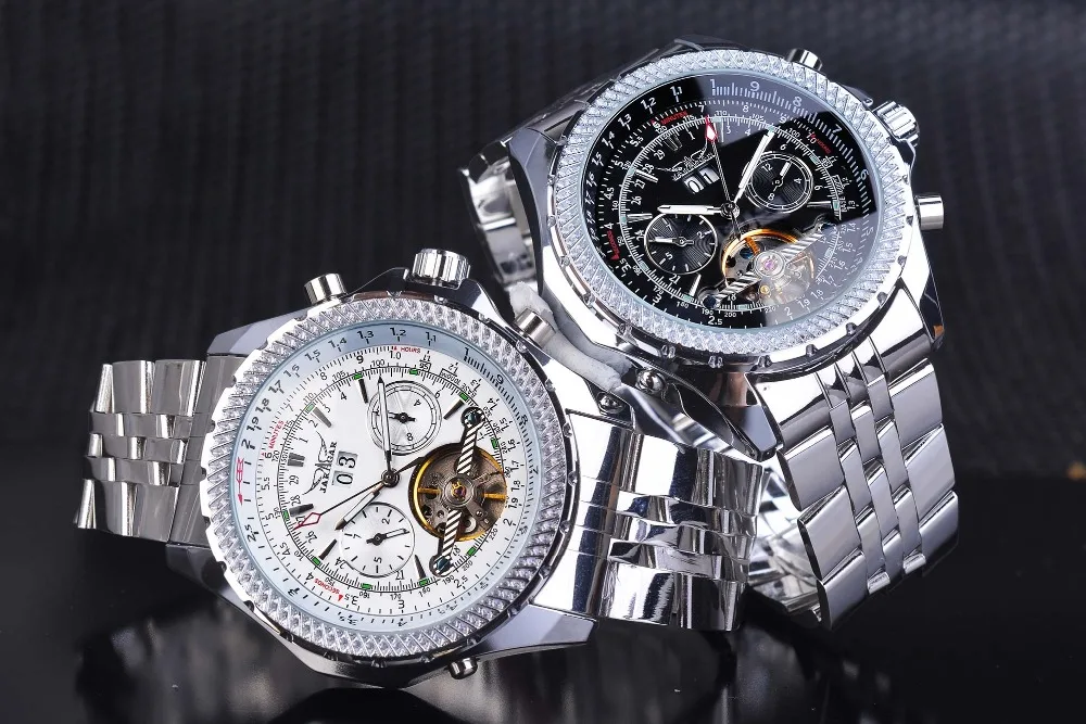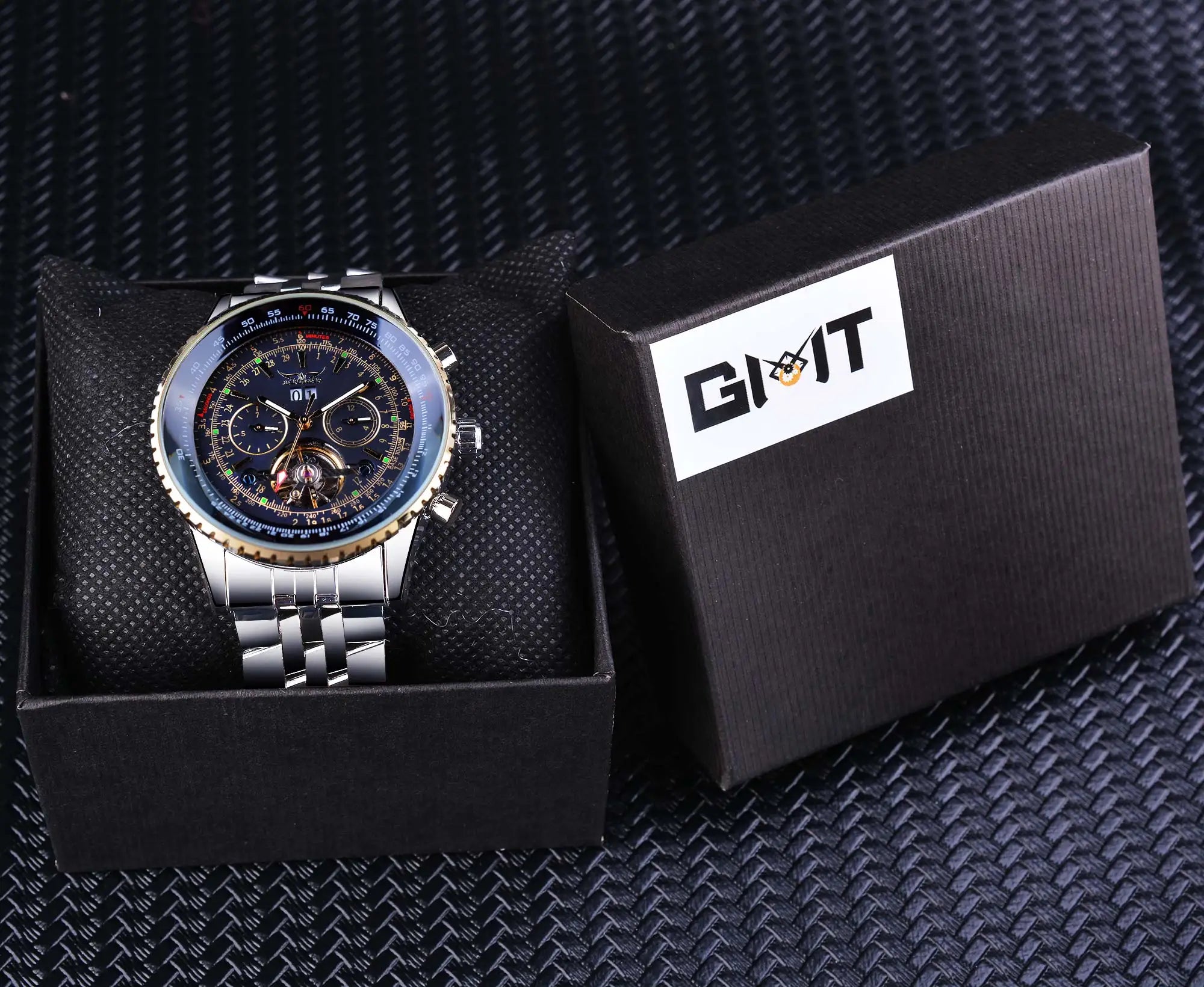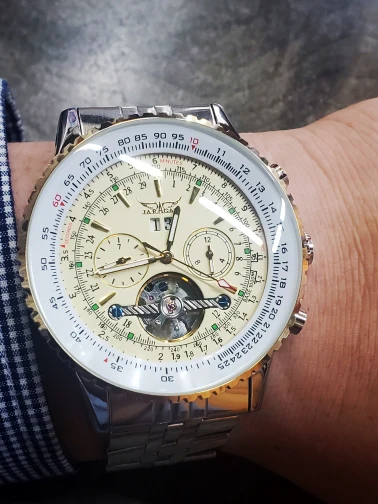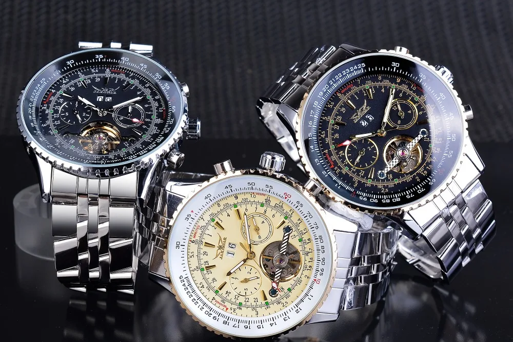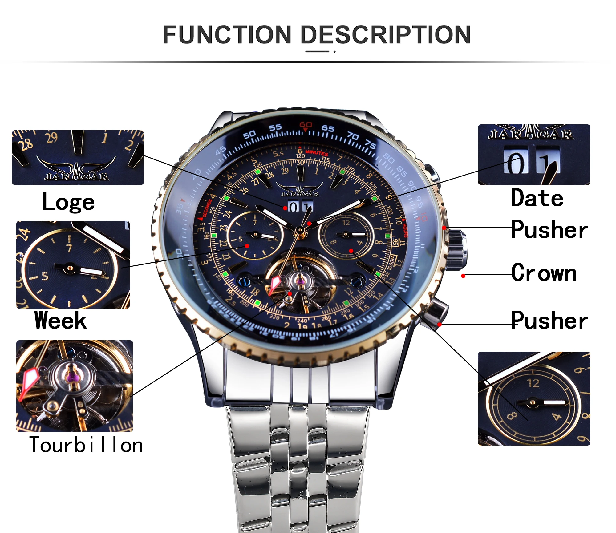 Jaragar 2017 Flying Series Golden Bezel Scale Dial Design Stainless Steel Mens Watch Top Brand Luxury Automatic Mechanical Watch