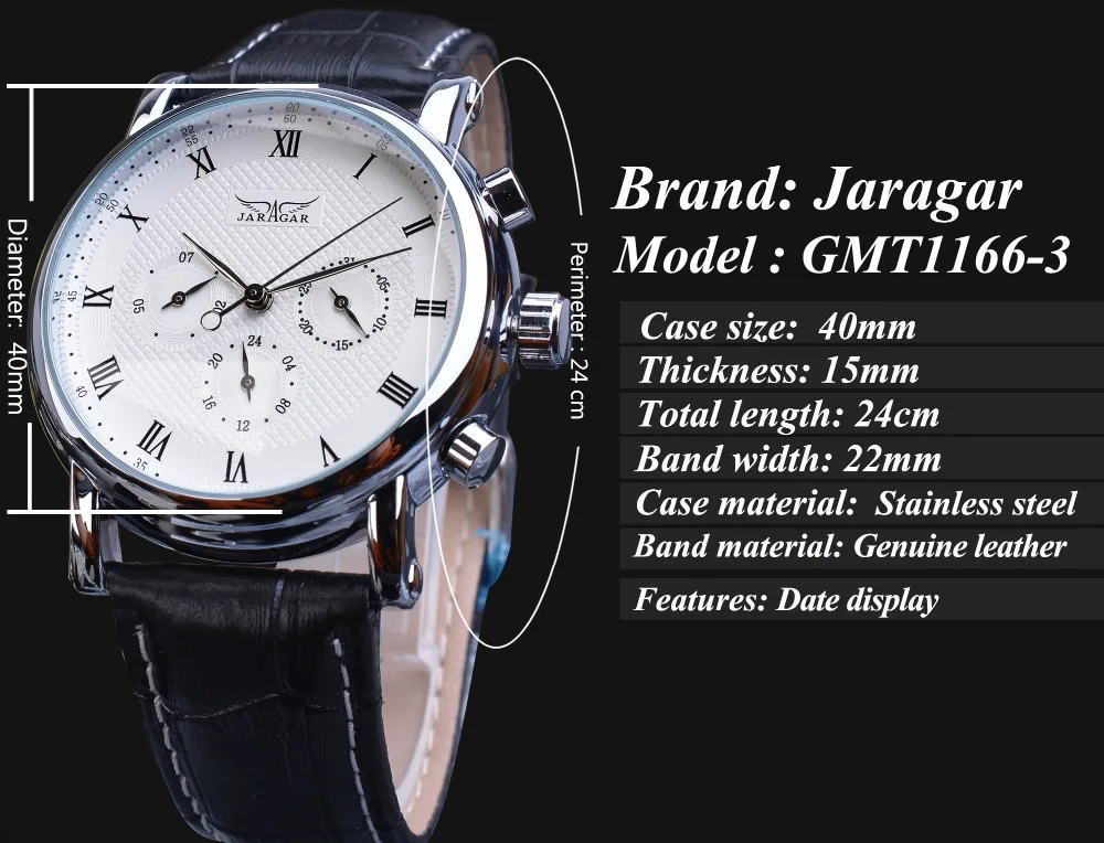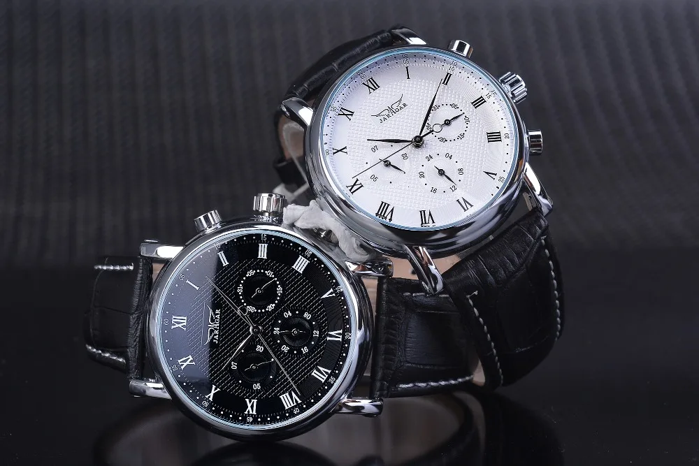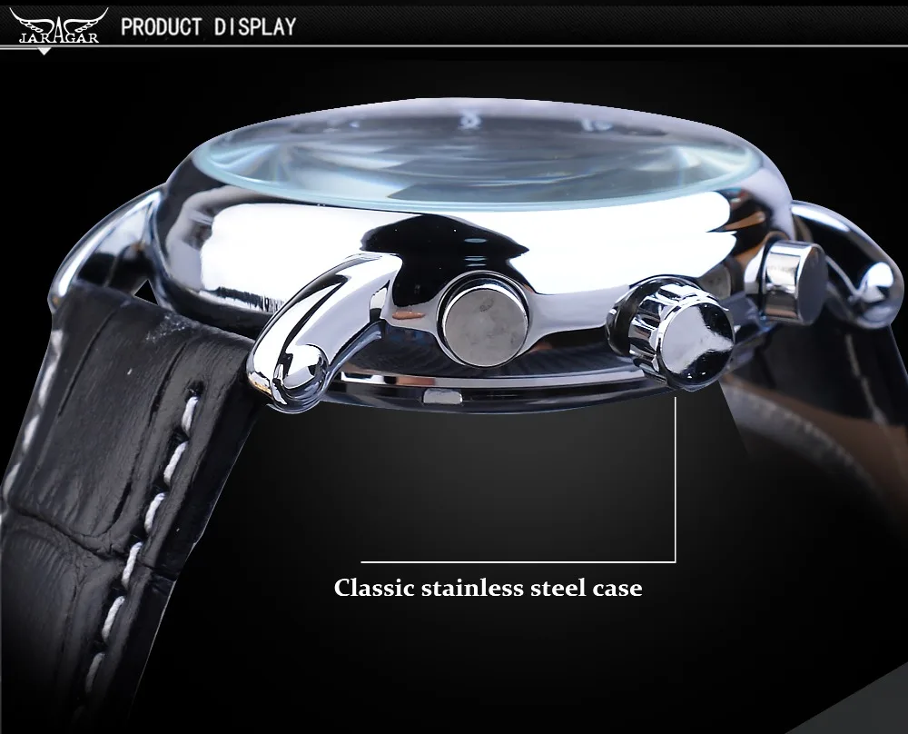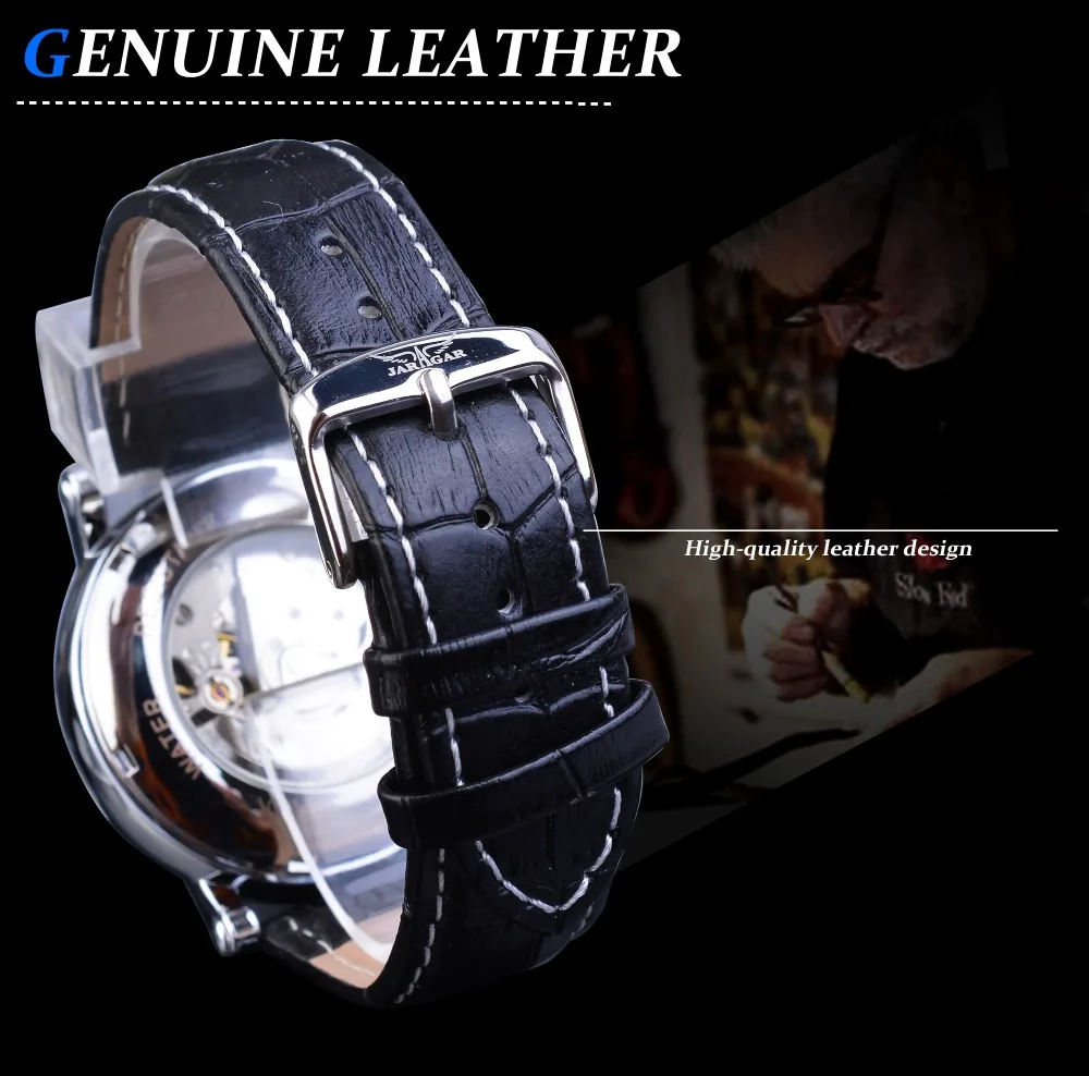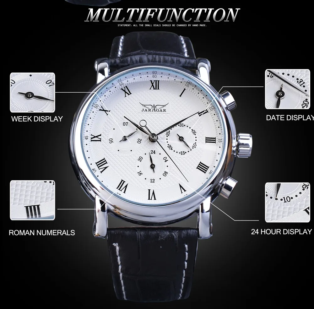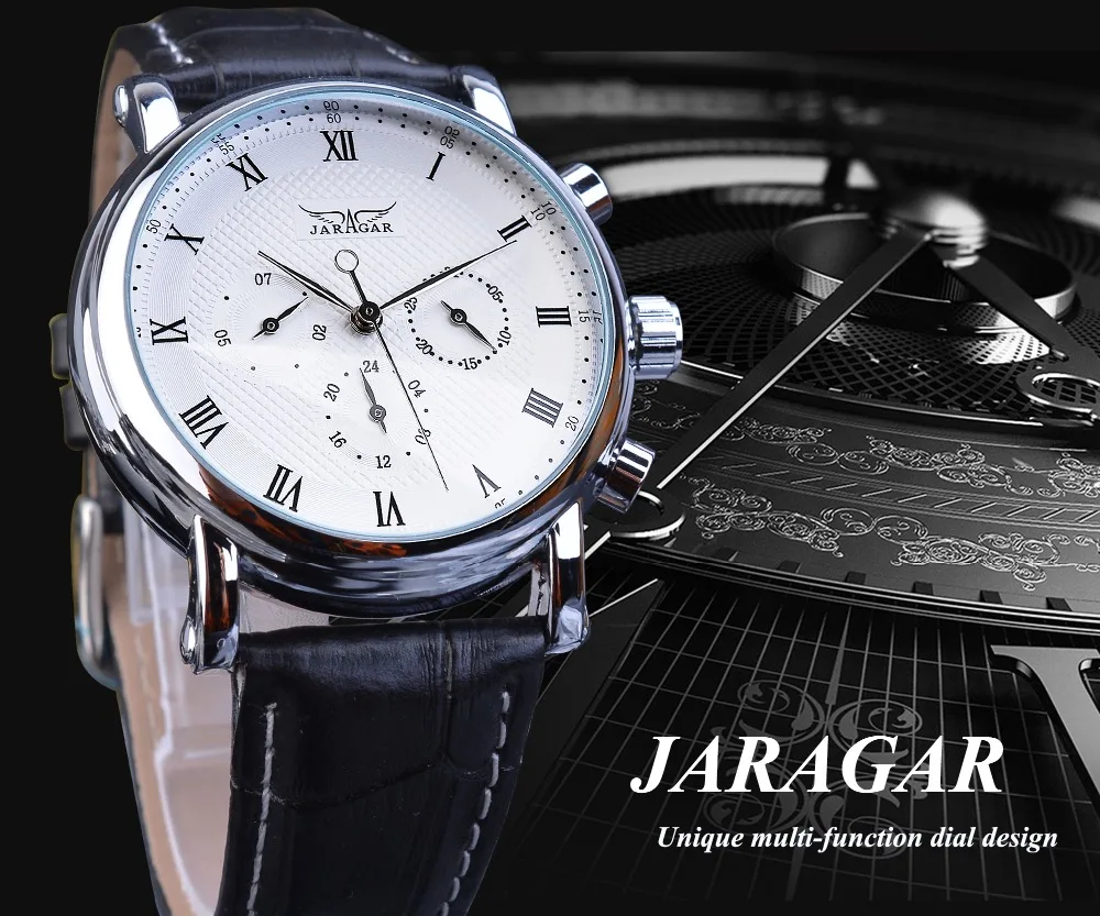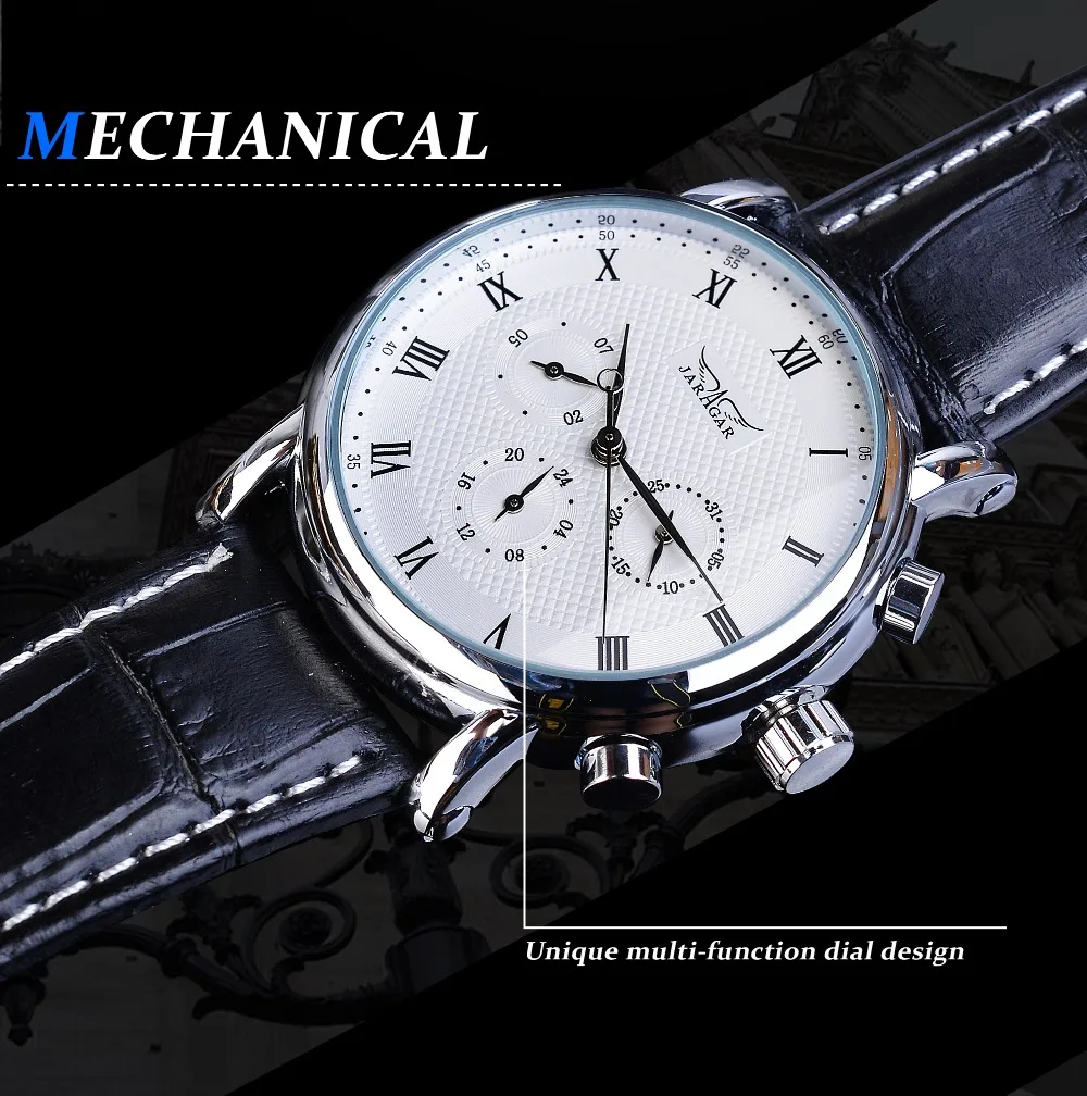 Jaragar Brand White Men Mechanical Watch Minimalism Dial Date Business Sports Male Genuine Leather Wrist Automatic Clock Relogio