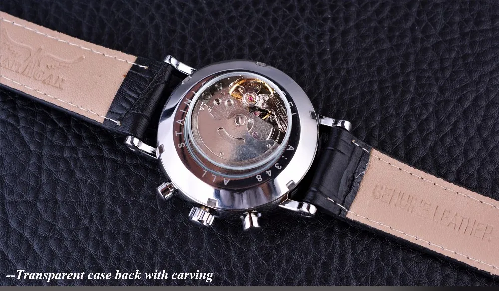 4. Automatic winding mechanical movement with date and day display lets you wear the watch anytime.