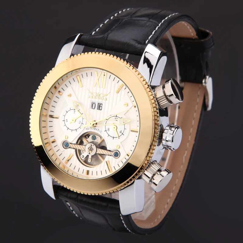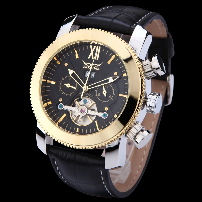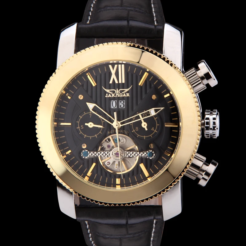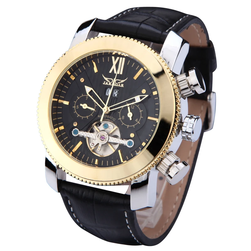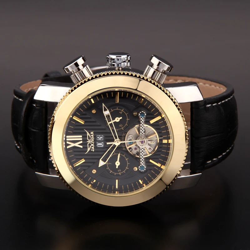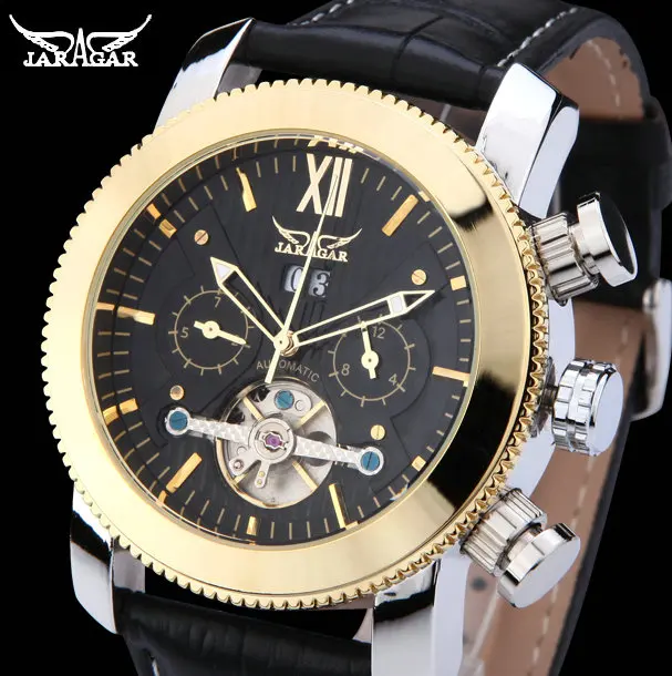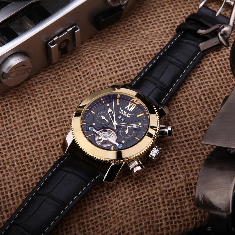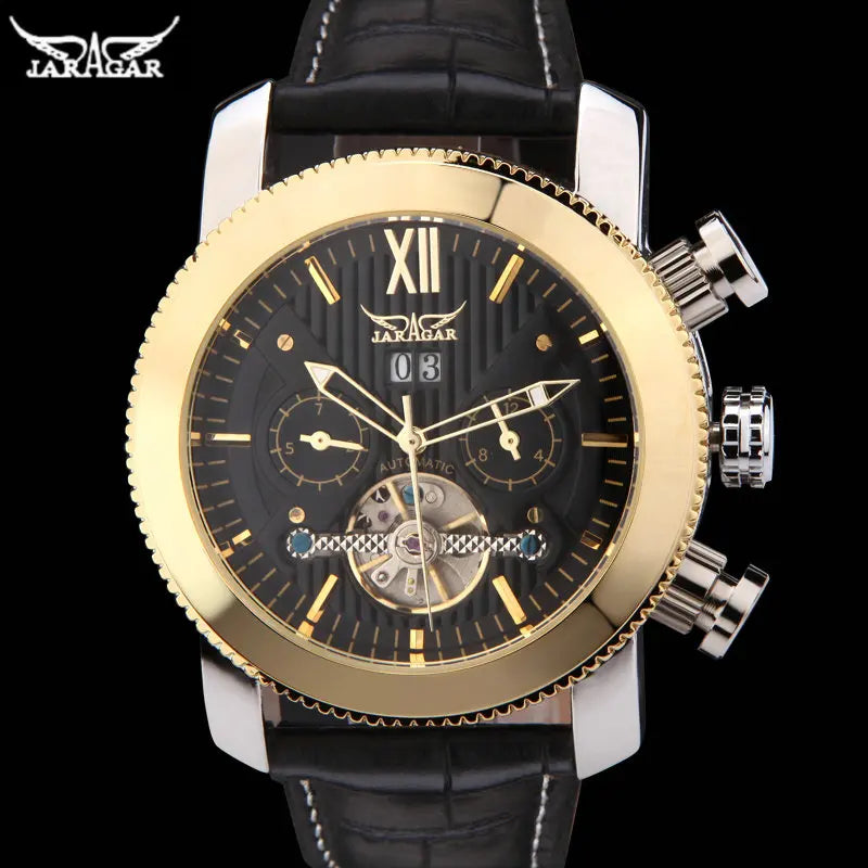 JARAGAR2023 Men's Watch Luxury Brand Fashion Glass Mechanical Skeleton Watches Leather Band Military Army WatchRelogio Masculino