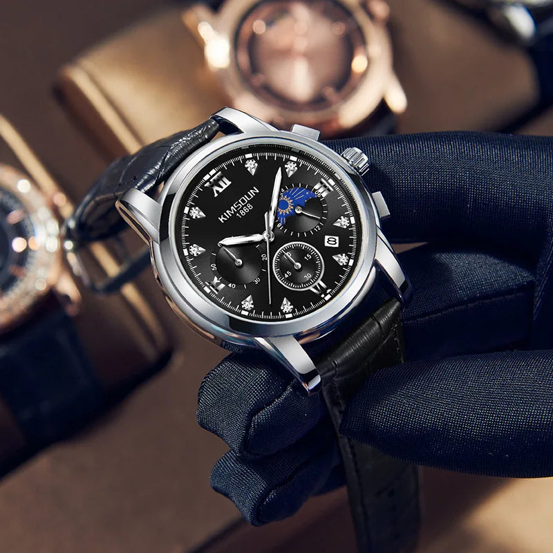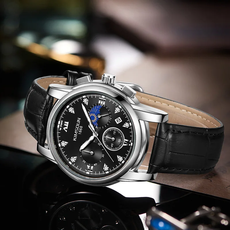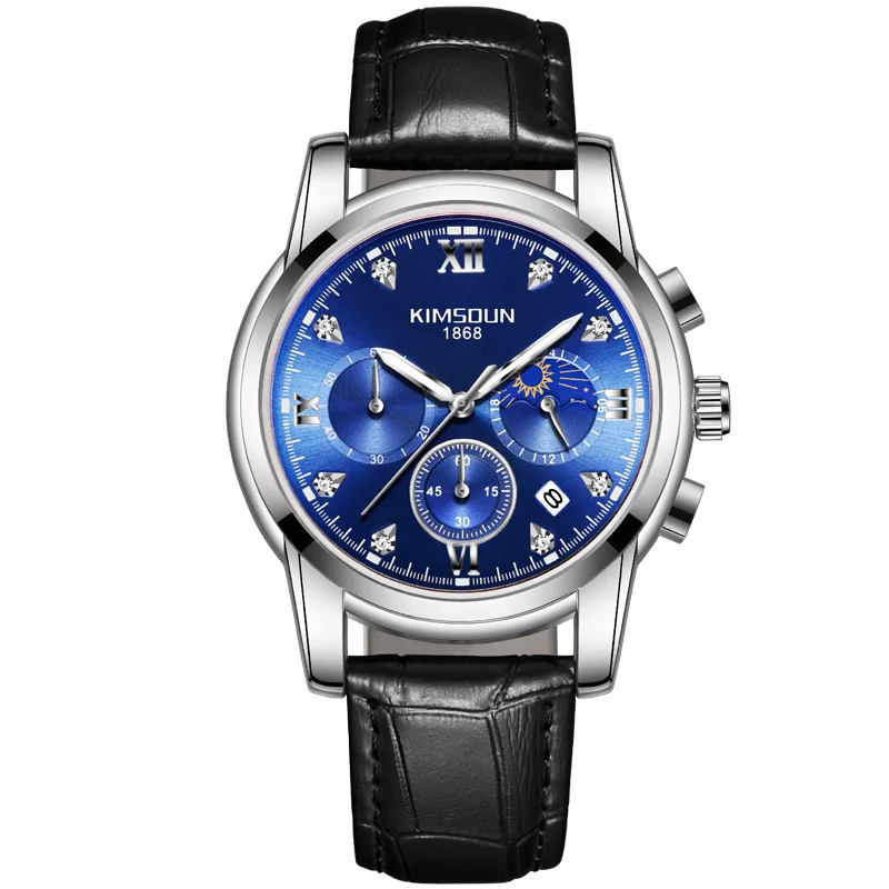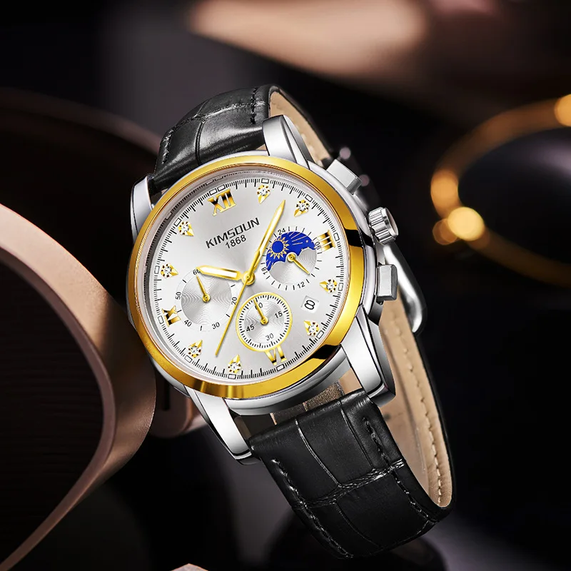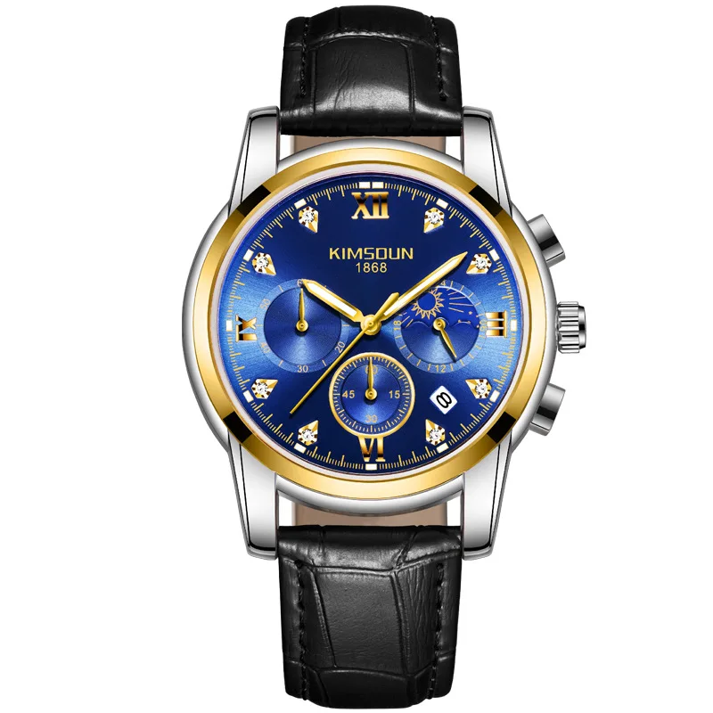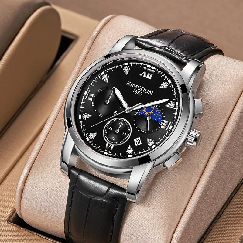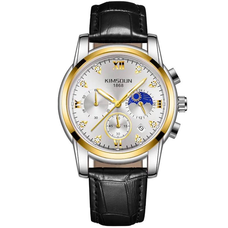 KIMSDUN brand moon phase Mens watches fashion Quartz watch multifunctional clock luminous calendar display classic Man Watch
