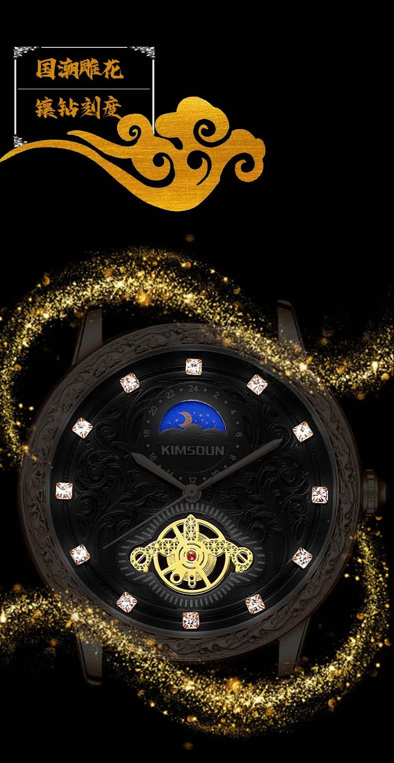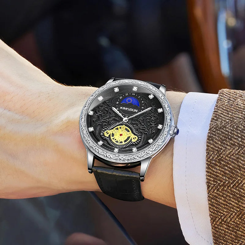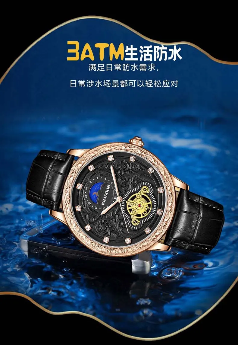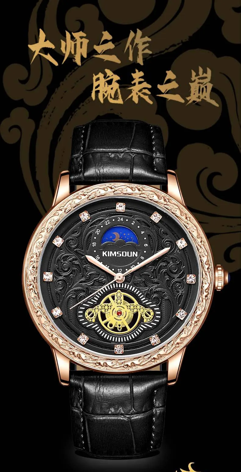 KIMSDUN brand new MEN watches carved lunar phase high-grade men's quartz watch Large Dial Leather Strap fashion man Wristwatch
