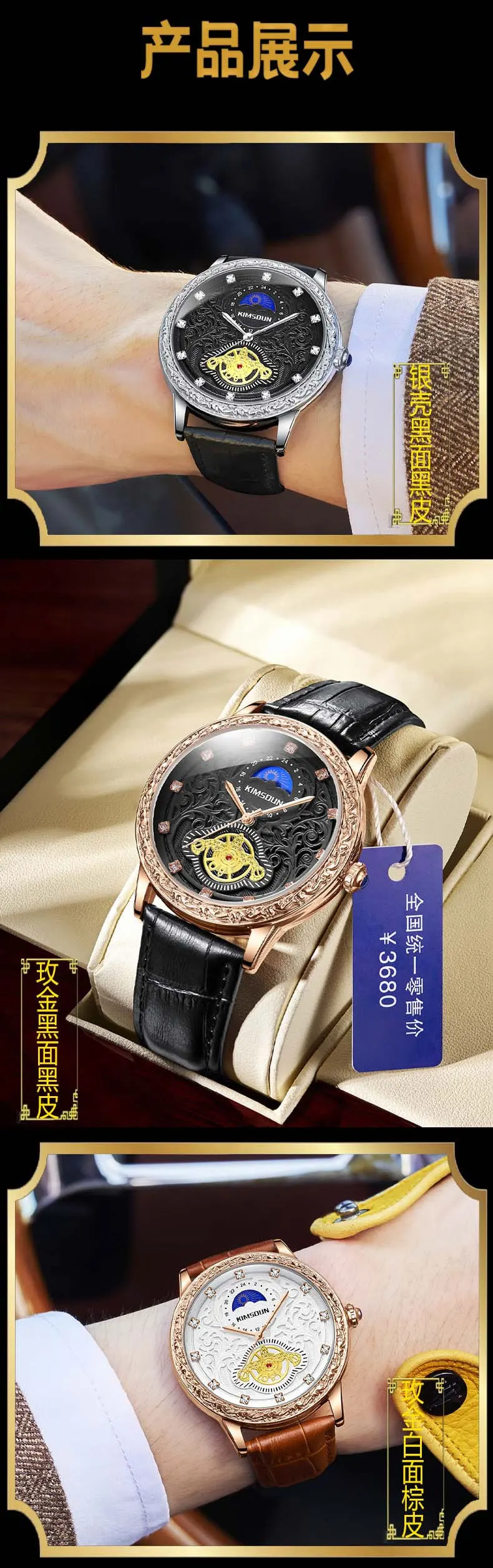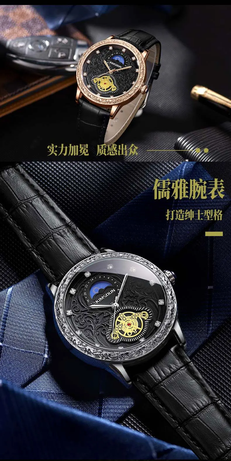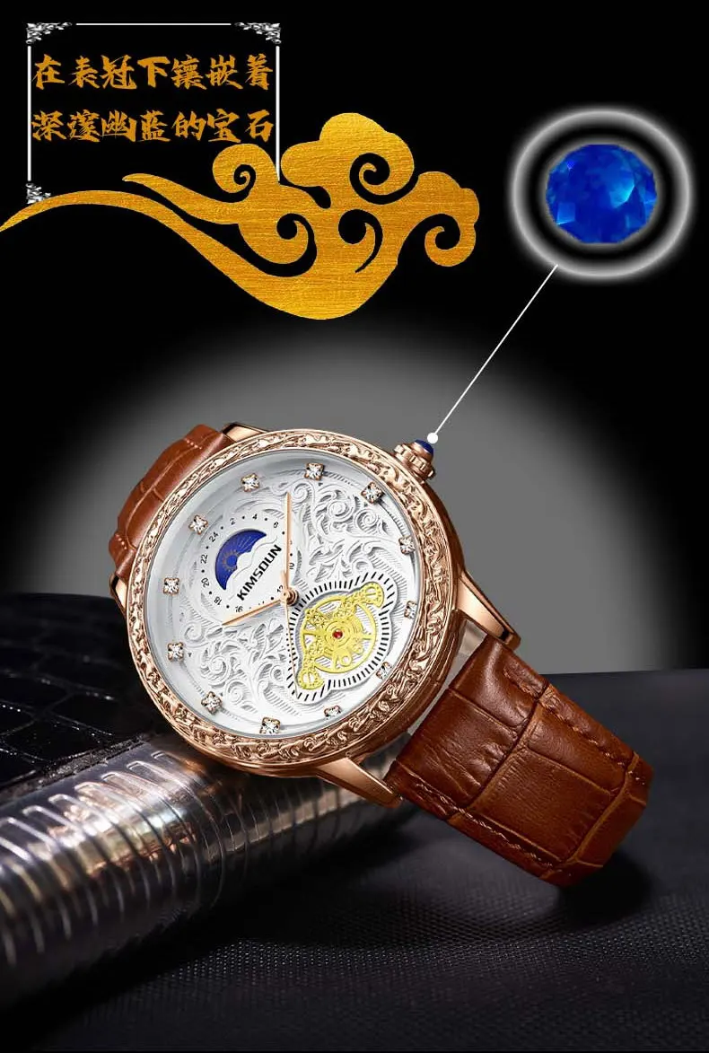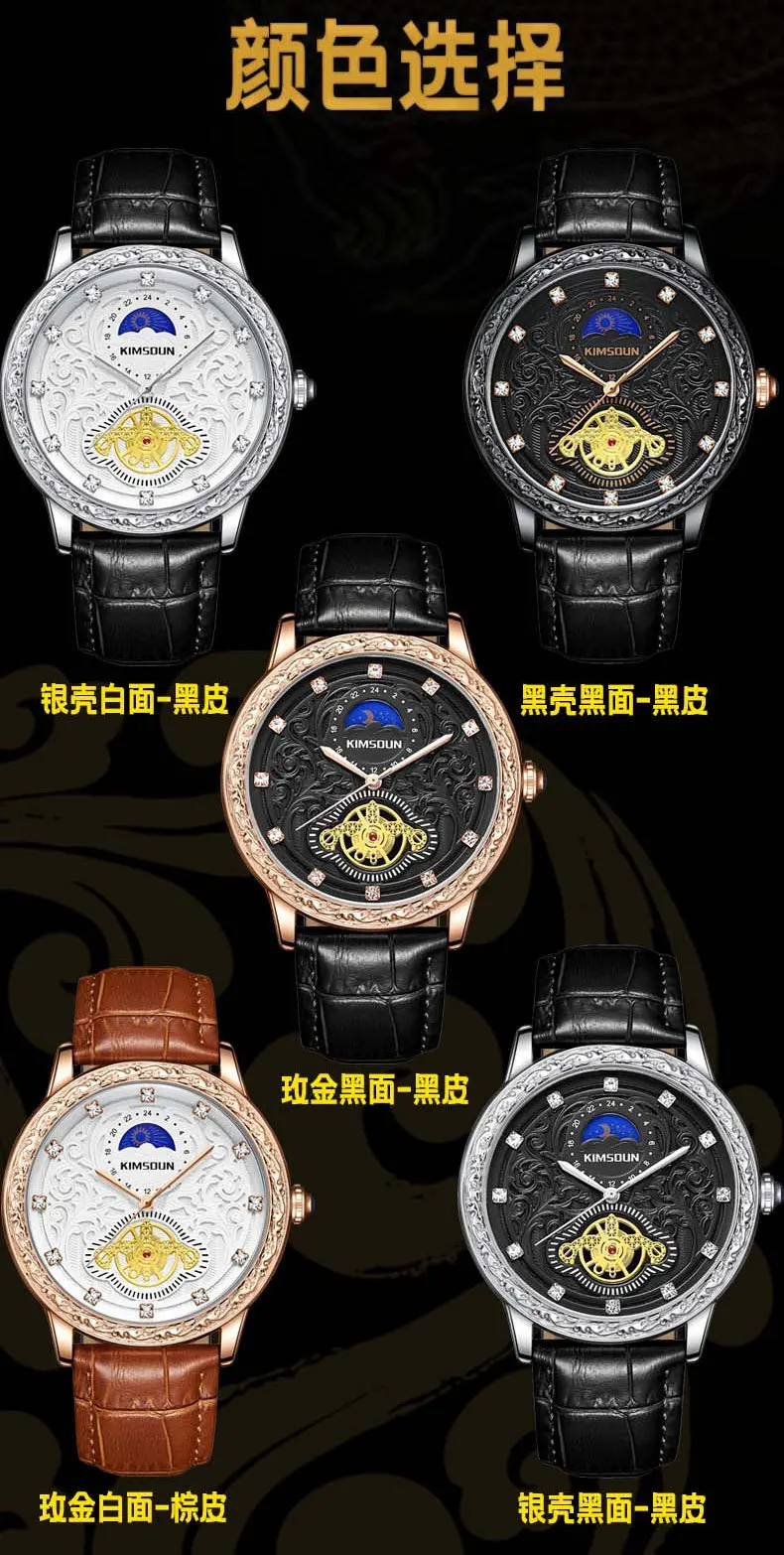 KIMSDUN brand new MEN watches carved lunar phase high-grade men's quartz watch Large Dial Leather Strap fashion man Wristwatch