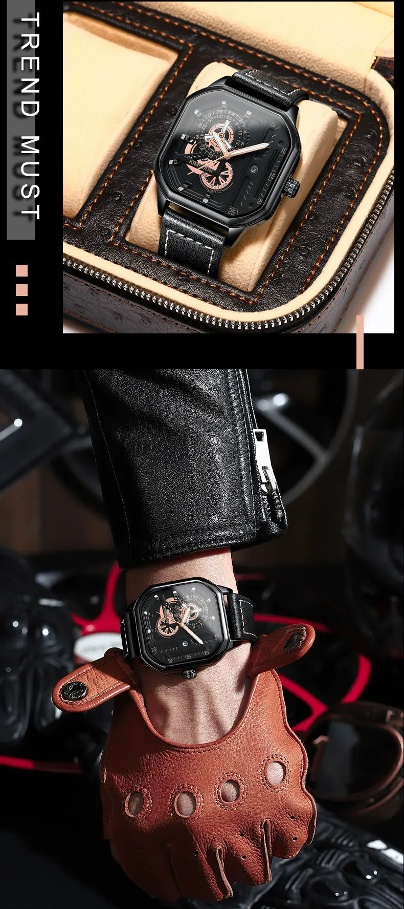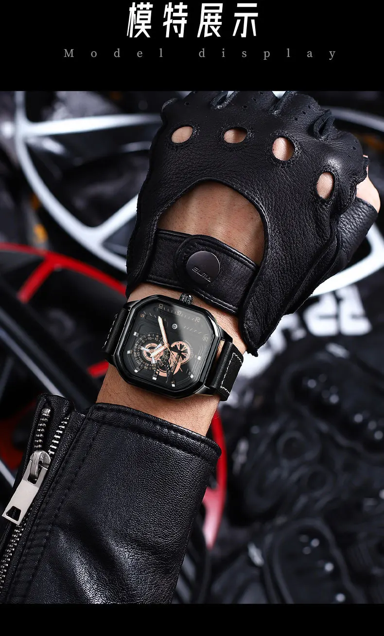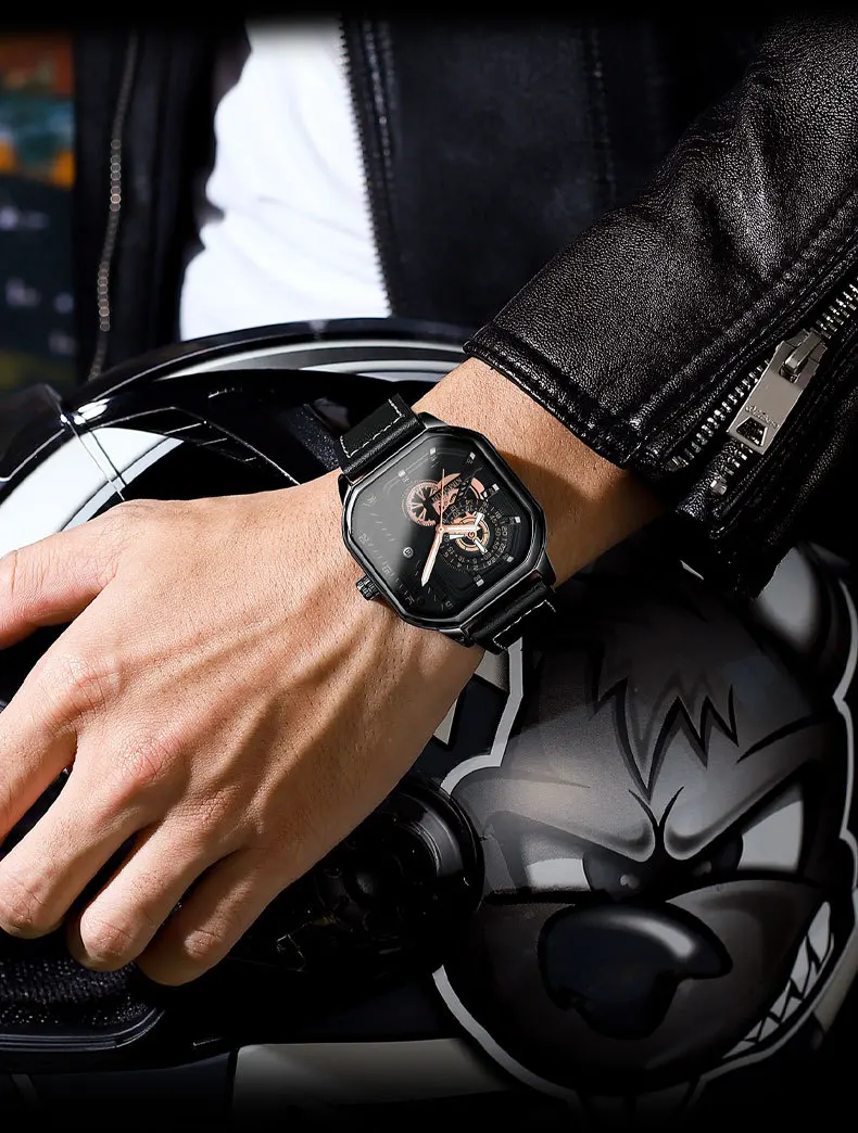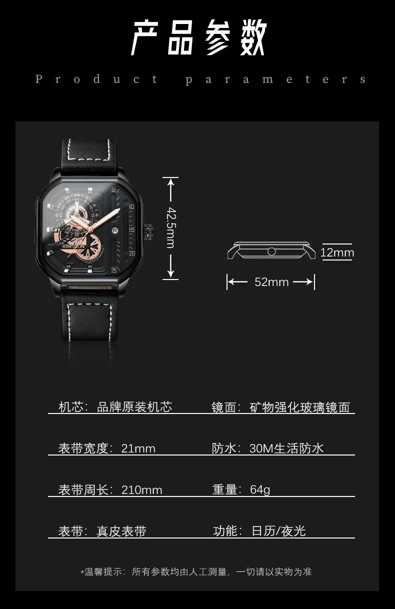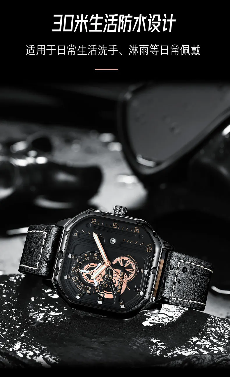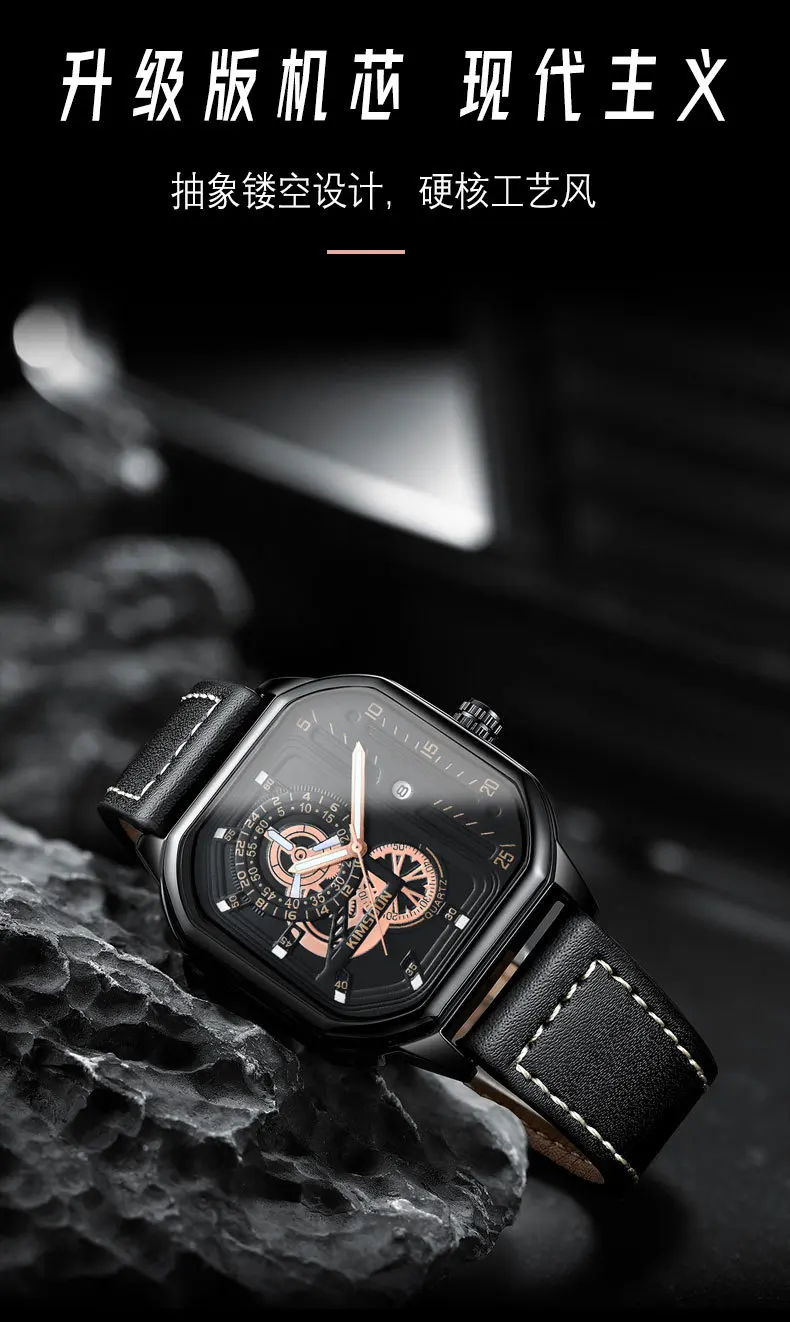 KIMSDUN new square watches luminous waterproof fashion Wristwatch leisure business men's Quartz Watch Leather Strap man Watch