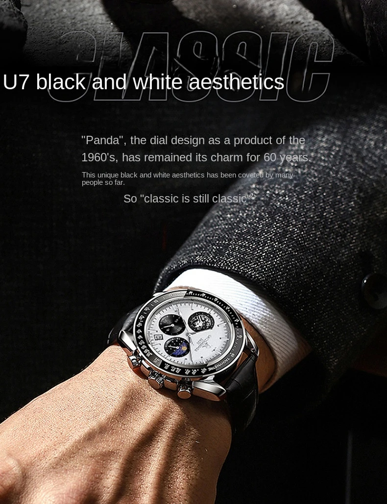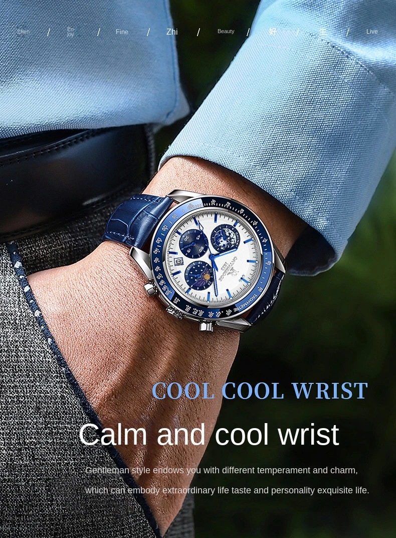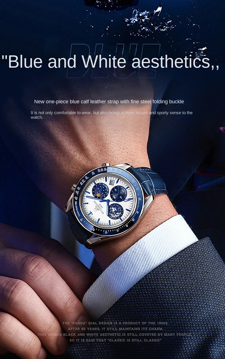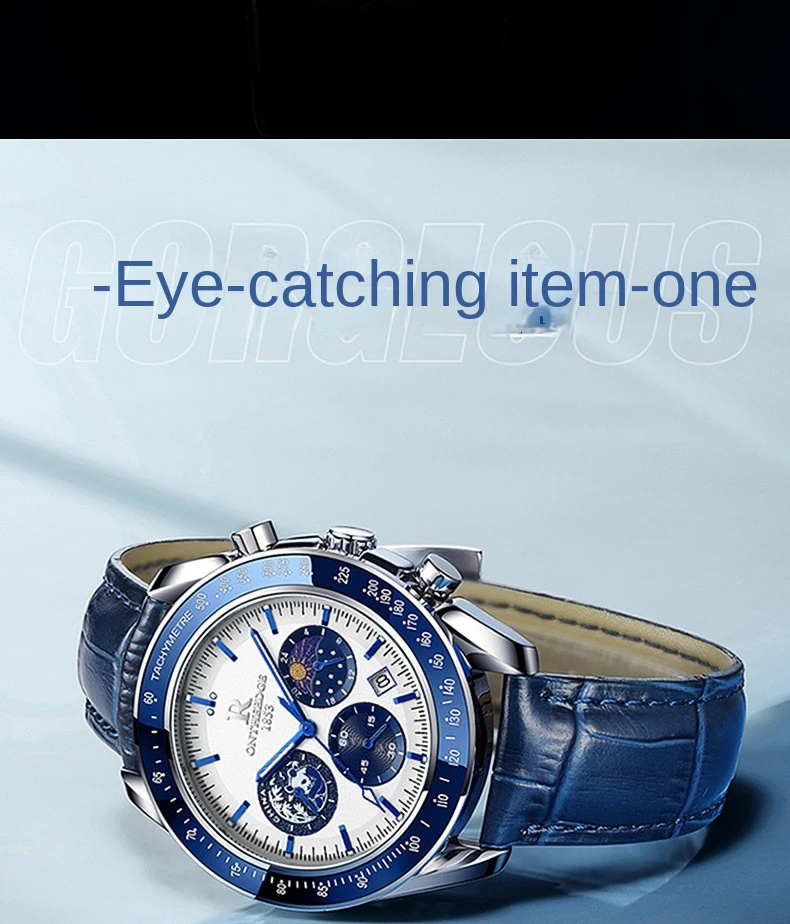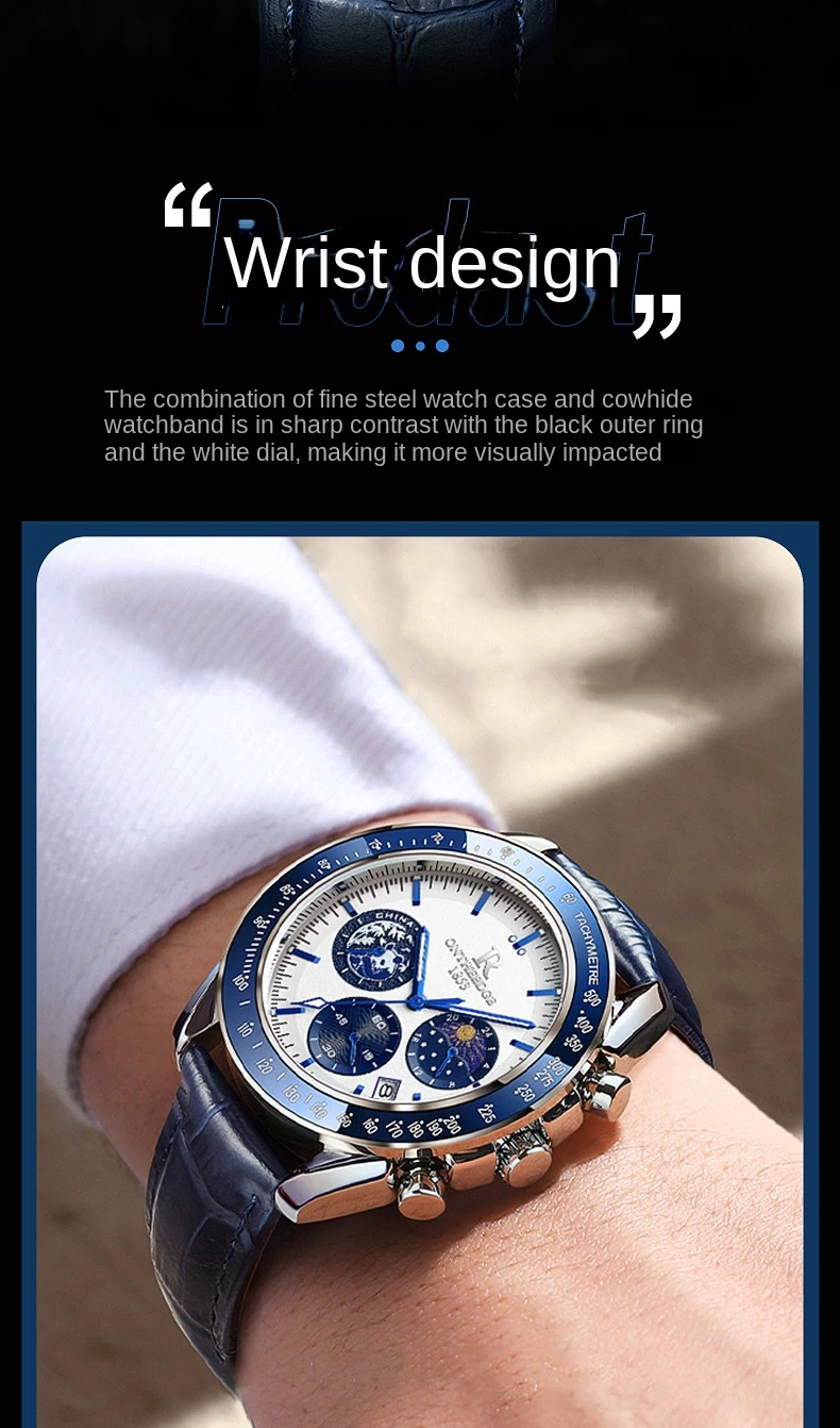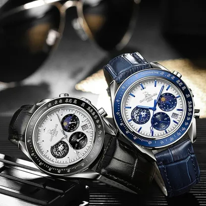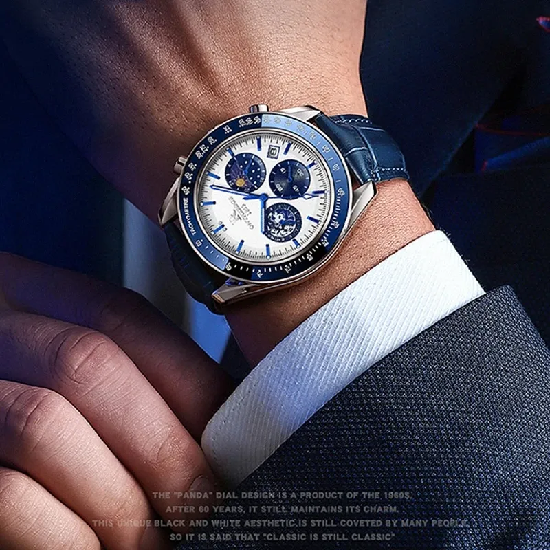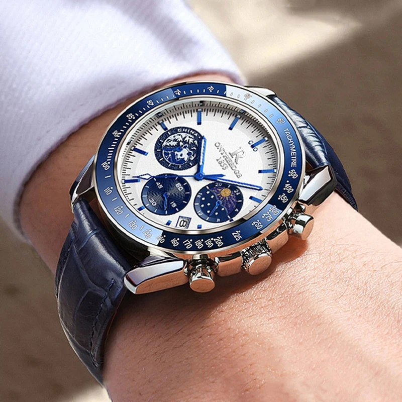 Luxury man watch high quality waterproof chronograph luminous men's wristwatch leather men date quartz watches casual clock