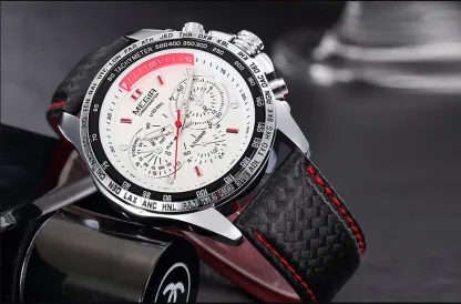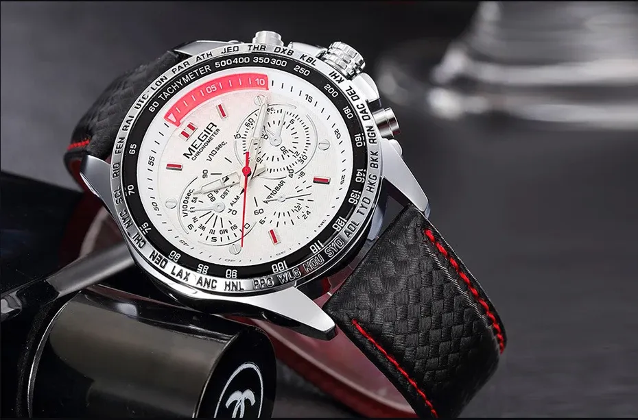 Megir 1010 sport mens watches top brand luxury quartz Pu strap clock men Big Dial male clock