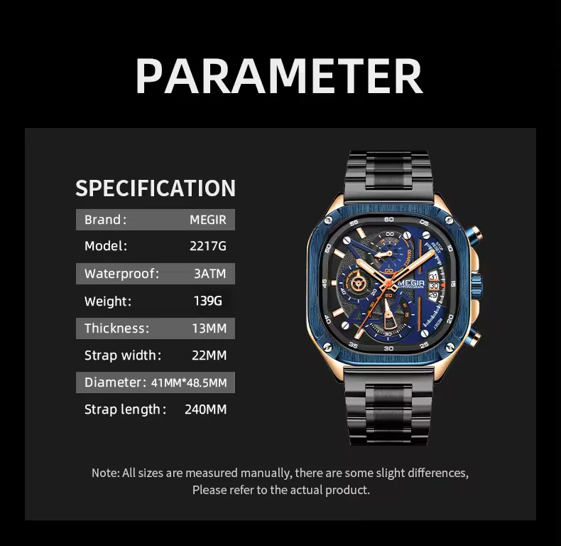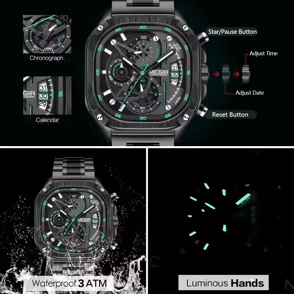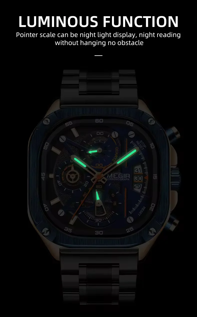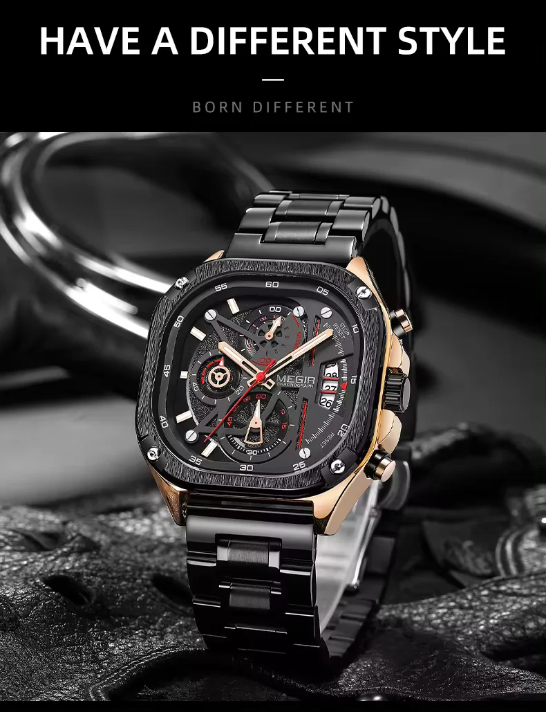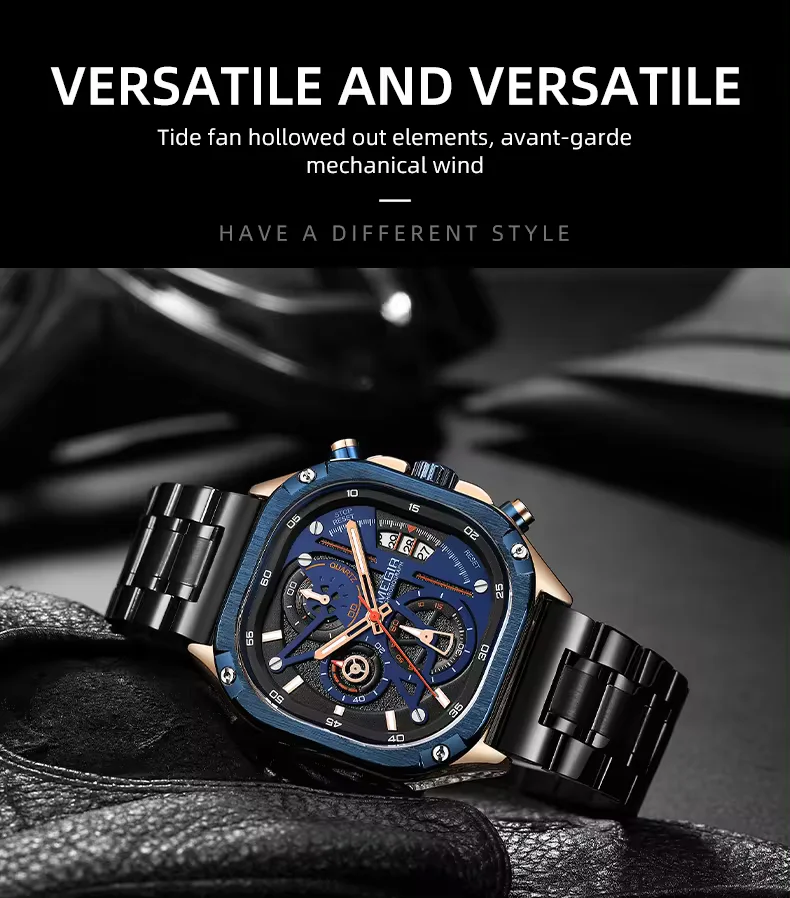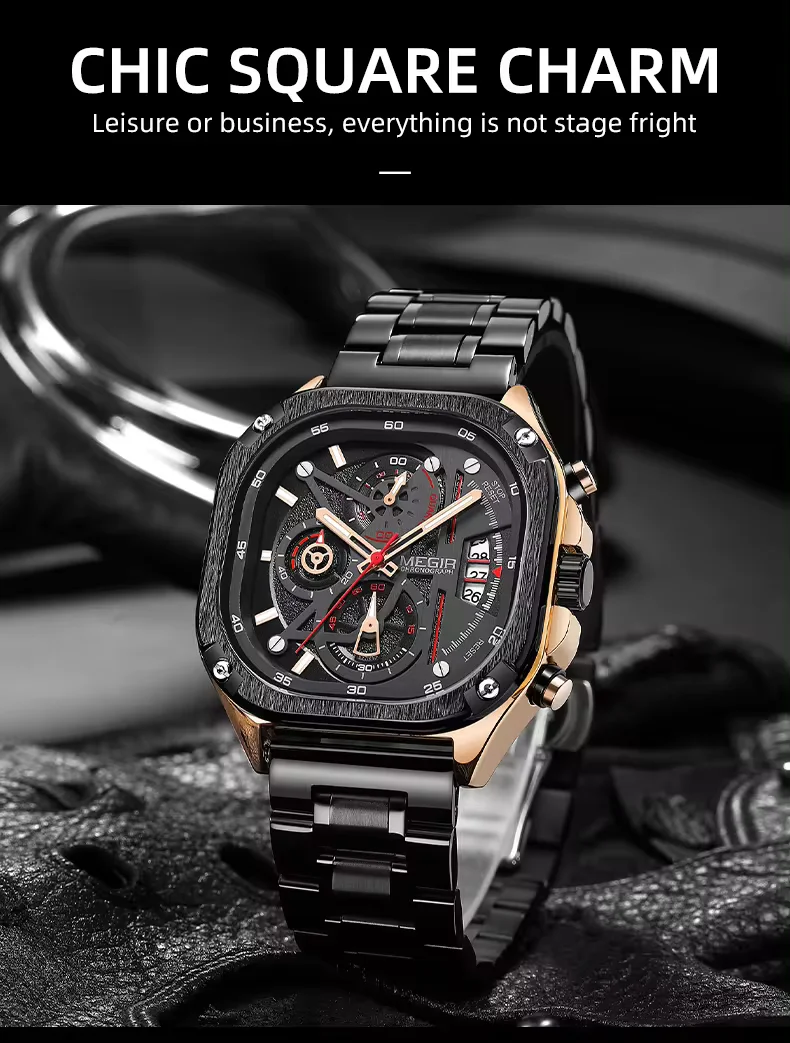 Megir 2217 hot selling men's Brand Watch luxury waterproof square wristwatches