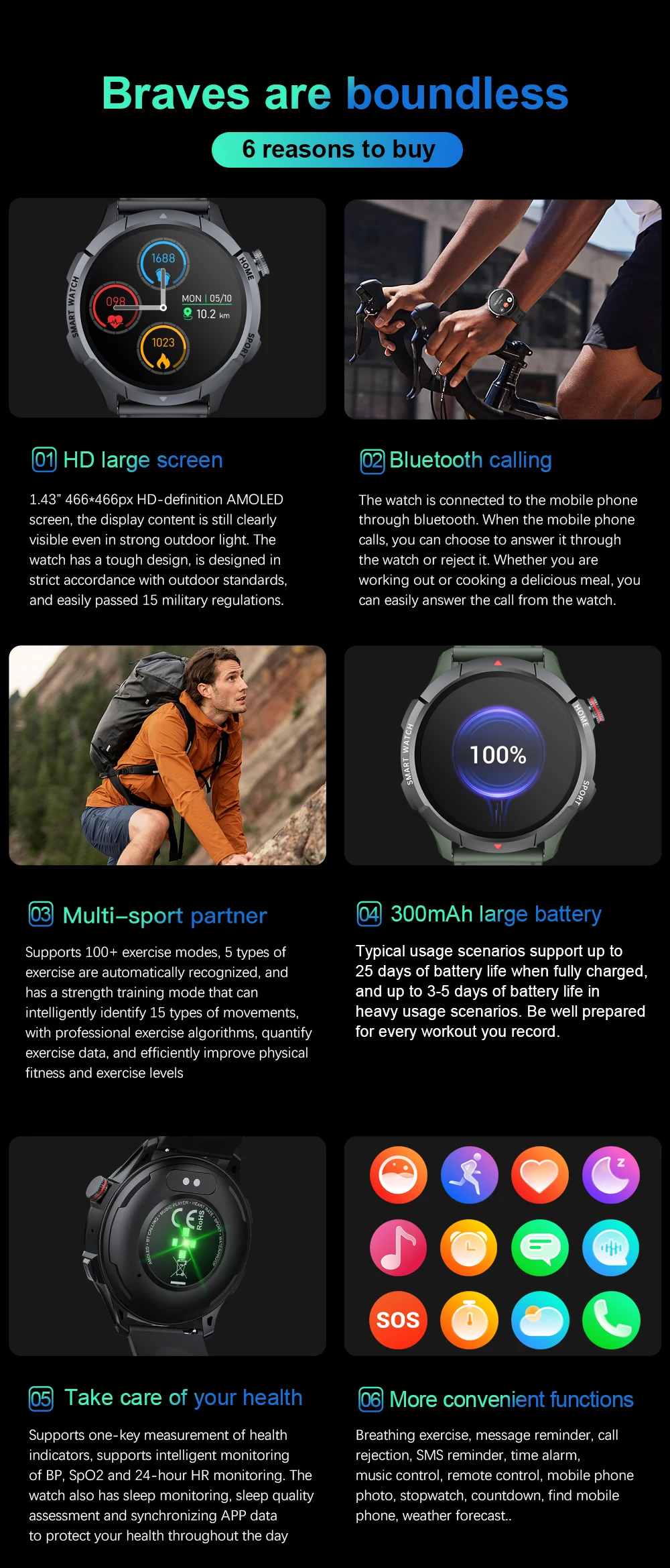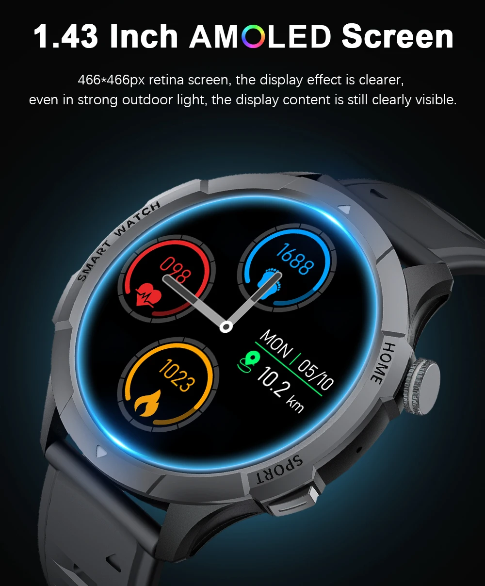 MELANDA 1.43" AMOLED HD Bluetooth Call Smart Watch Sport Fitness Tracker Health Monitor Steel Fashion Smartwatch For Android IOS