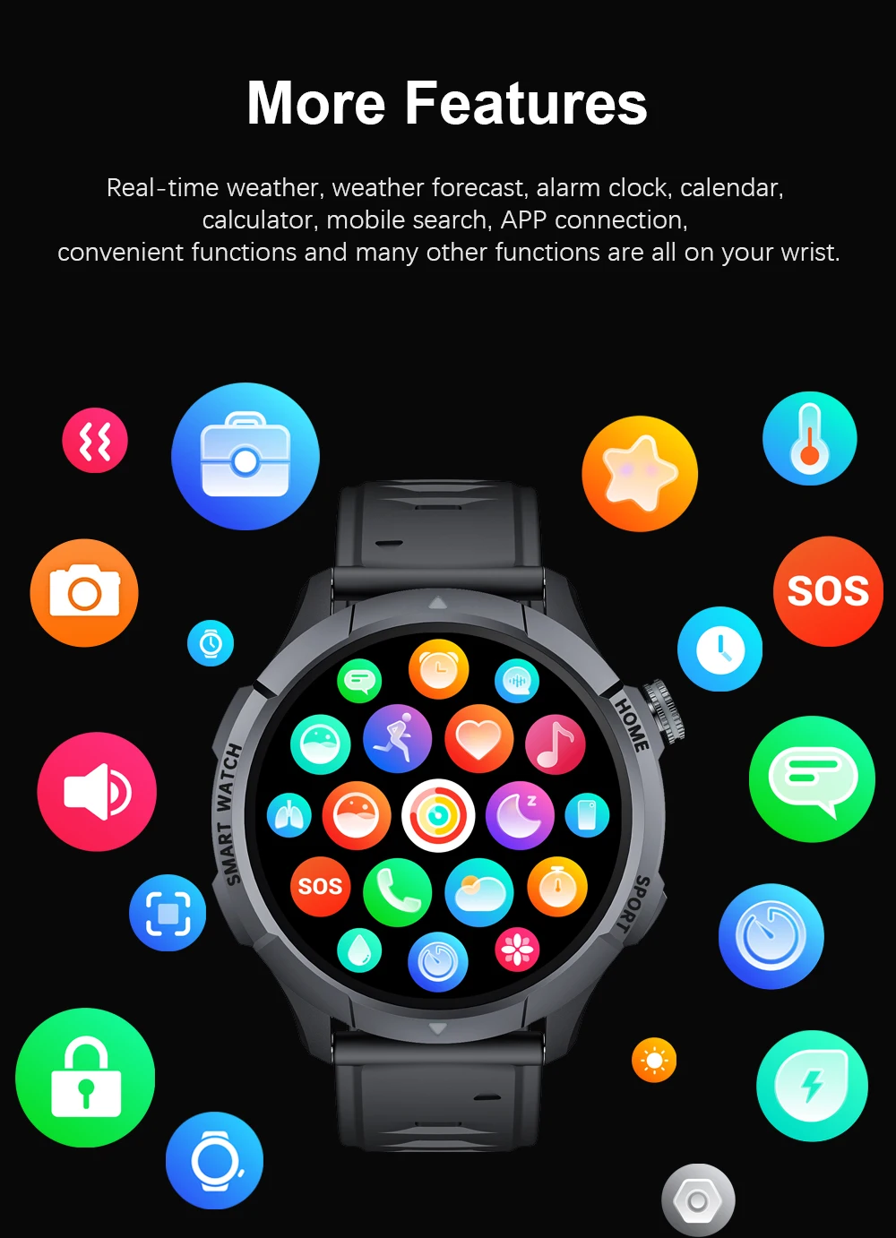 *Bluetooth calls, voice assistant, watch face market (100 watch faces), custom watch faces, heart rate/blood oxygen/blood pressure/sleep monitoring, step counting, calories, distance, sedentary/alarm clock/message reminder, weather, photo control, music Control, alarm clock, stopwatch, timer, find mobile phone/device, raise your wrist to turn on the screen, brightness adjustment, screen always on, fun games