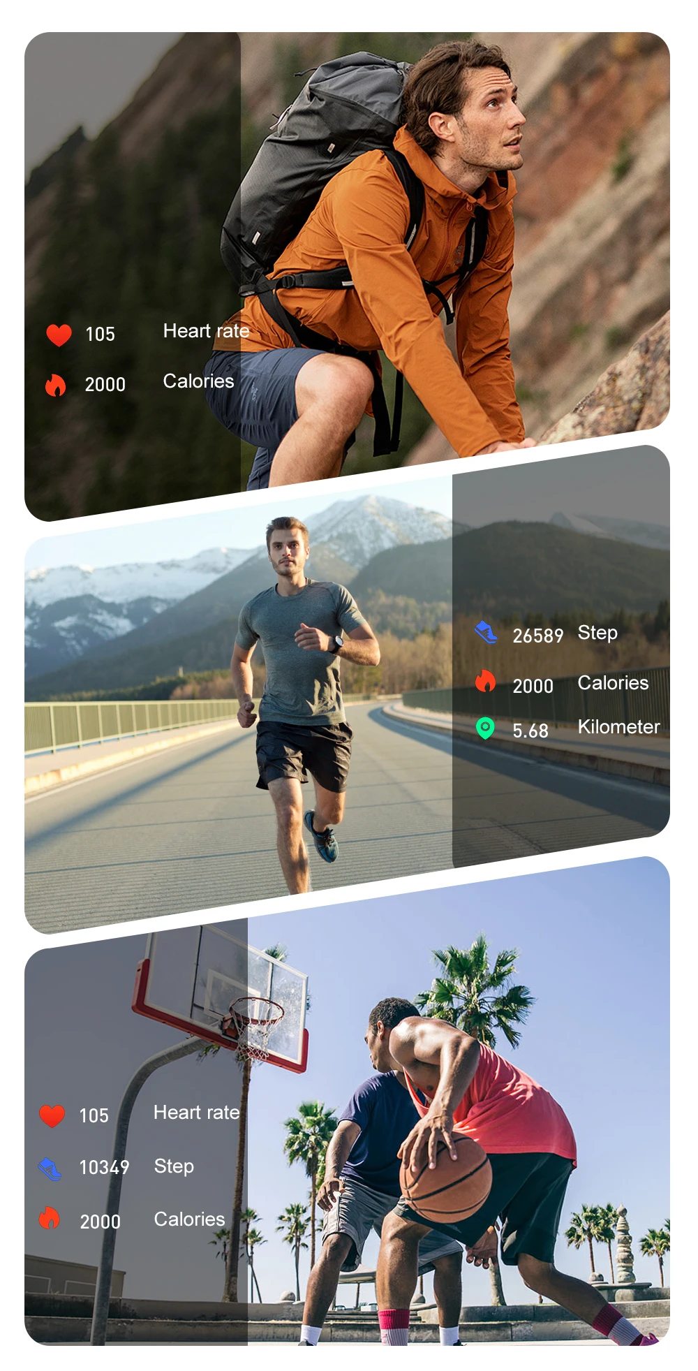 * Multiple exercise modes: walking, walking, cycling, running, elliptical machine, rowing machine, etc. (100 exercise modes)