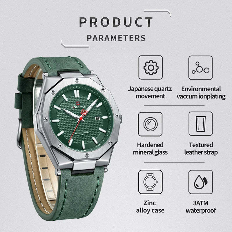 Men Watch NAVIFORCE Quartz Sport Male Wristwatch Casual Waterproof Fashion Leather Band Date Display Man Clock Relogio Masculino