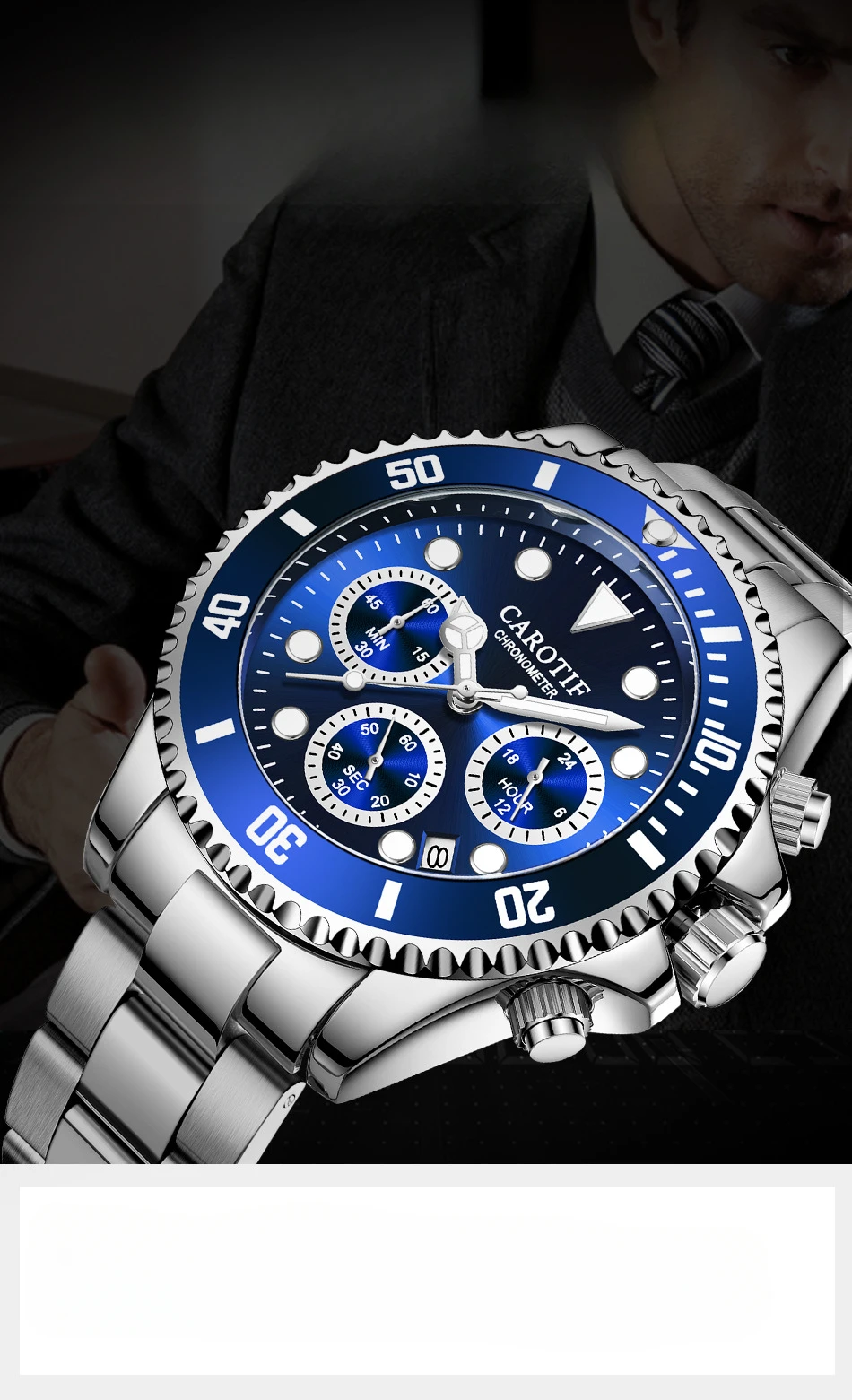 Special features: Luminous, Chronographe, calendar, small three-pin