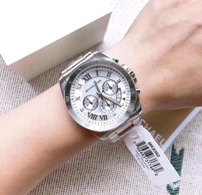 Michael Kors Brecken Chronograph Silver Dial Silver Steel Strap Watch For Women - MK8562