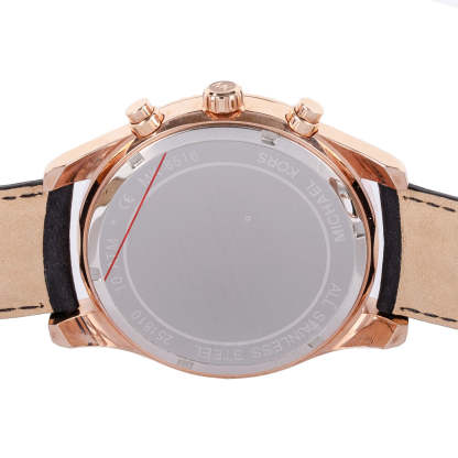 Michael Kors Lexington Chronograph Rose Gold Dial Black Leather Strap Watch For Men - MK8516