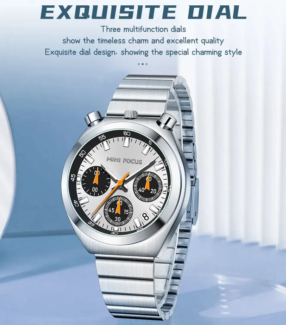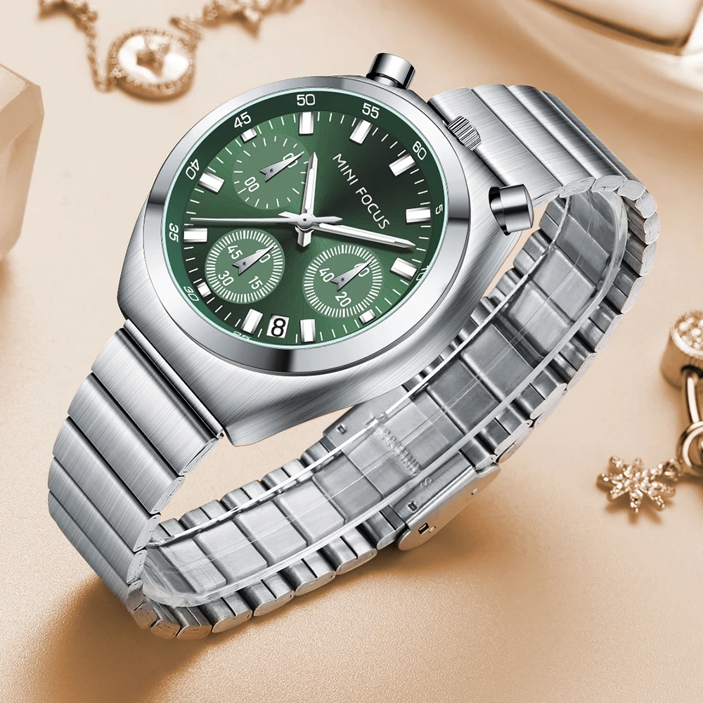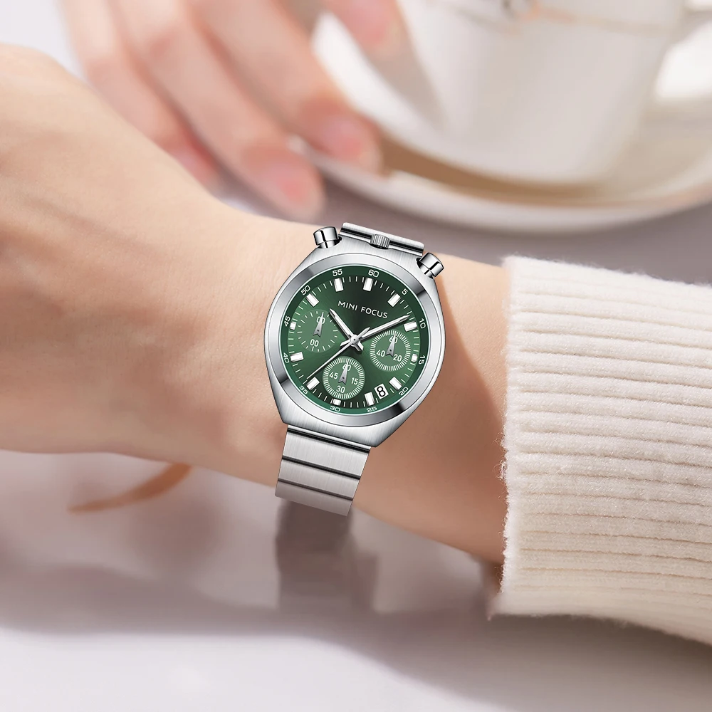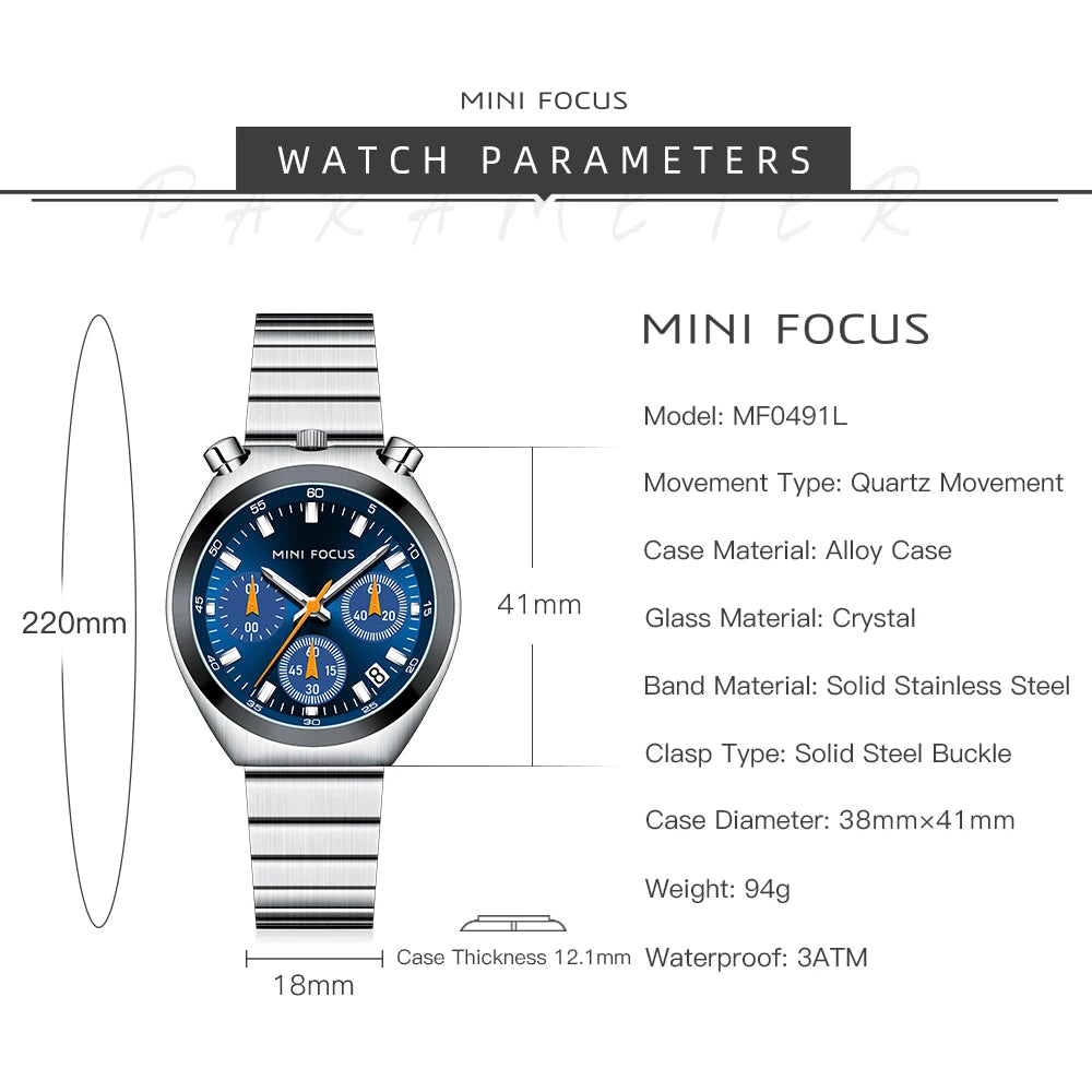 MINI FOCUS Elegant Blue Quartz Ladies Watches Top Brand Luxury Chronograph Waterproof Women Watch Steel Strap Luminous Hand 0491