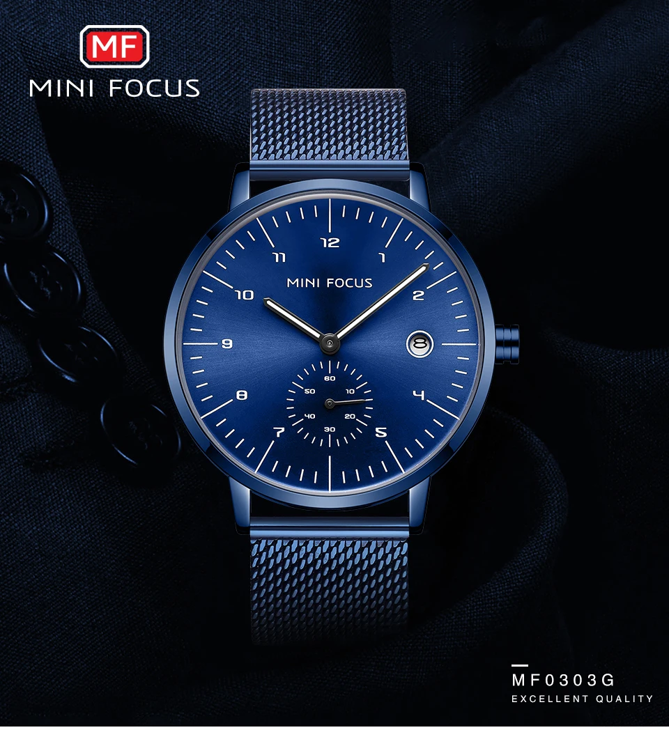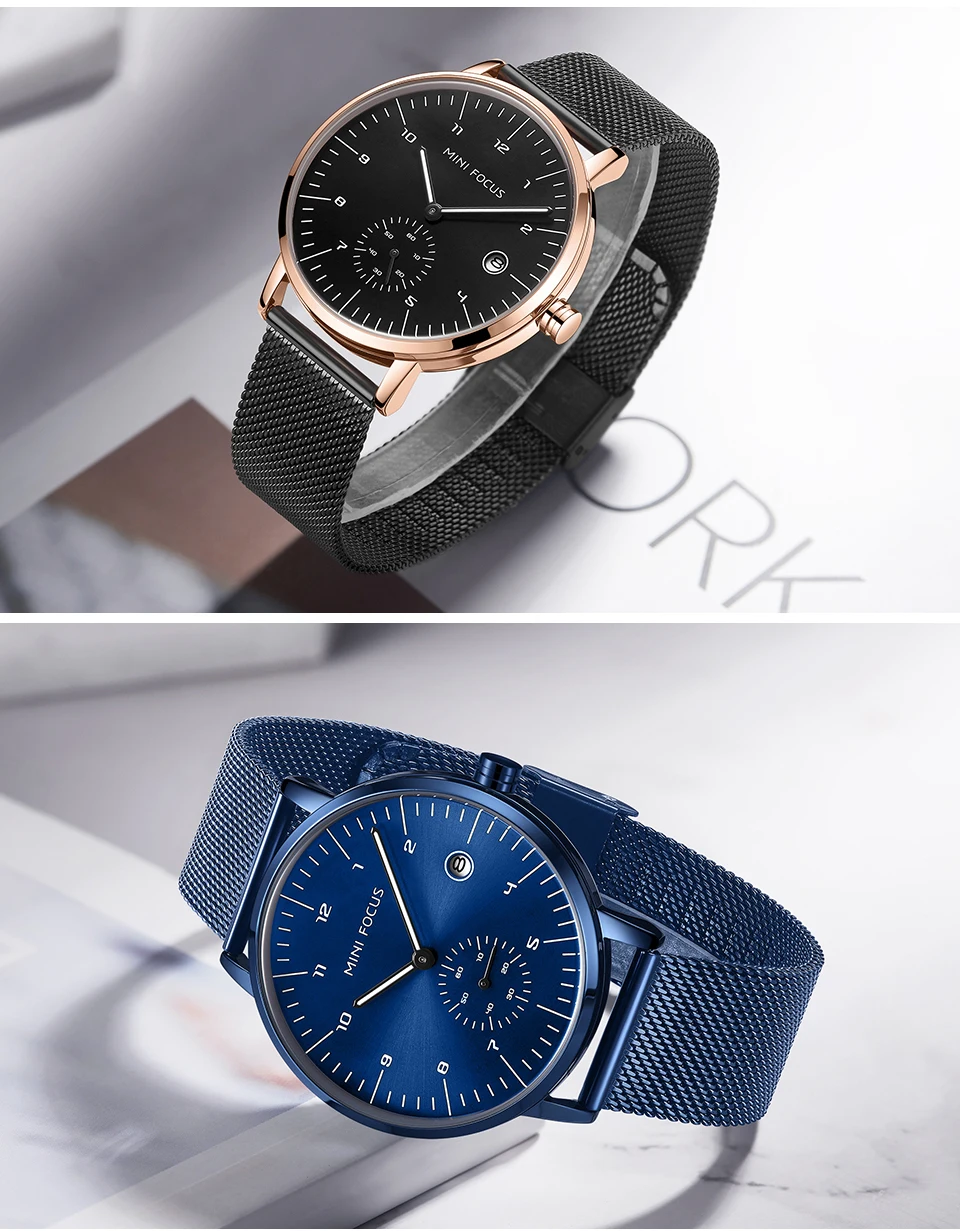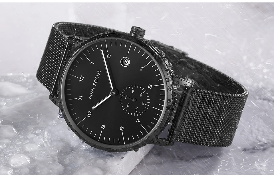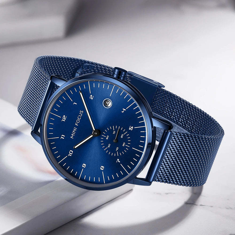 MINI FOCUS Fashion Business Mens Watches Top Brand Luxury Quartz Wristwatches Calendar Stainless Steel Strap Luxury Watches 0303