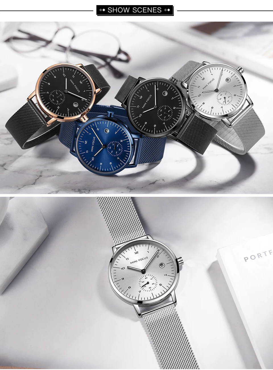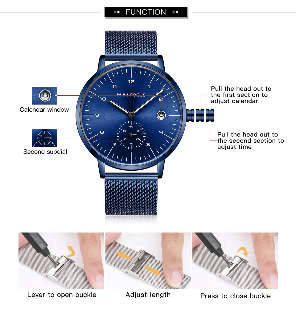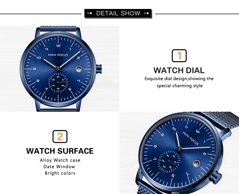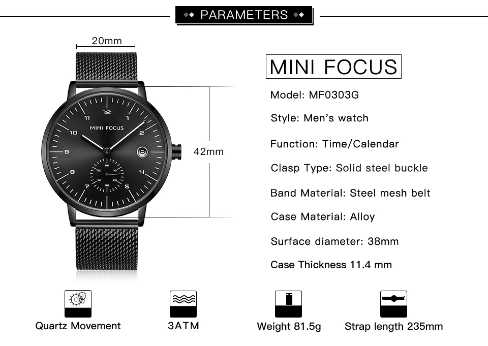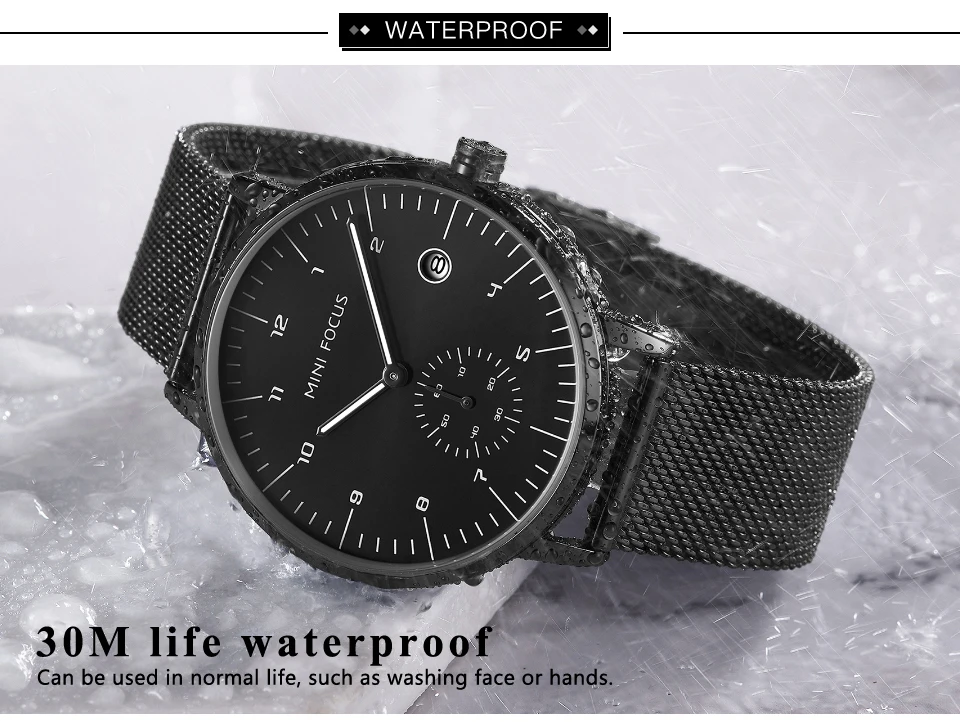 MINI FOCUS Fashion Business Mens Watches Top Brand Luxury Quartz Wristwatches Calendar Stainless Steel Strap Luxury Watches 0303