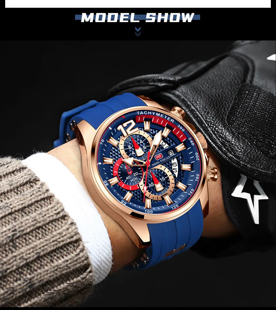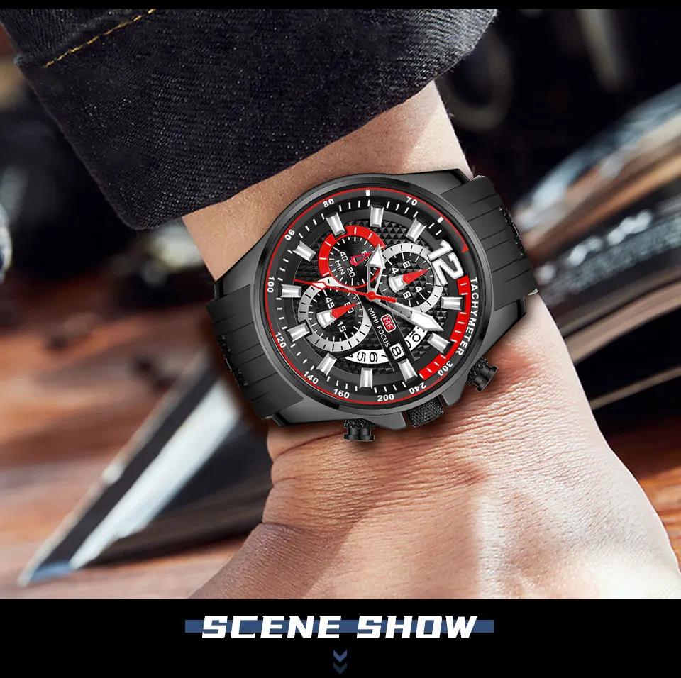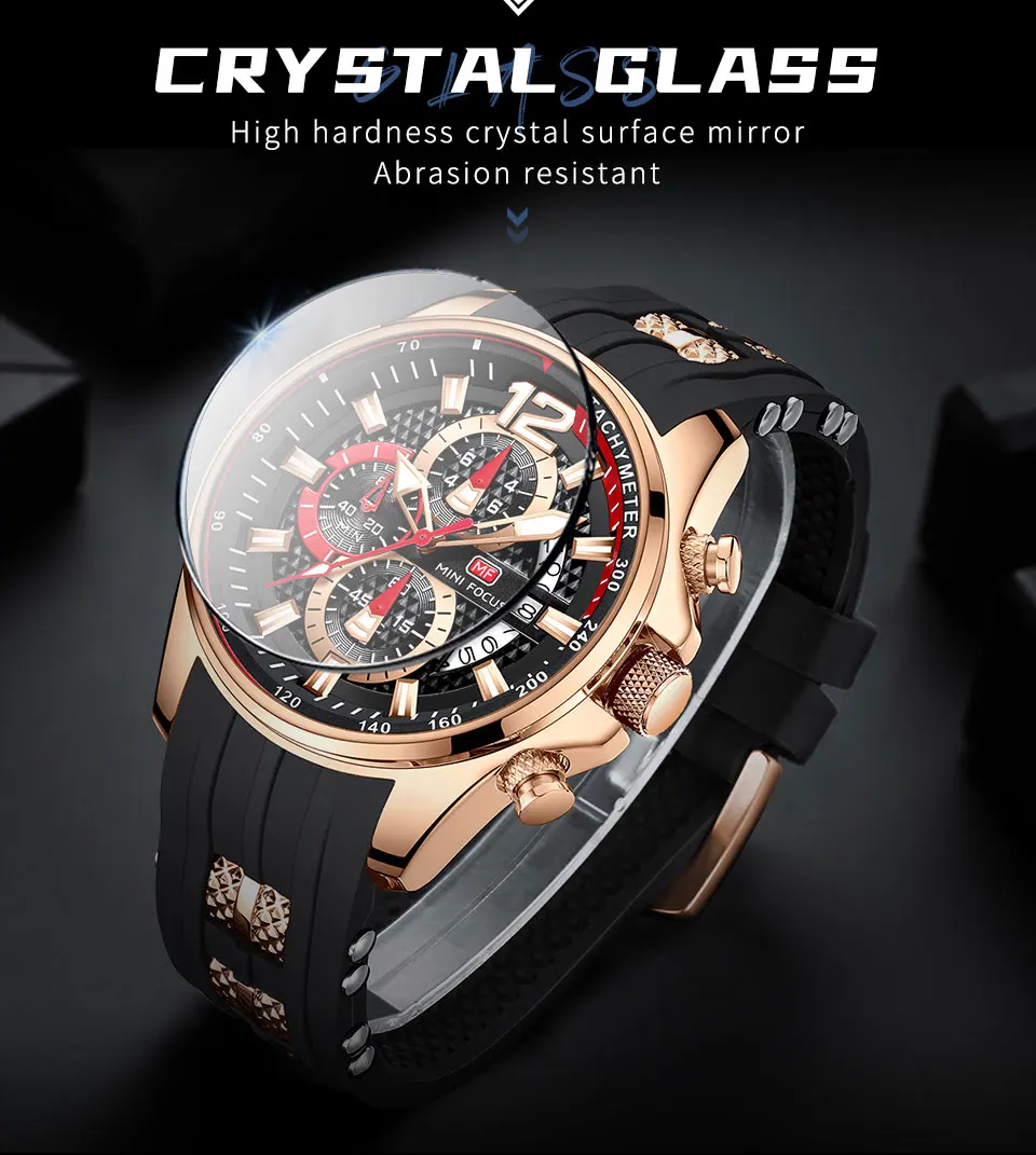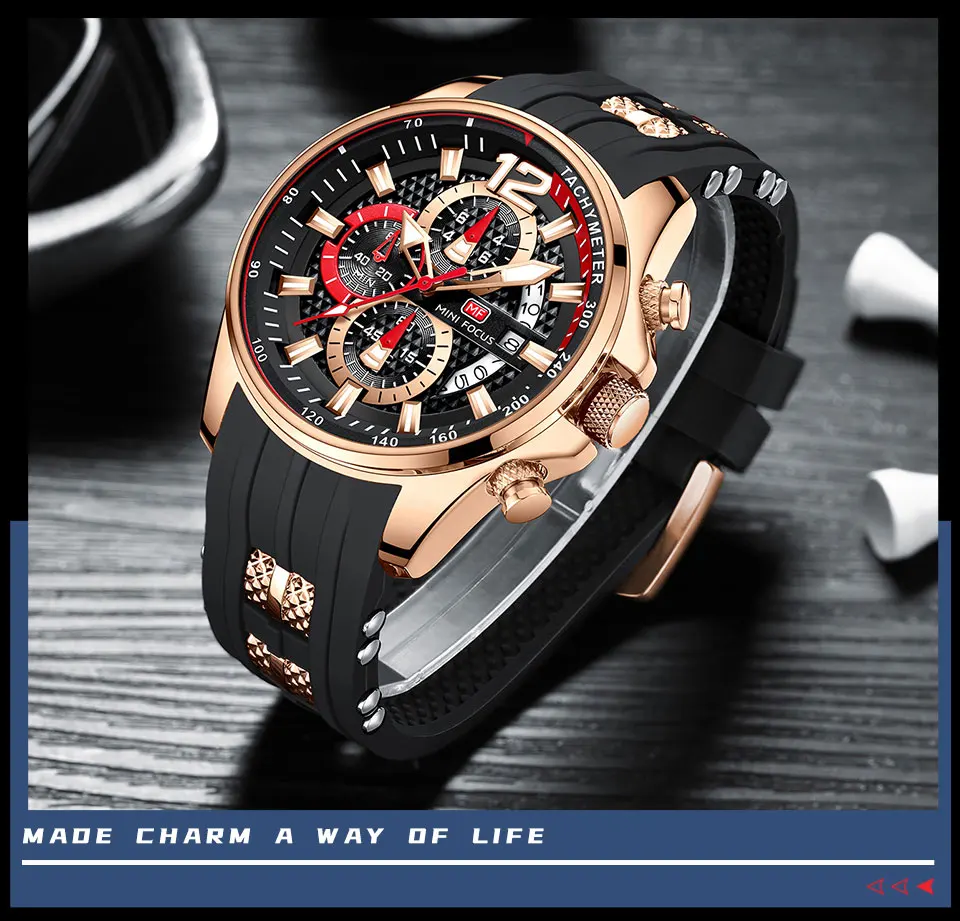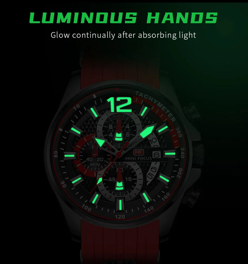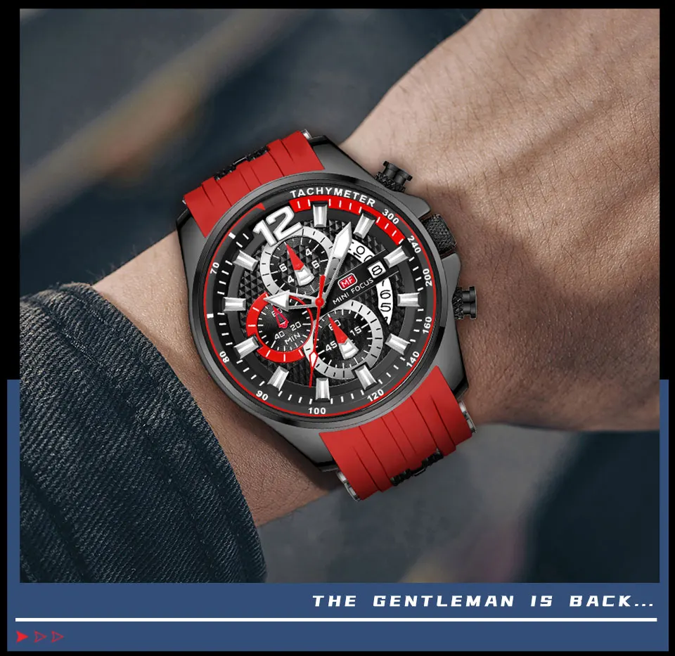 MINI FOCUS Red Watch for Men Fashion Luxury Chronograph Quartz Wristwatch with Silicone Band Luminous Hands Date Waterproof 0350