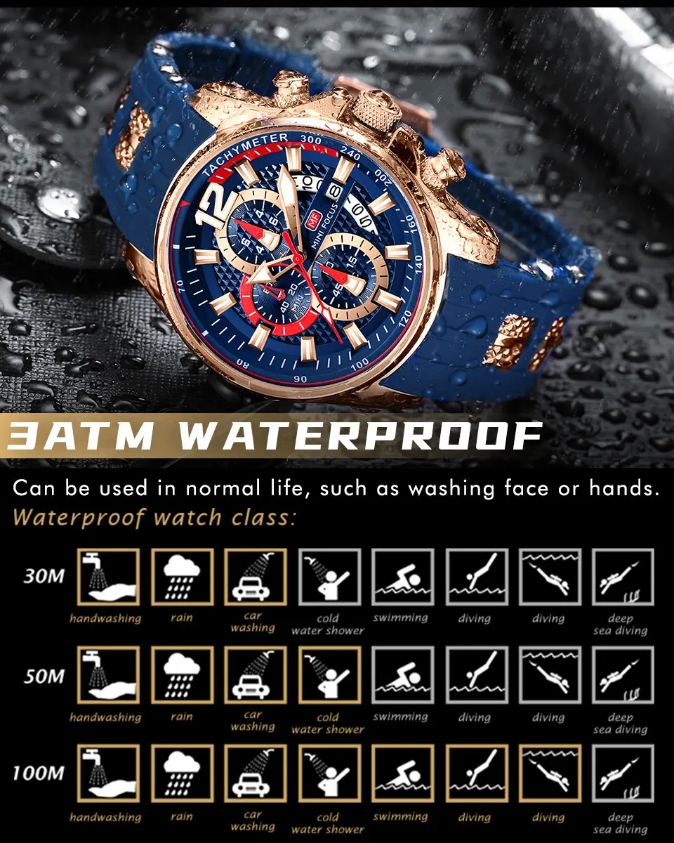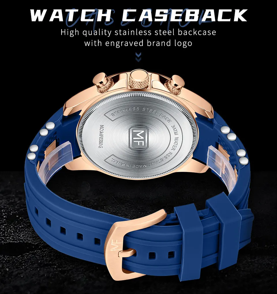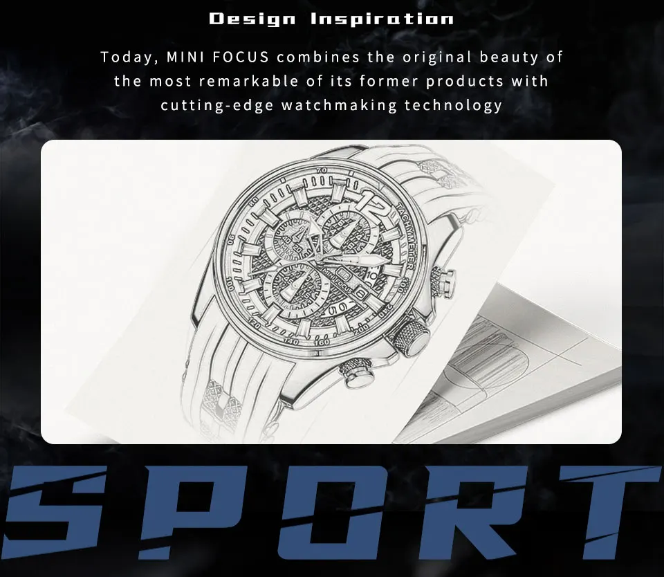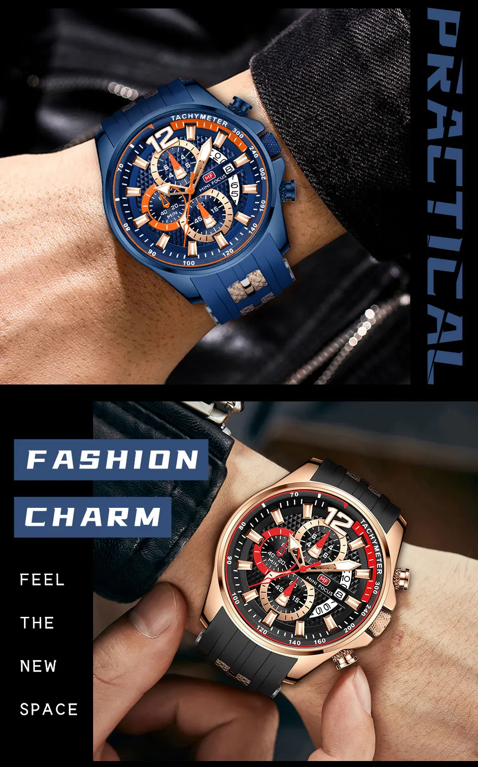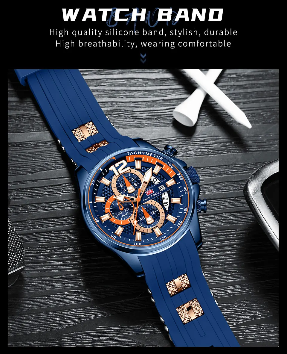 MINI FOCUS Red Watch for Men Fashion Luxury Chronograph Quartz Wristwatch with Silicone Band Luminous Hands Date Waterproof 0350