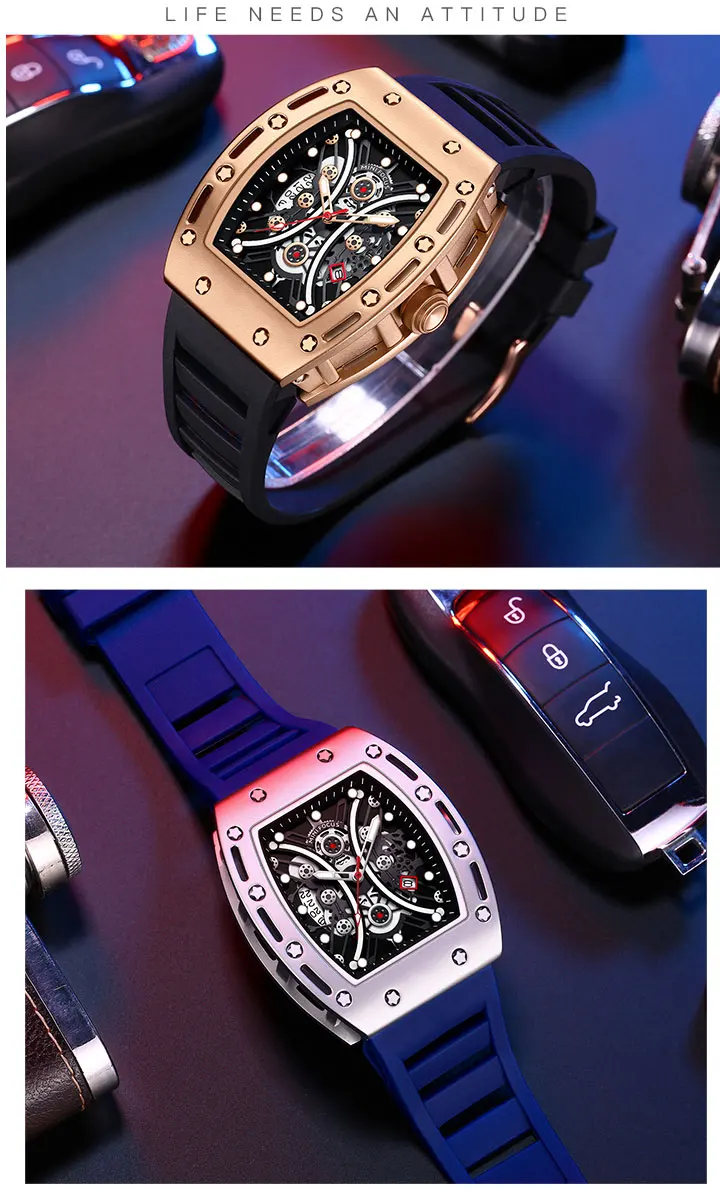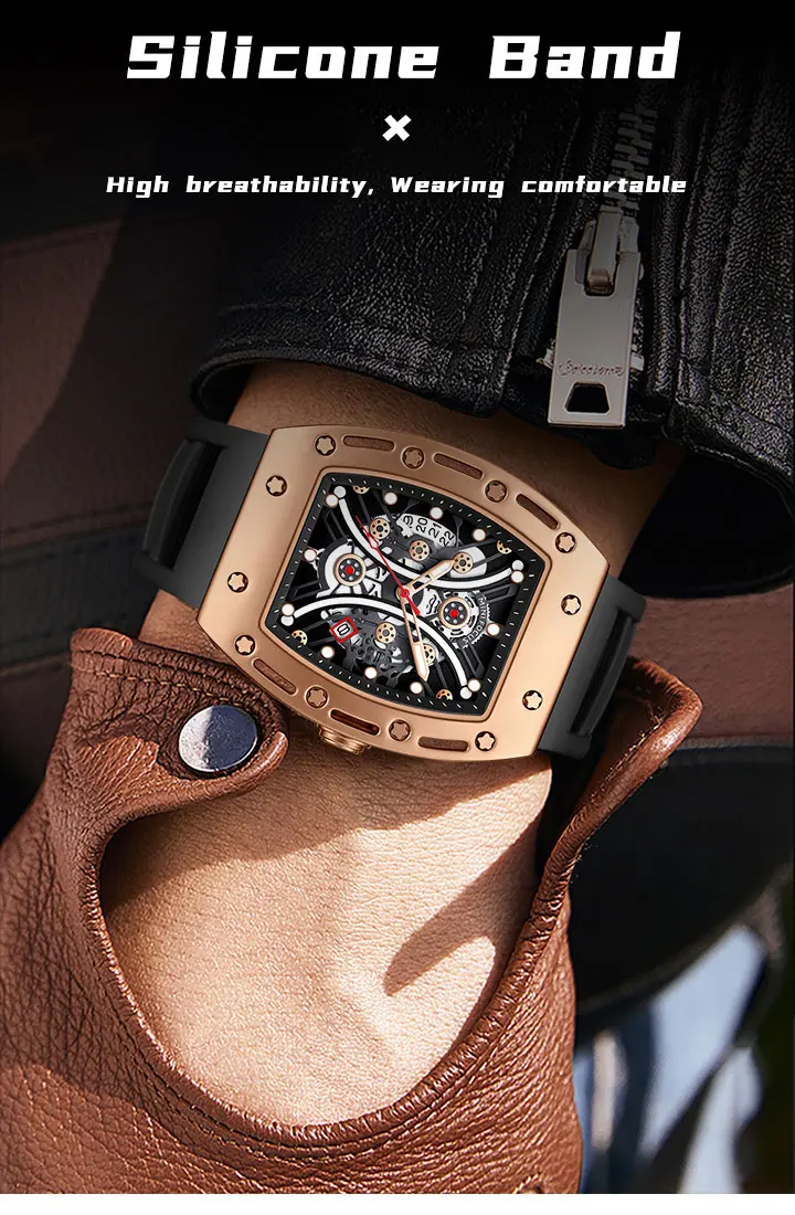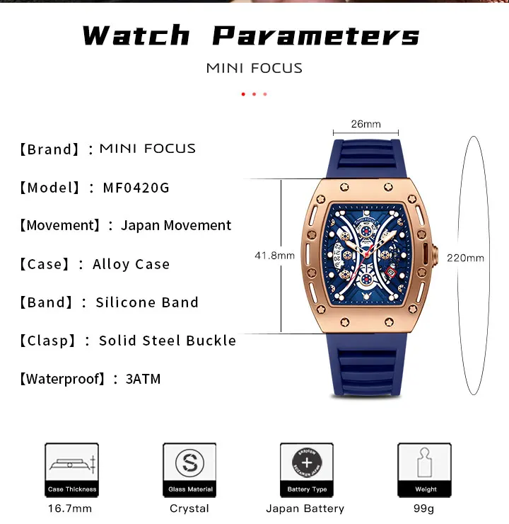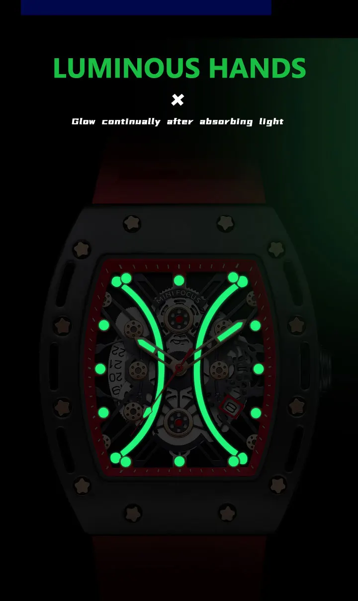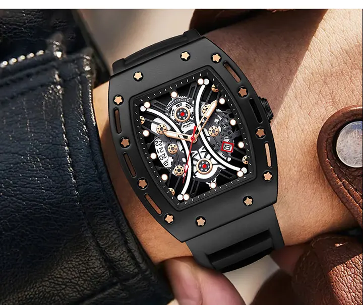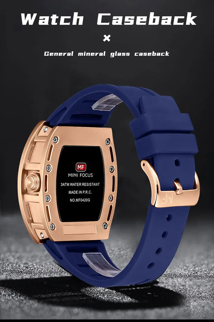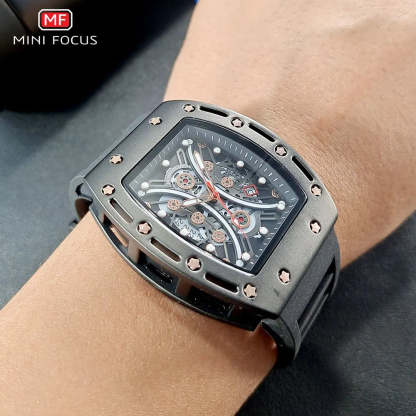 MINI FOCUS Tonneau Watch for Men Military Sport Wristwatch Waterproof Silicone Strap Quartz Watches relogio reloj montre часы