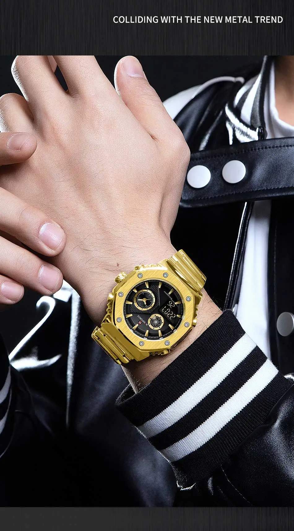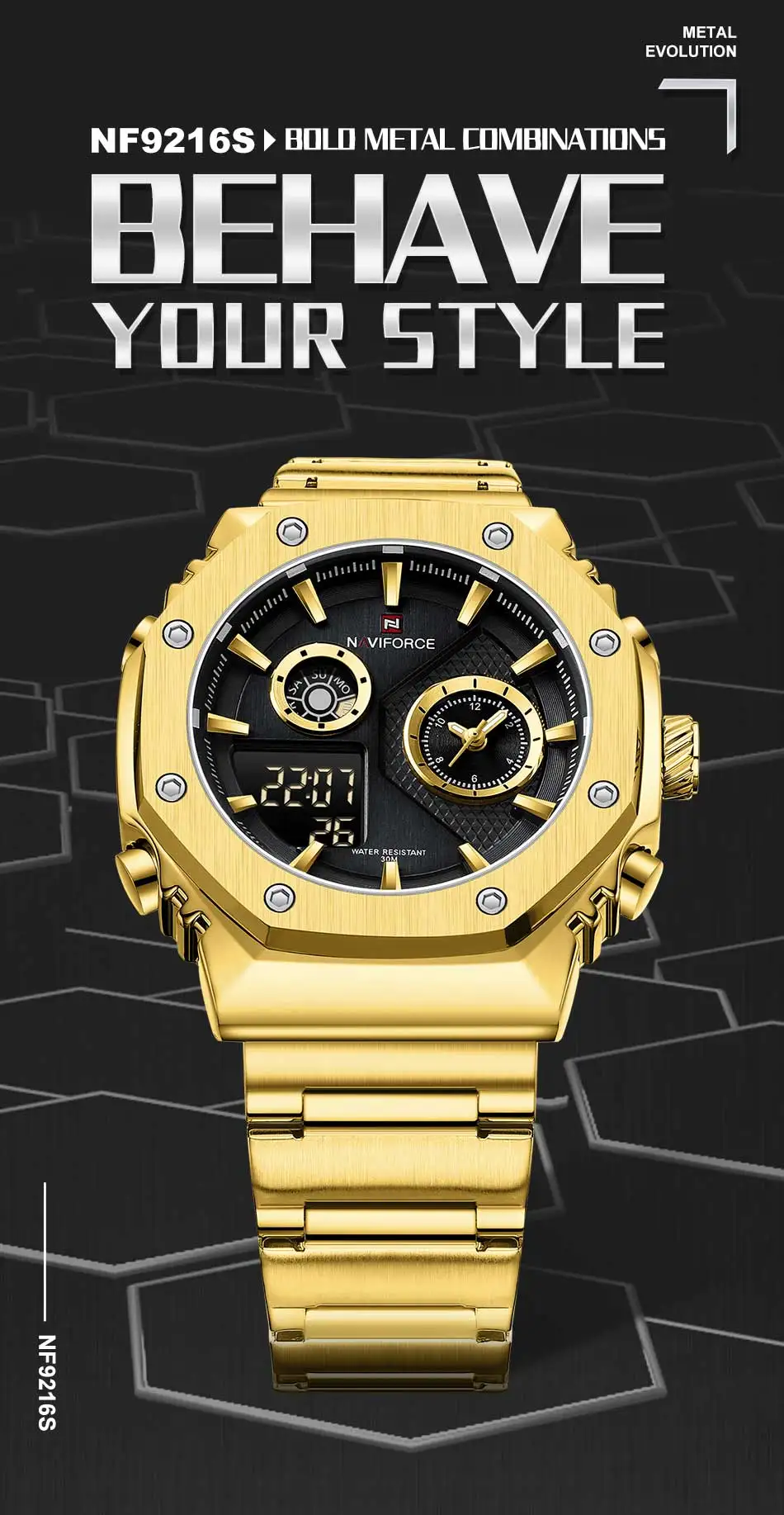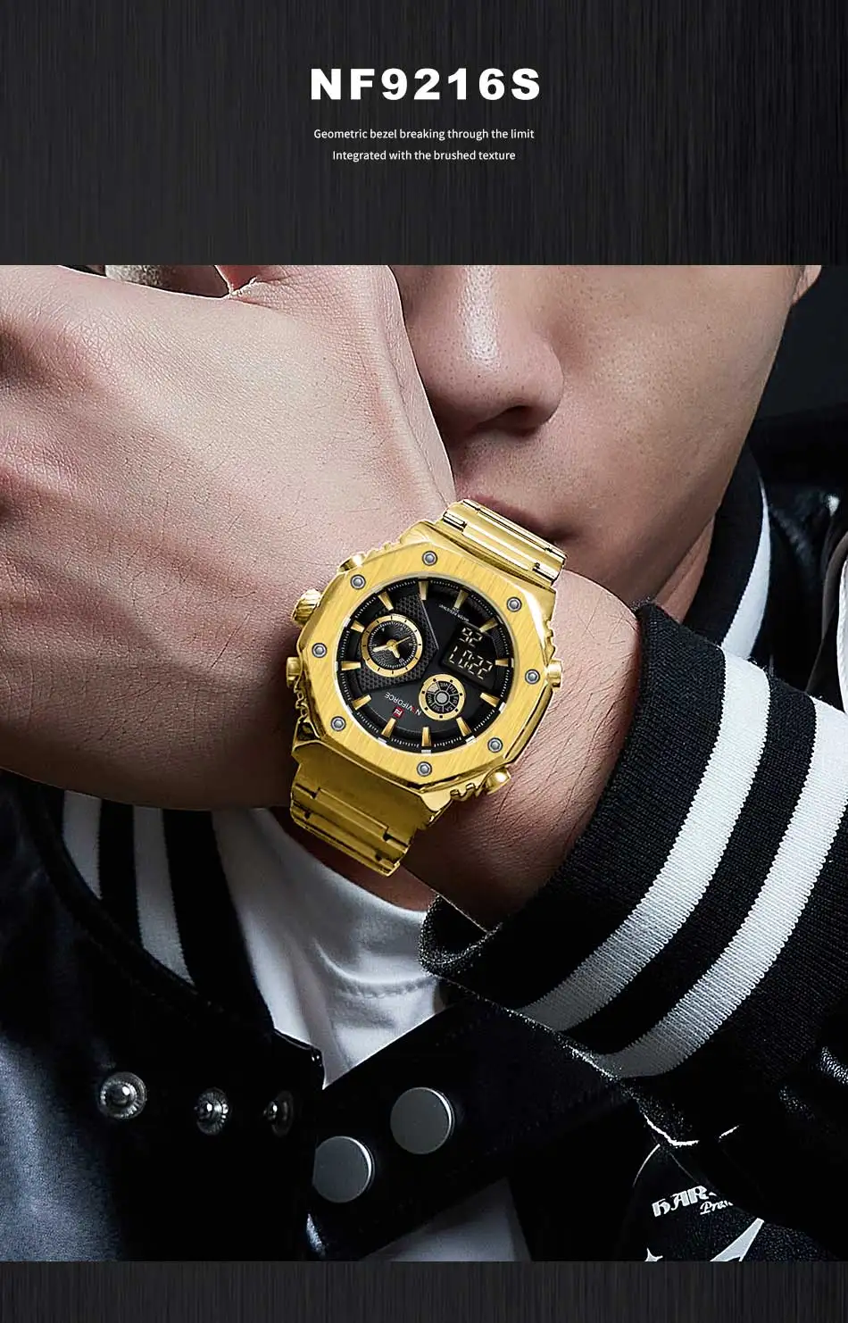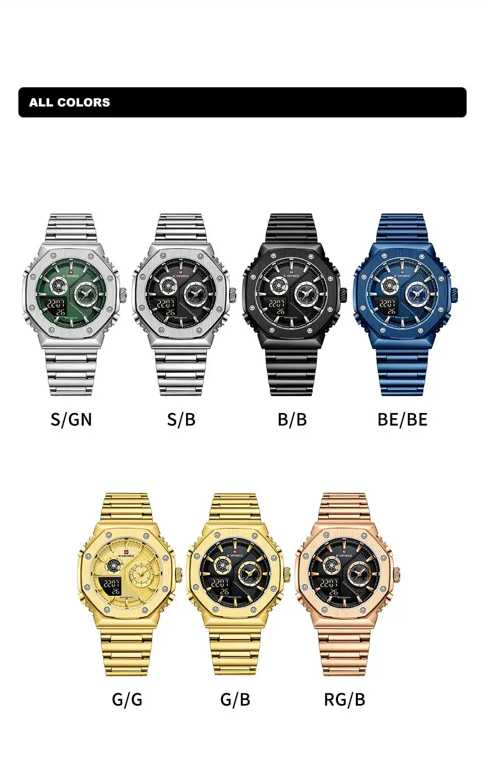 NAVIFORCE Men's Sport Watch Stainless Steel Strap Waterproof Quartz Wristwatch Male LCD Display Durable Clock Relogio Masculino