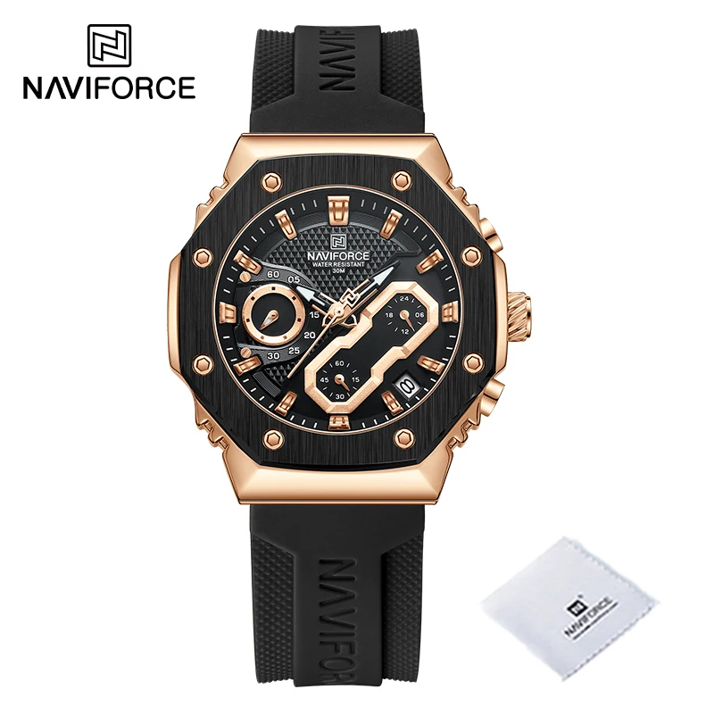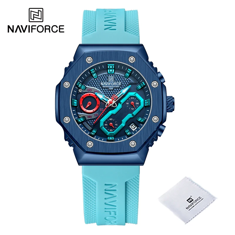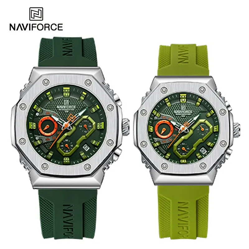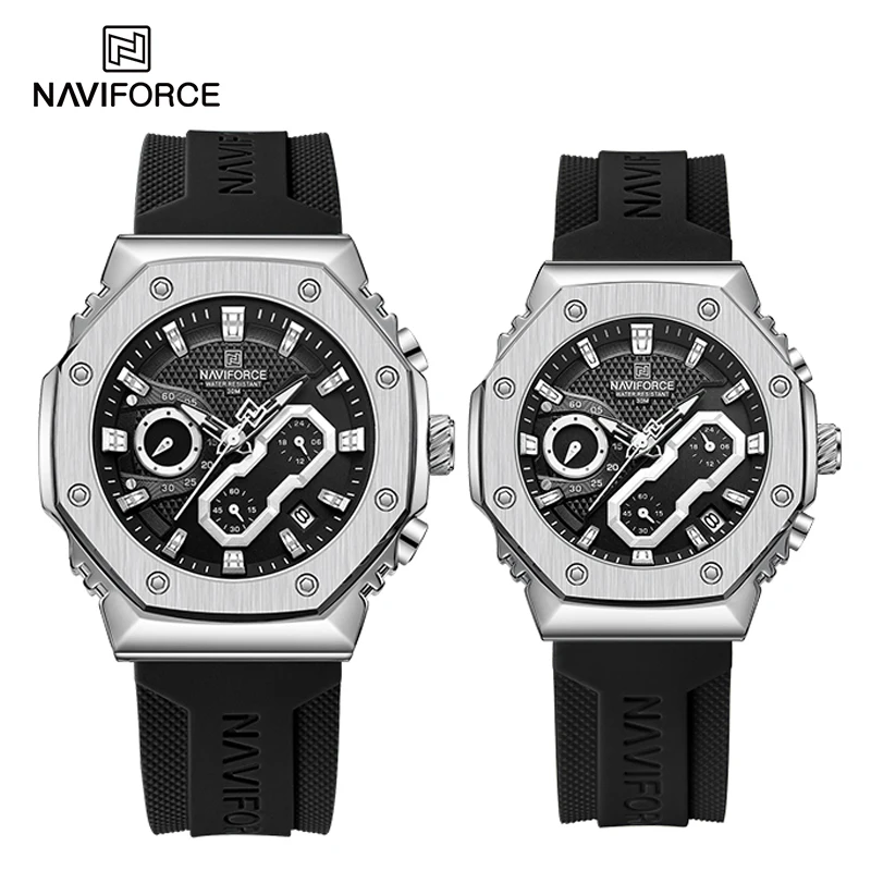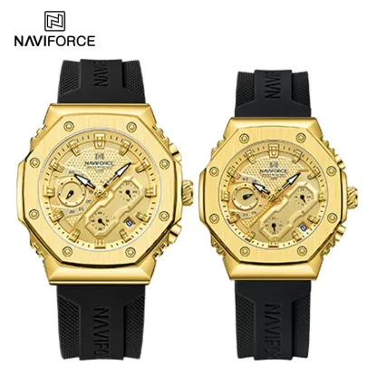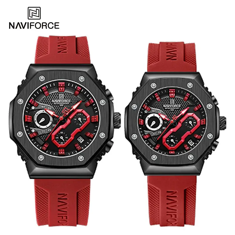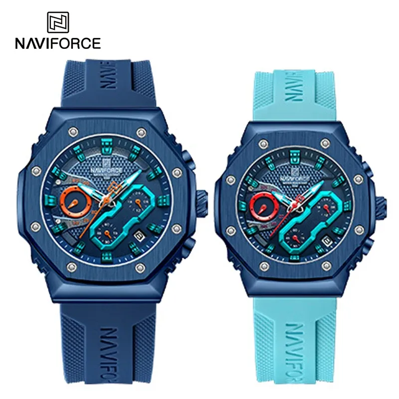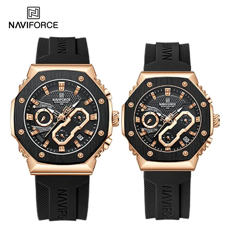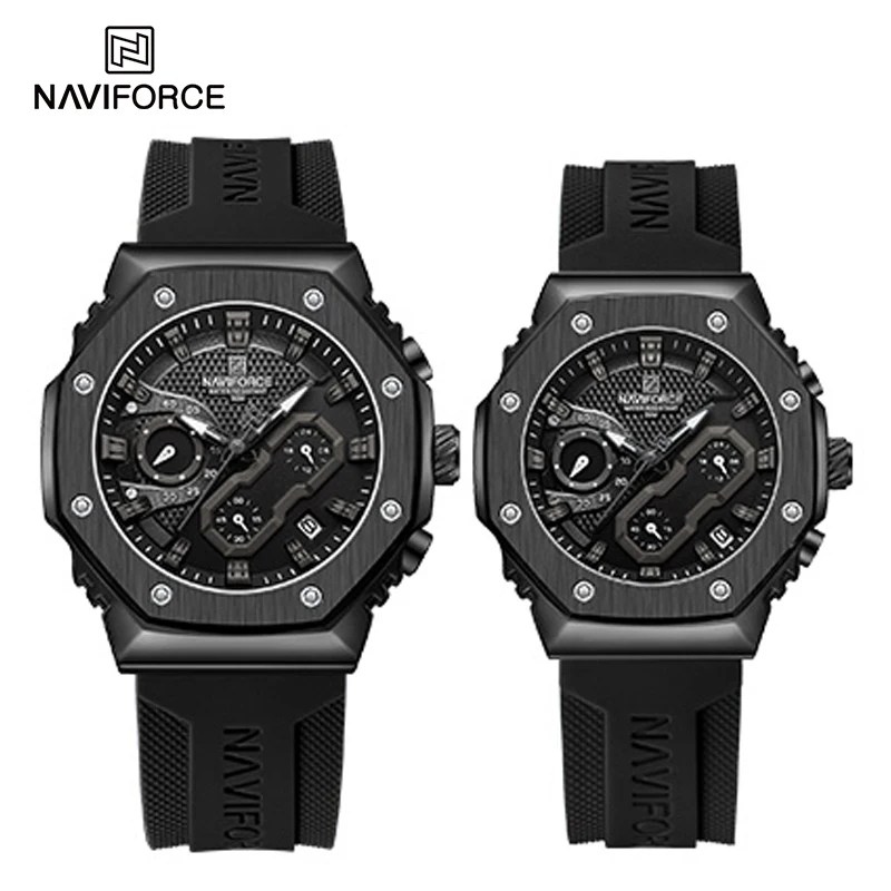 NAVIFORCE New Sport Lovers Watches Soft Silicone Band Quartz Calendar Chronograph Clock Casual Water Resistant Couple Wristwatch