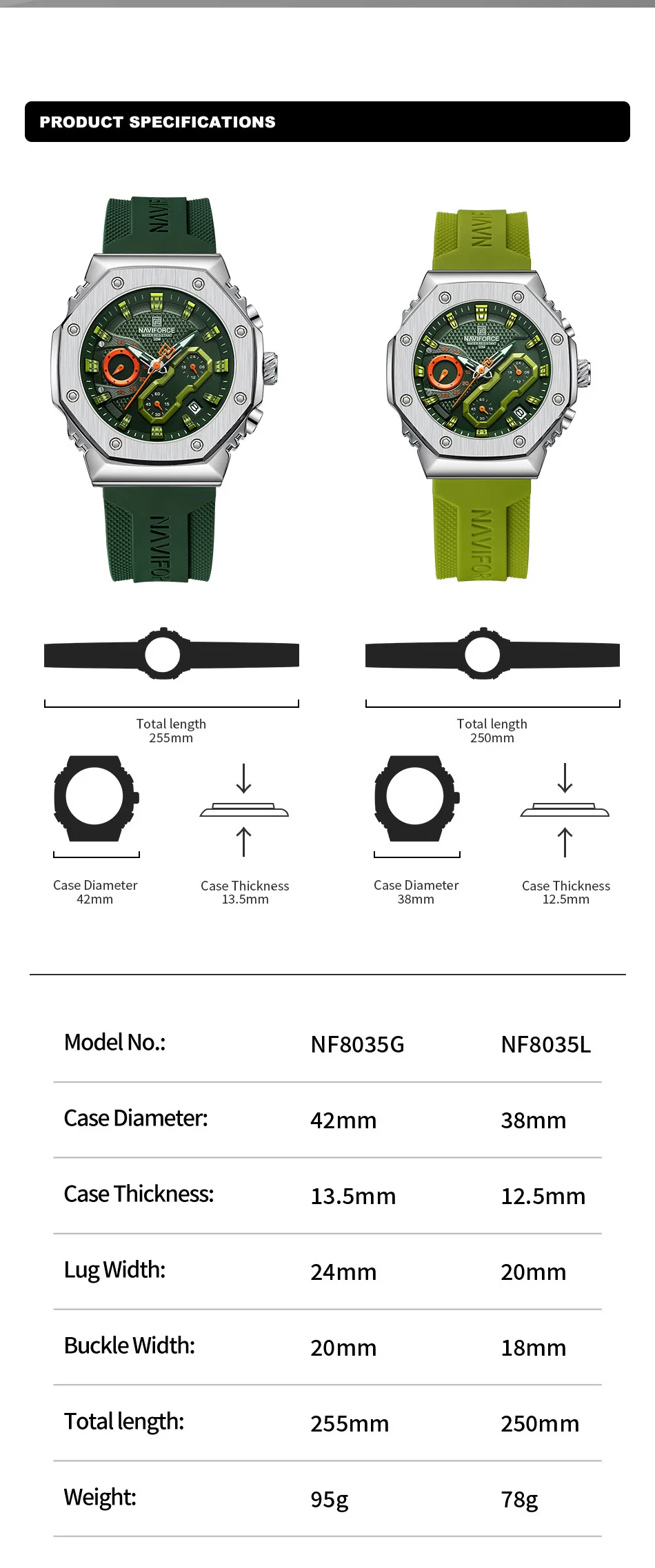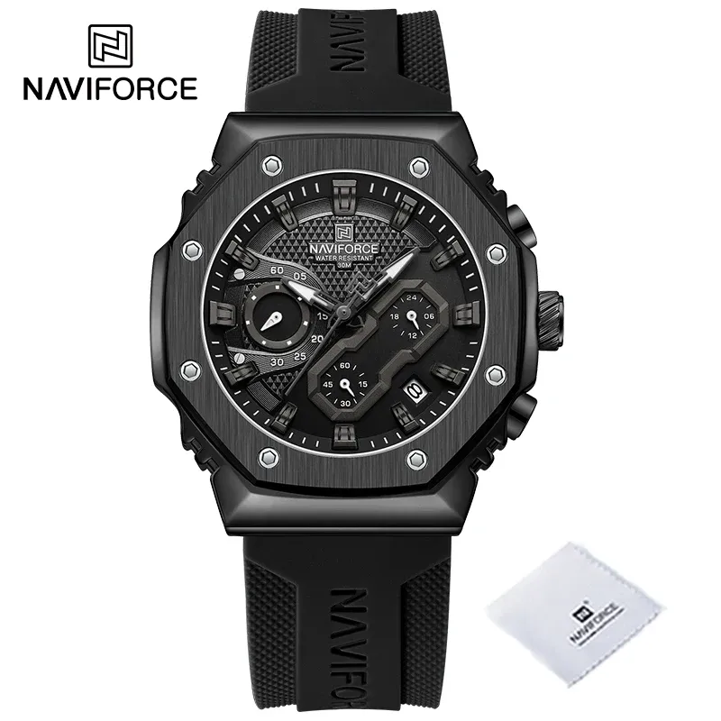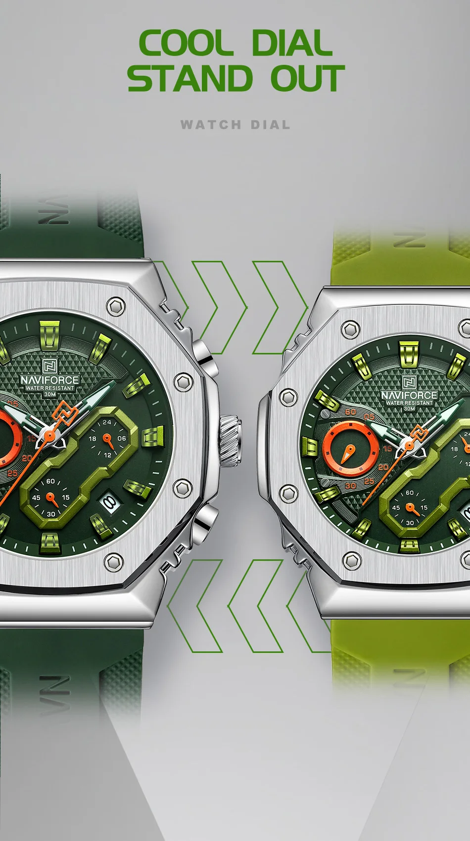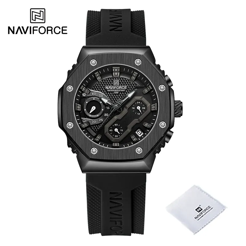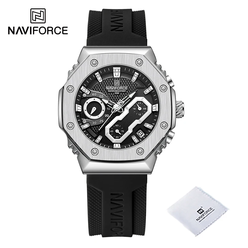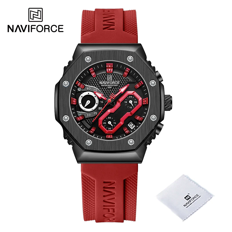 NAVIFORCE New Sport Lovers Watches Soft Silicone Band Quartz Calendar Chronograph Clock Casual Water Resistant Couple Wristwatch