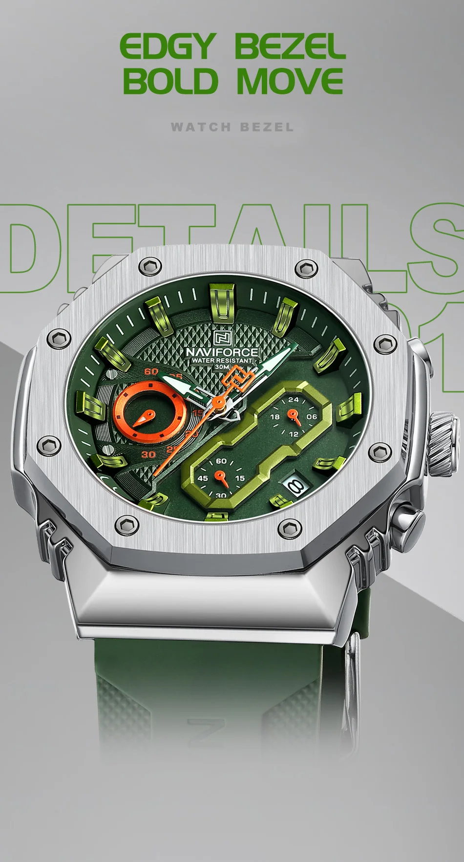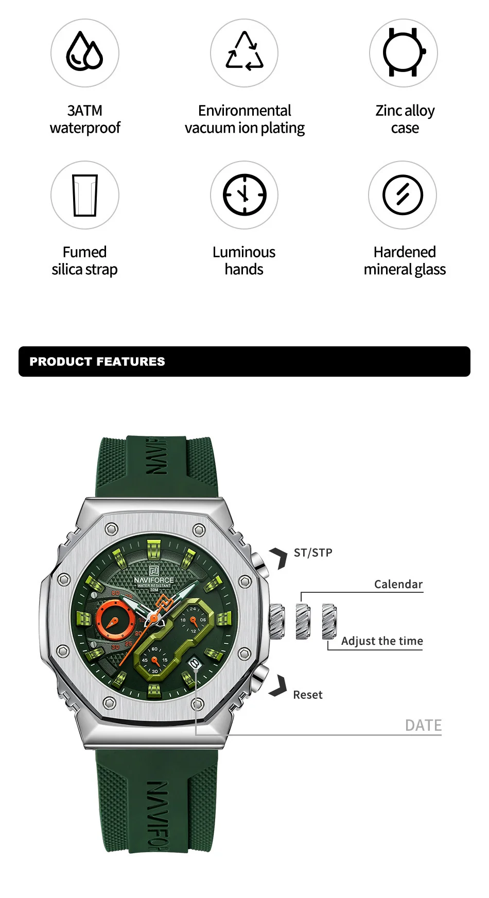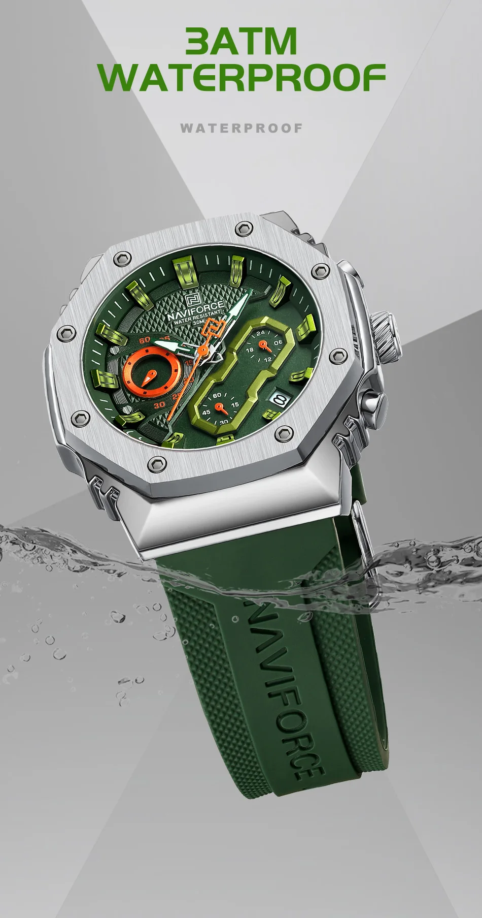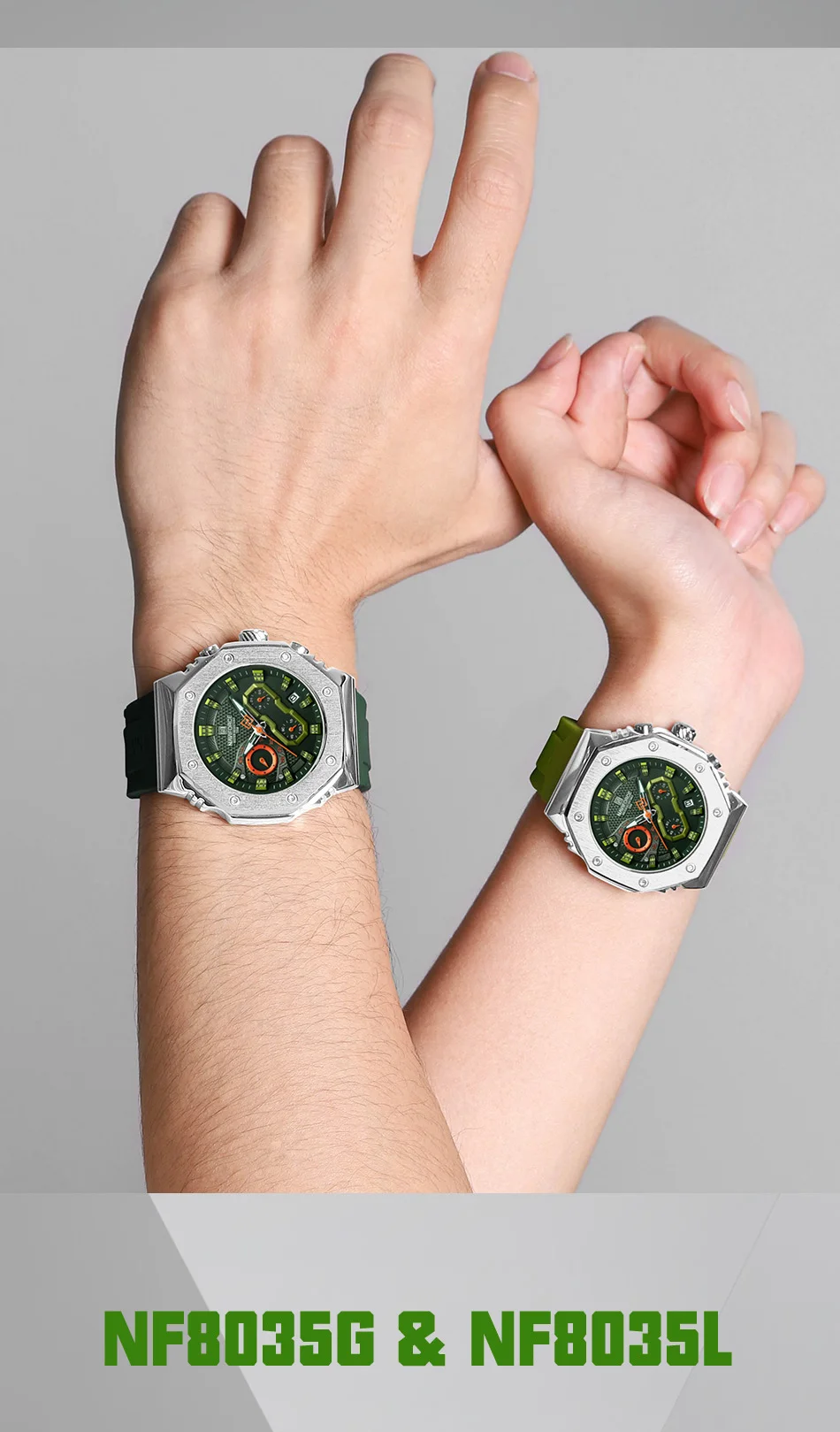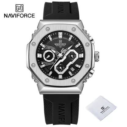 NAVIFORCE New Sport Lovers Watches Soft Silicone Band Quartz Calendar Chronograph Clock Casual Water Resistant Couple Wristwatch