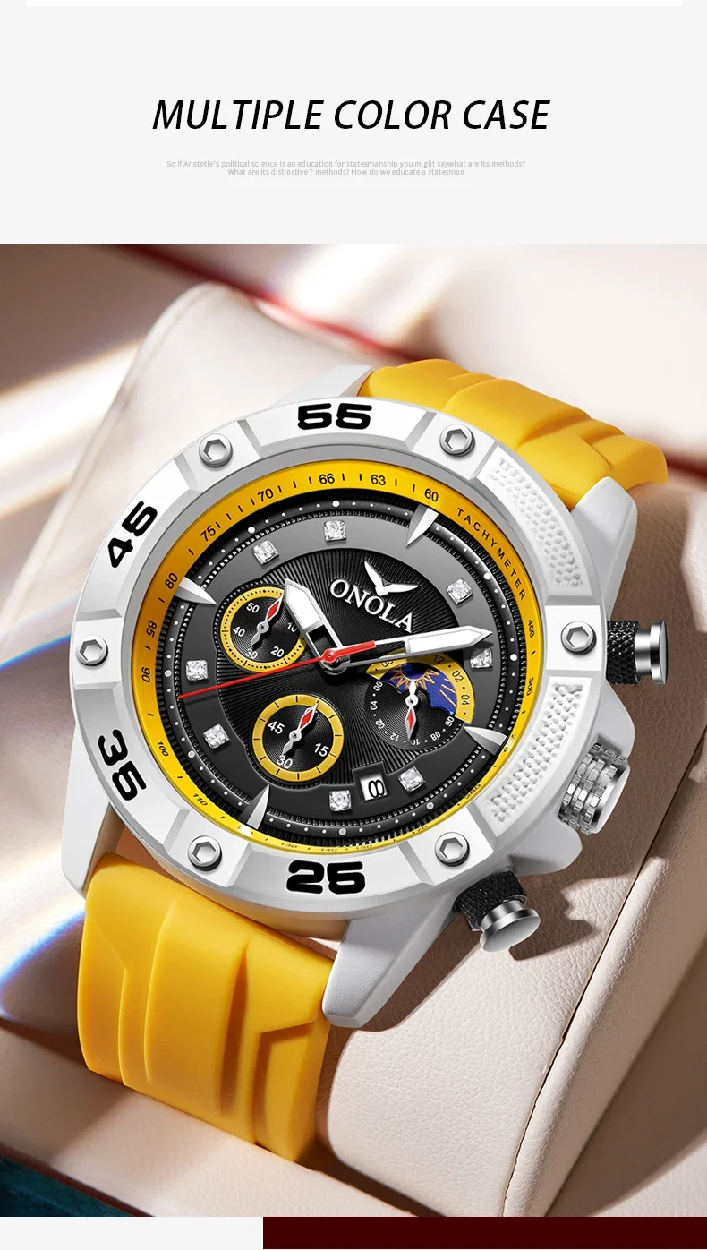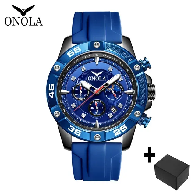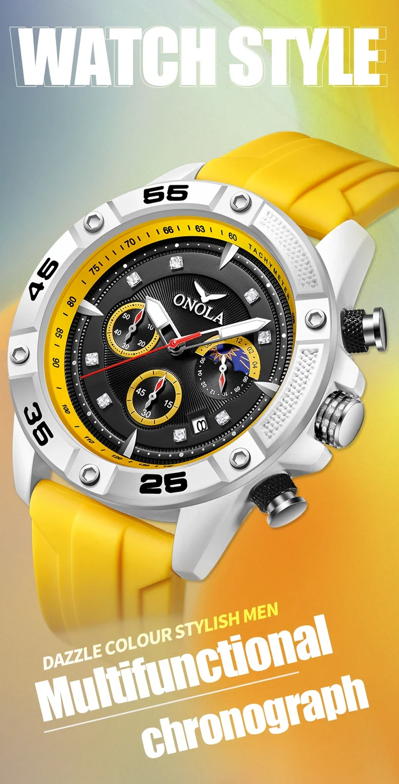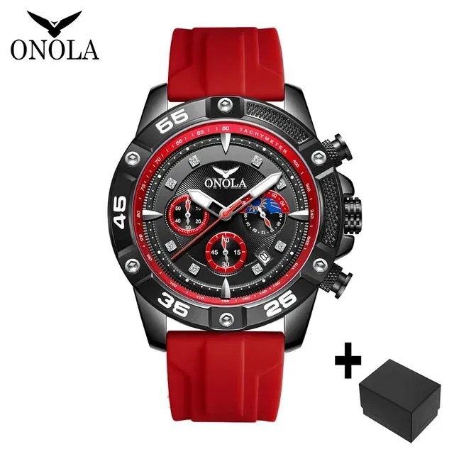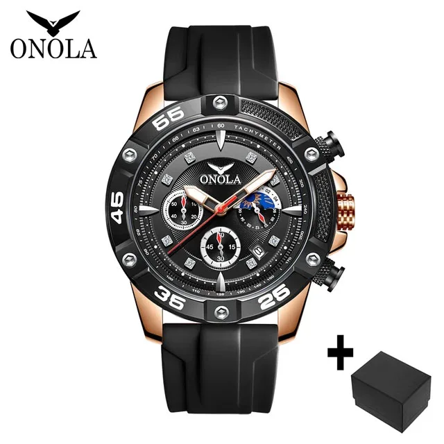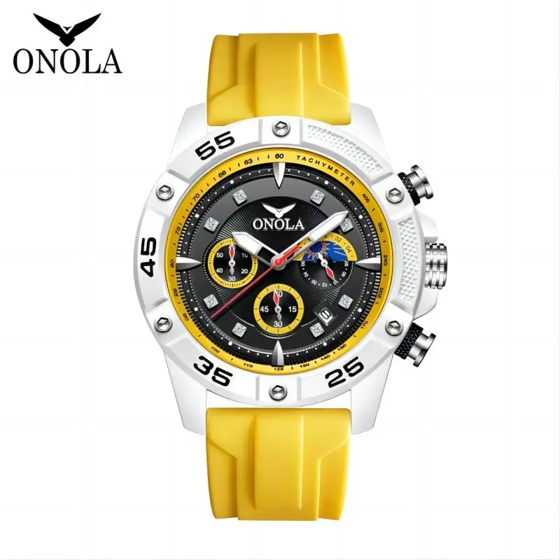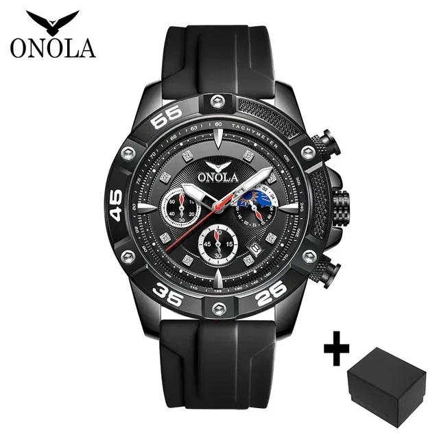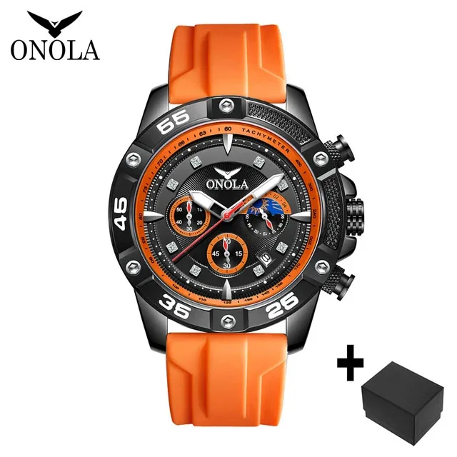 New fashion onola watch for mens multifunction quartz luminous chronograph waterproof sport silicone strap wristwatches men gift