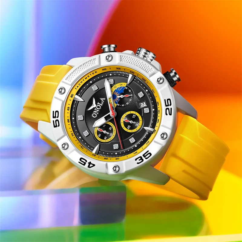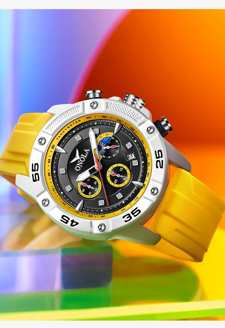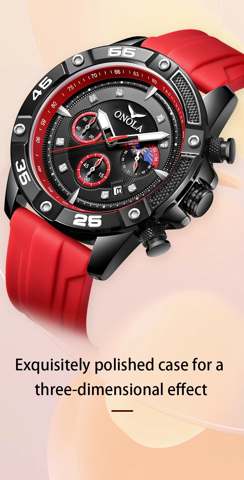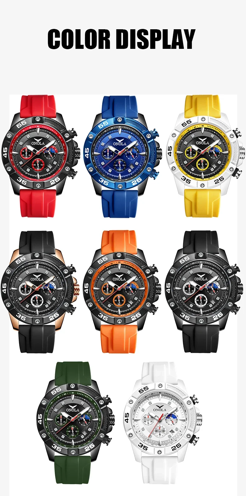 New fashion onola watch for mens multifunction quartz luminous chronograph waterproof sport silicone strap wristwatches men gift