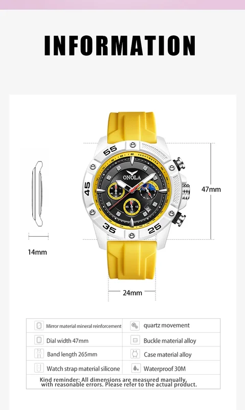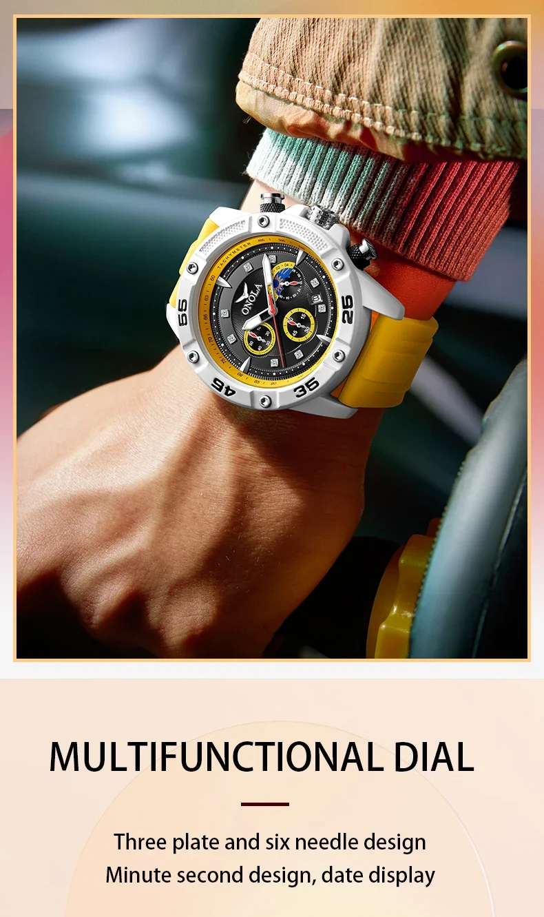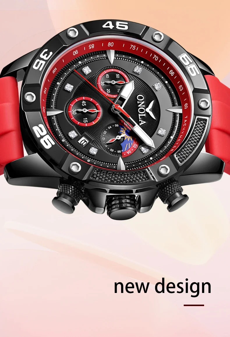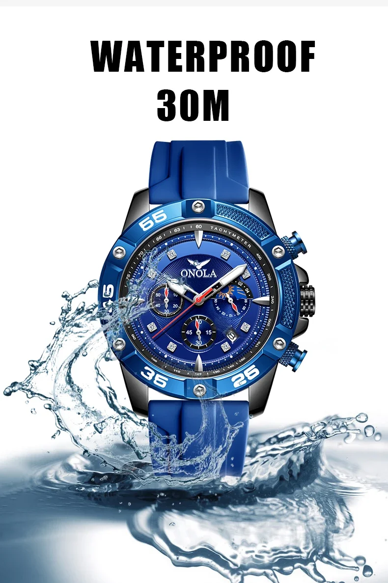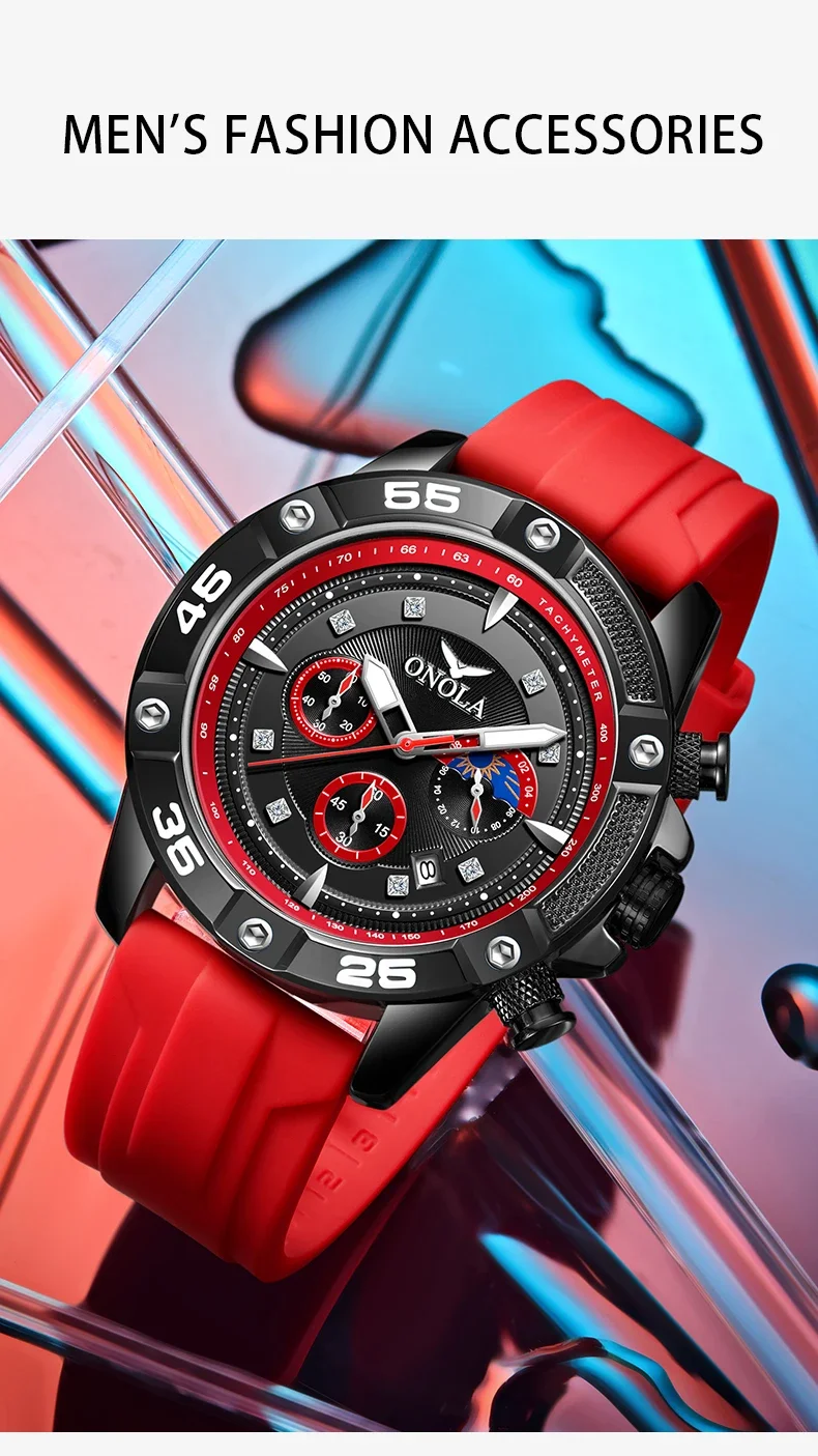 New fashion onola watch for mens multifunction quartz luminous chronograph waterproof sport silicone strap wristwatches men gift