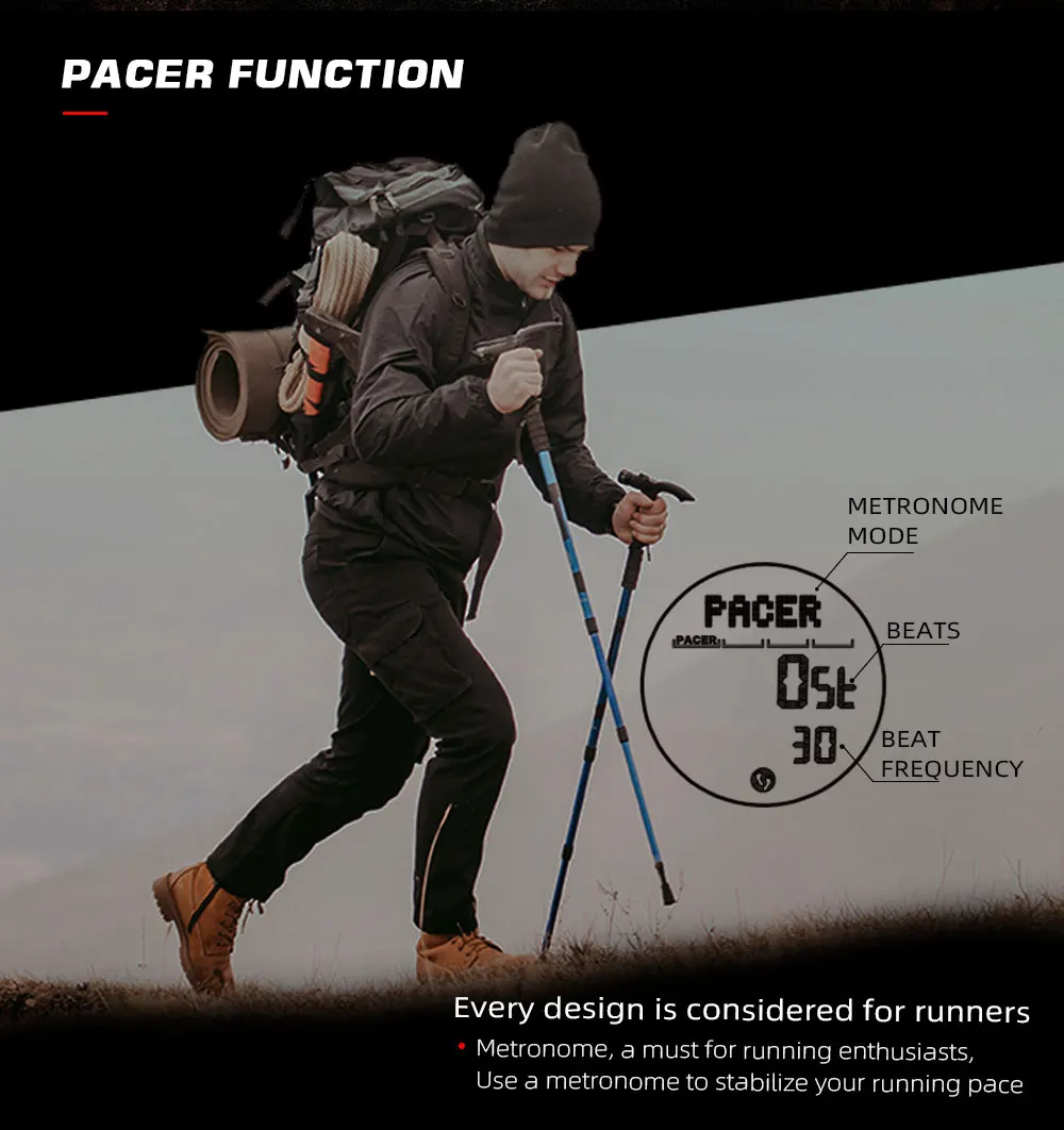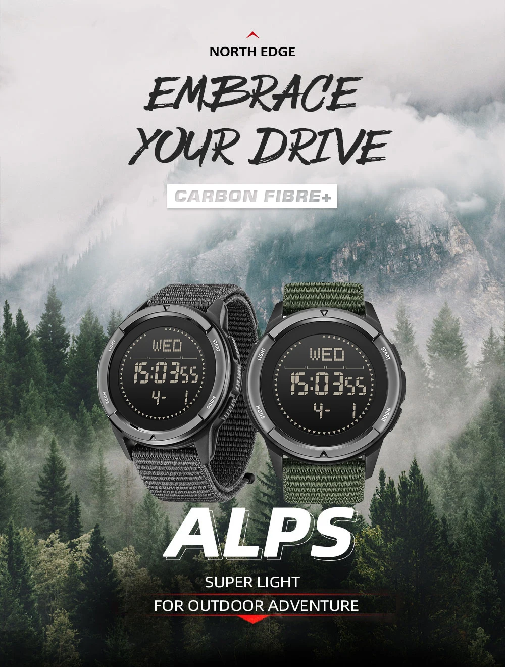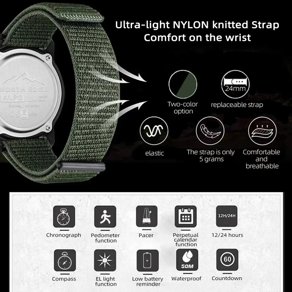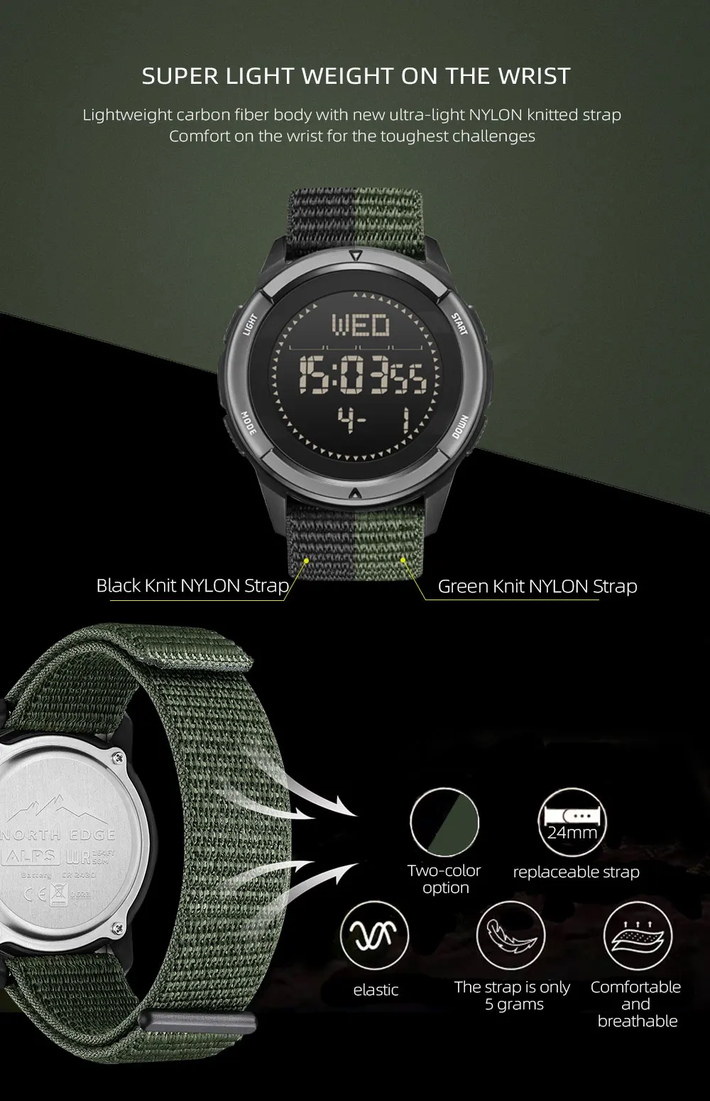 NORTH EDGE Outdoor Sports Watches For Men Metronome Compass Waterproof Carbon Fiber Case Nylon Strap Men Watch Reloj Hombre