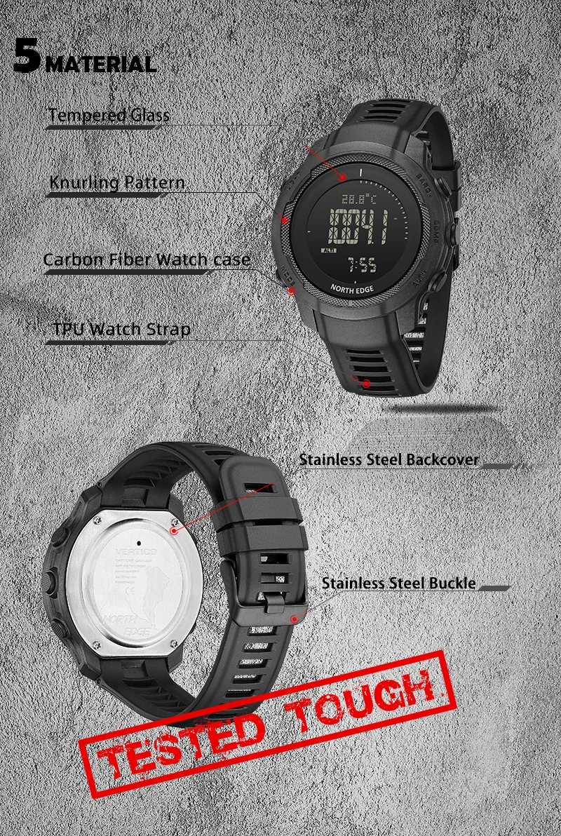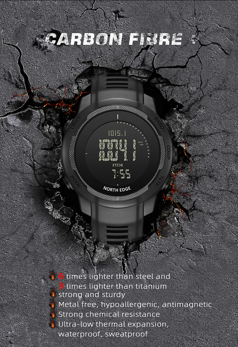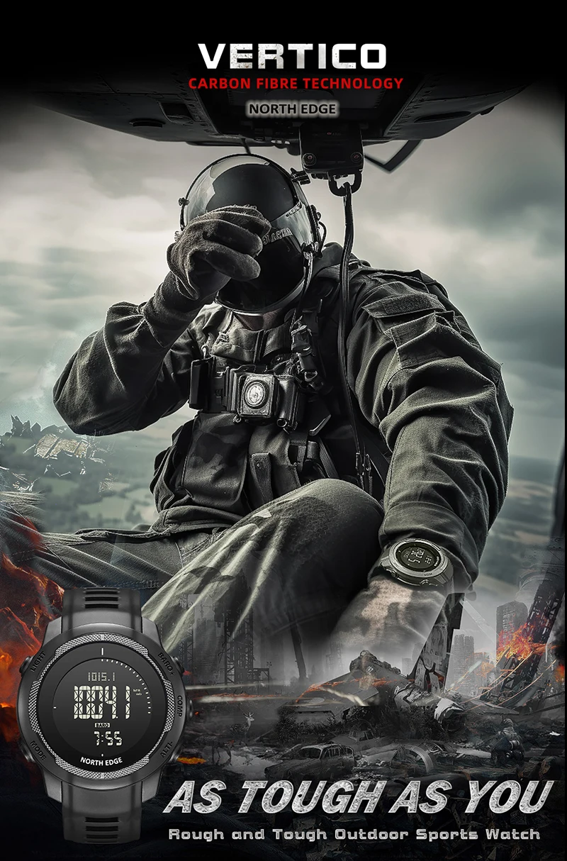 NORTH EDGE VERTICO Men's Digital Watch Carbon Fiber Case Smart Watch For Man Sports WR50M Watch Altimeter Barometer Compass