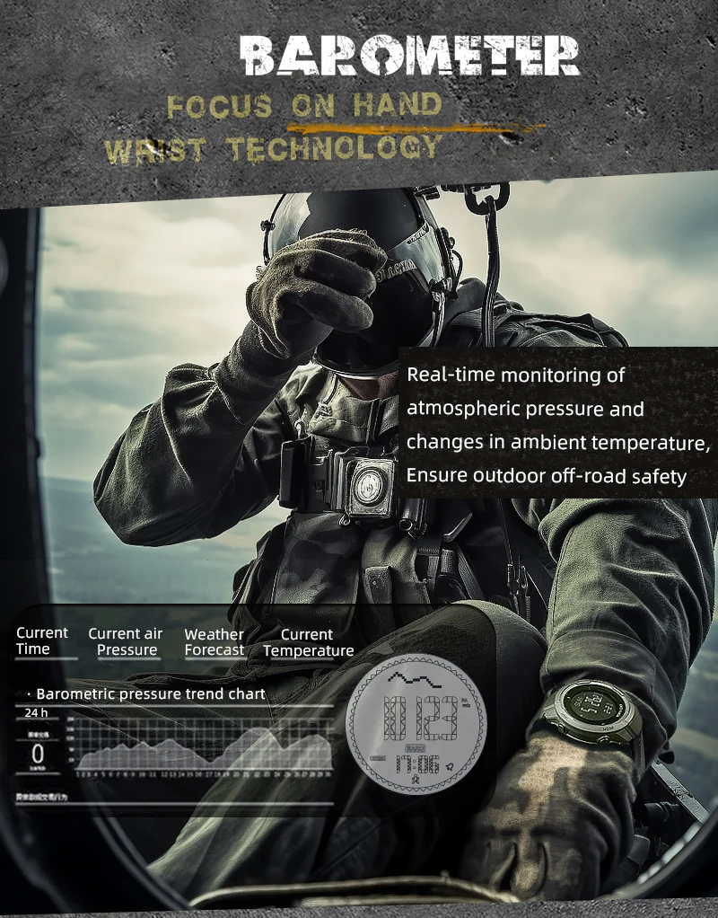 Real-time monitoring of atmospheric pressure and changes in ambient temperature, Ensure outdoor off-road safety
