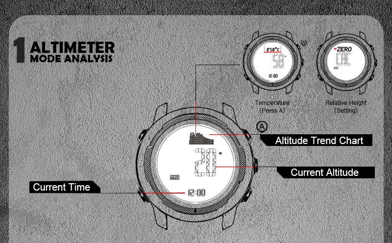 The watch also has a relative altitude measurement function, which can measure the climbing height in real time.