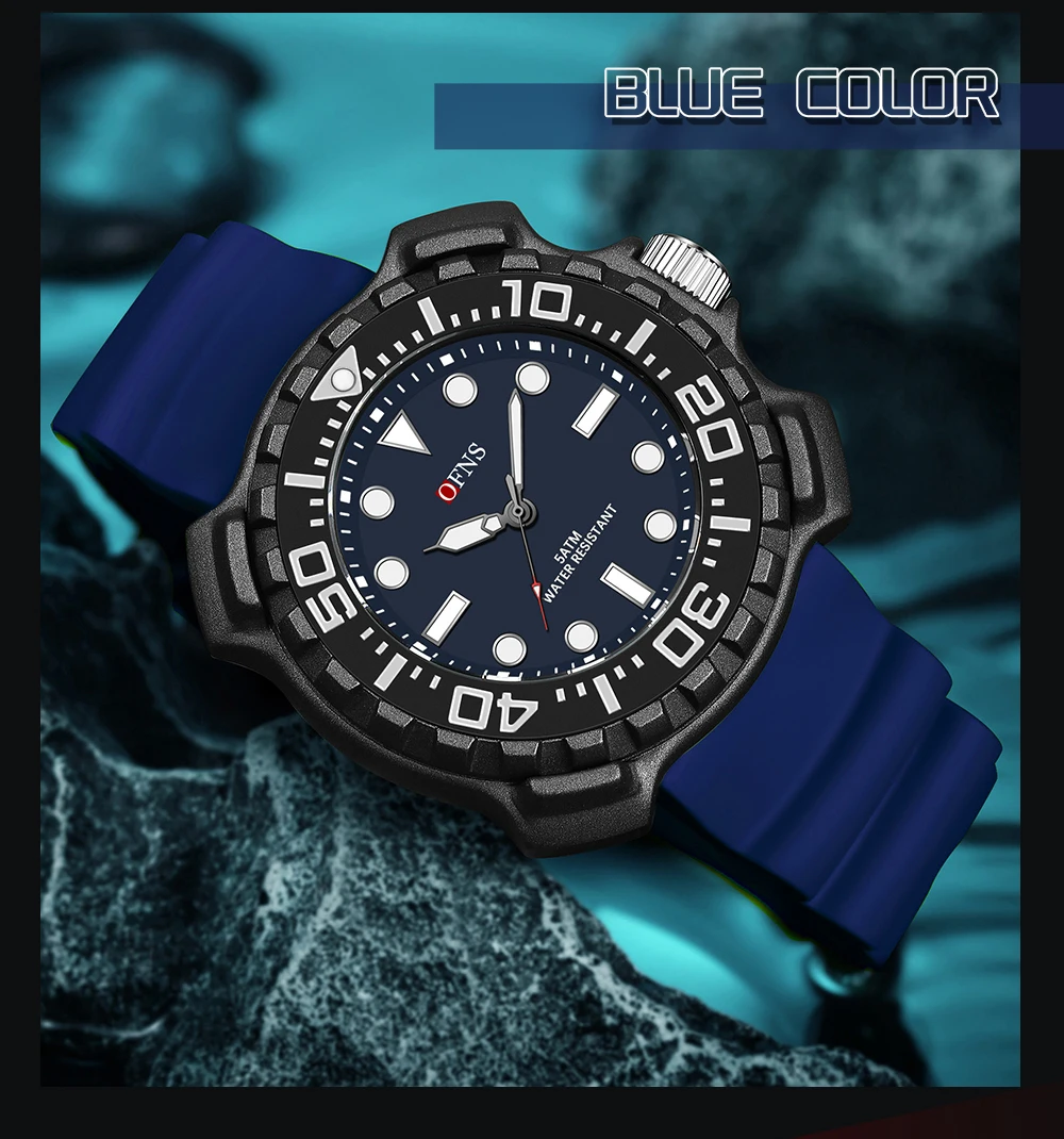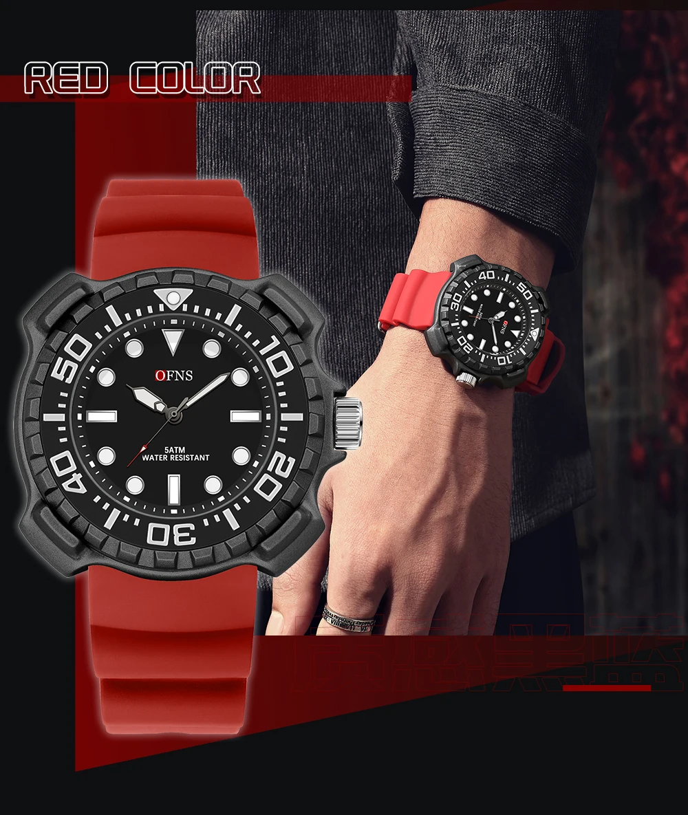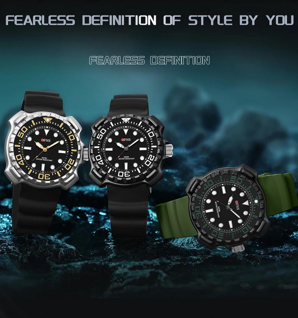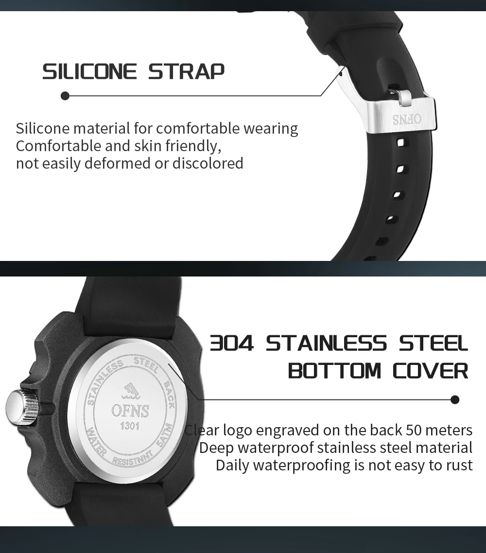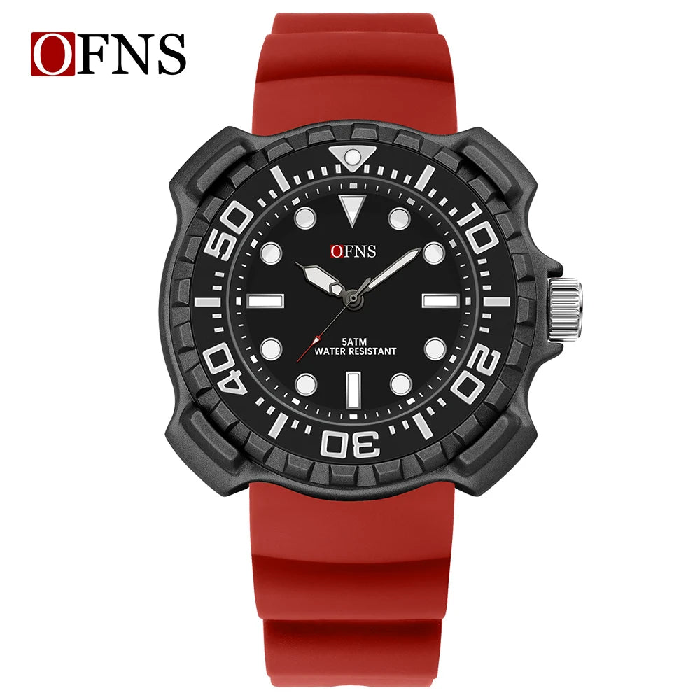 OFNS 1301 Quartz Watch Silicone Strap Fashionable and Trendy Men's Watch Simple Waterproof Electronic Quartz Watch Men's Watch