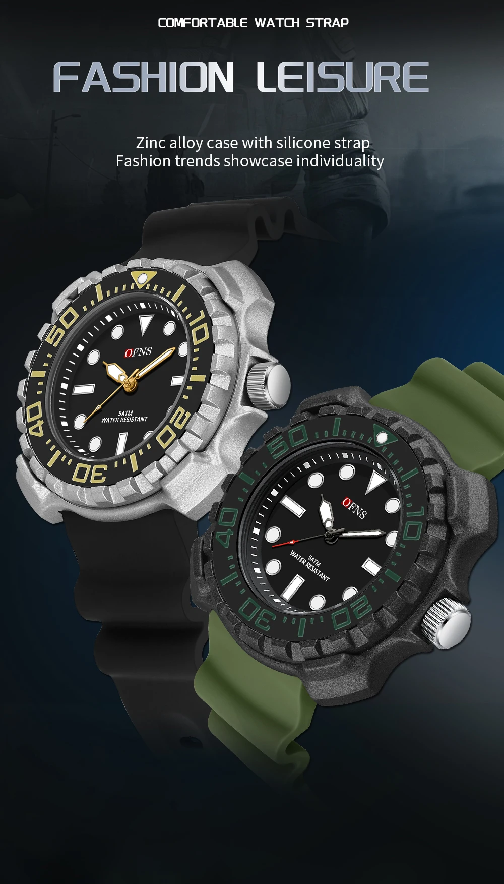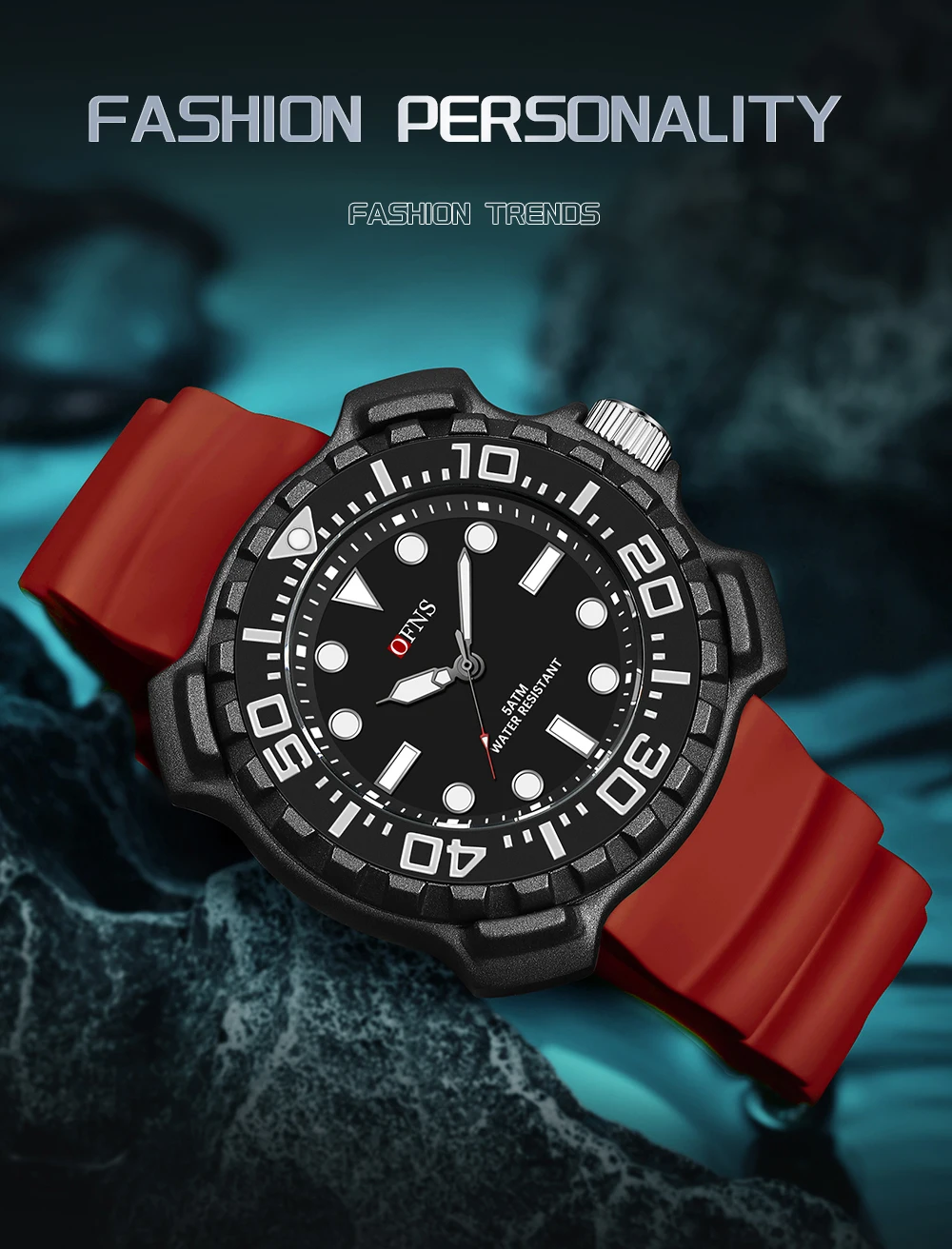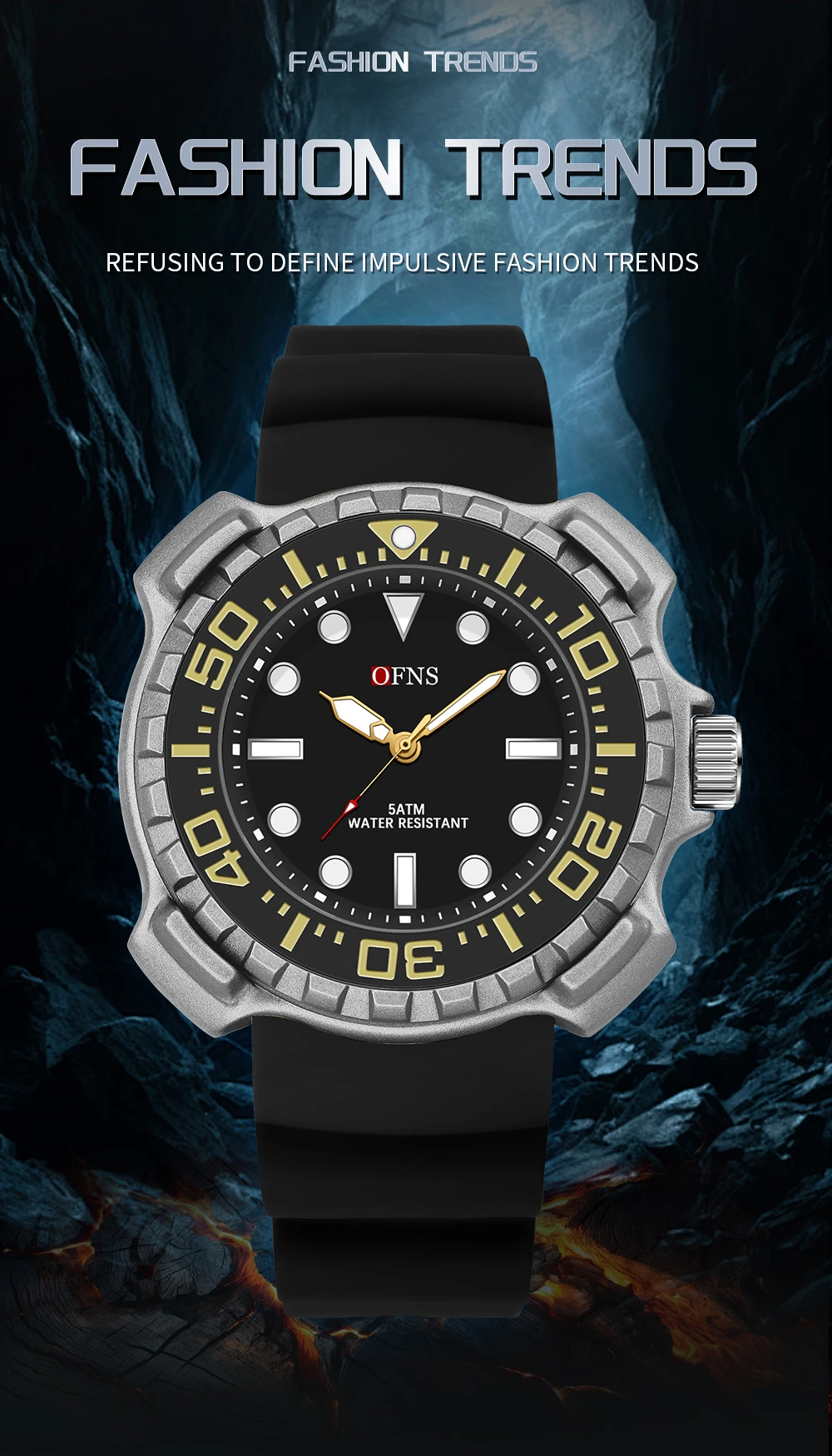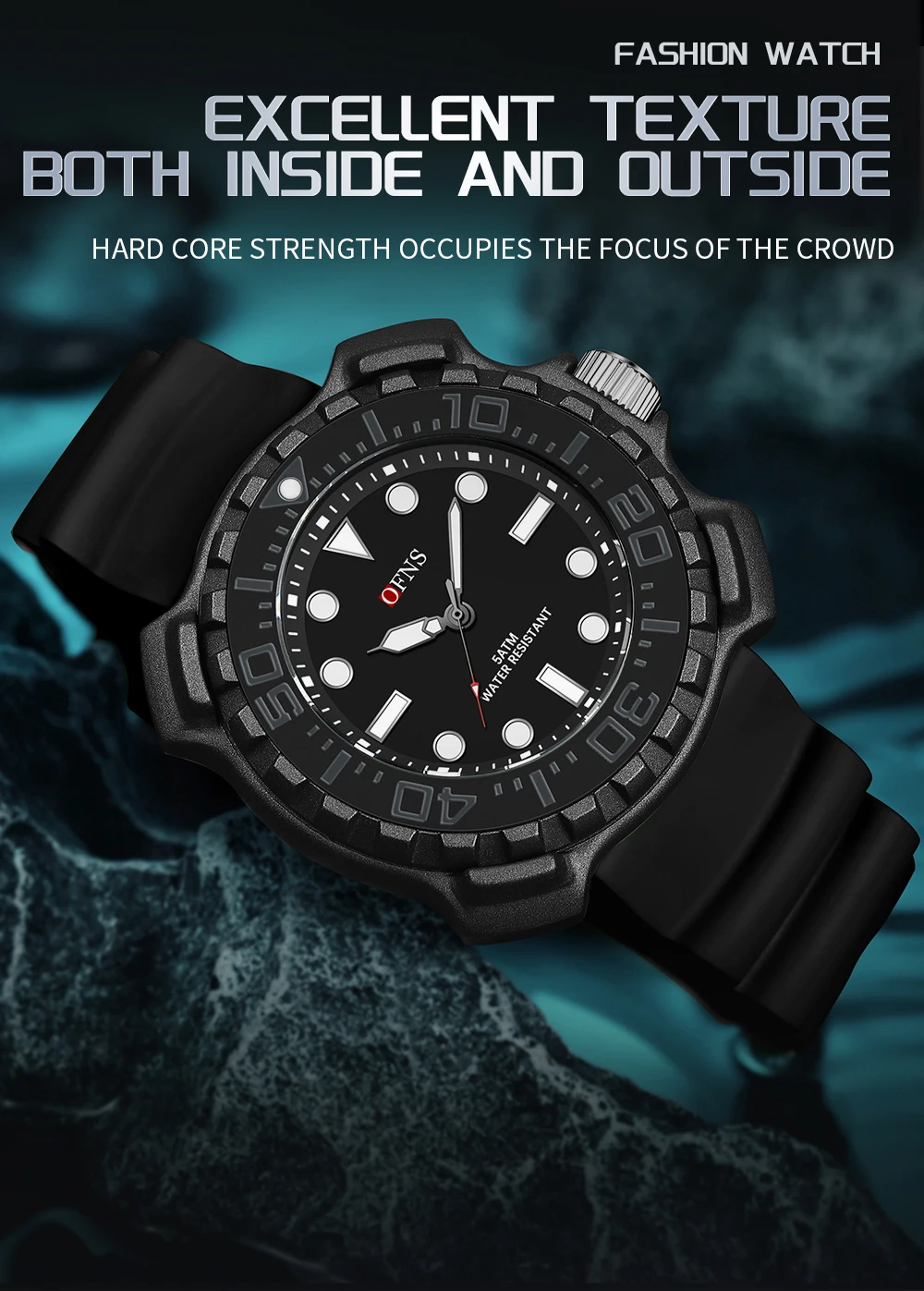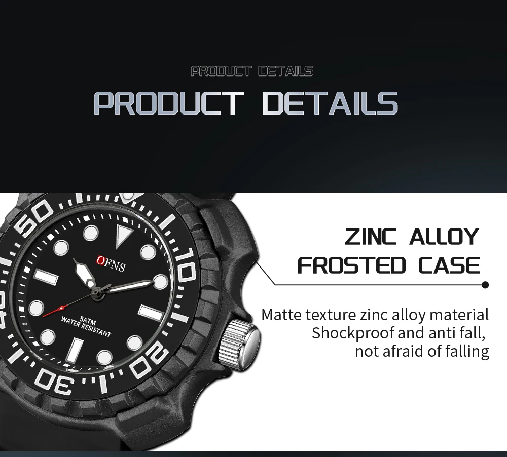 OFNS 1301 Quartz Watch Silicone Strap Fashionable and Trendy Men's Watch Simple Waterproof Electronic Quartz Watch Men's Watch