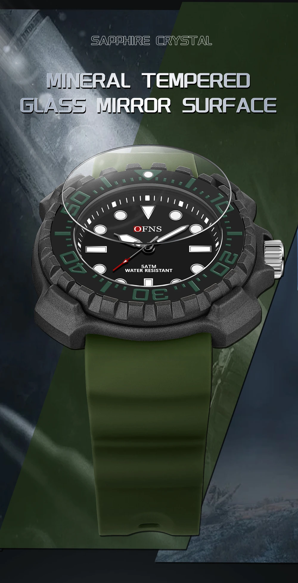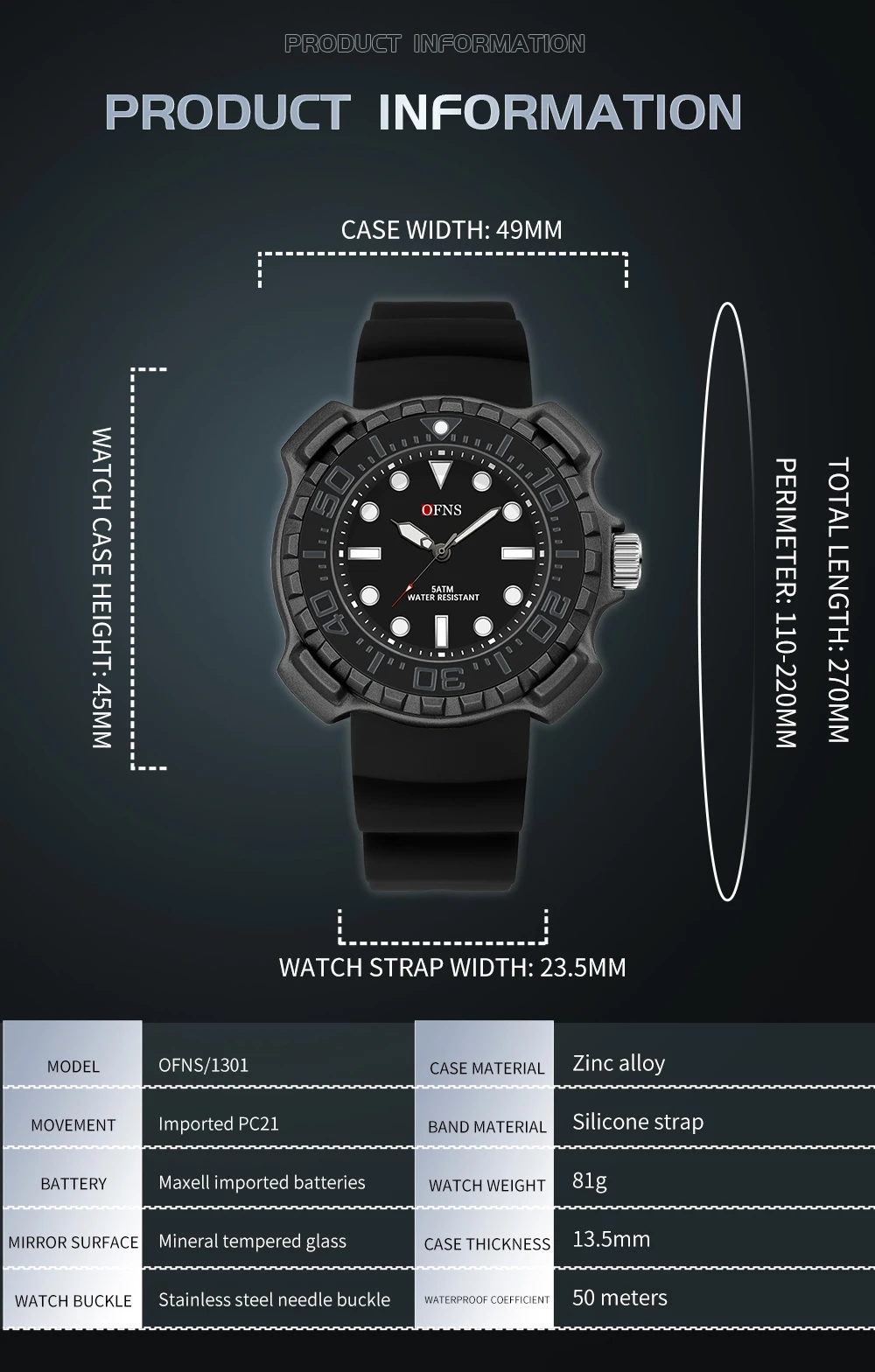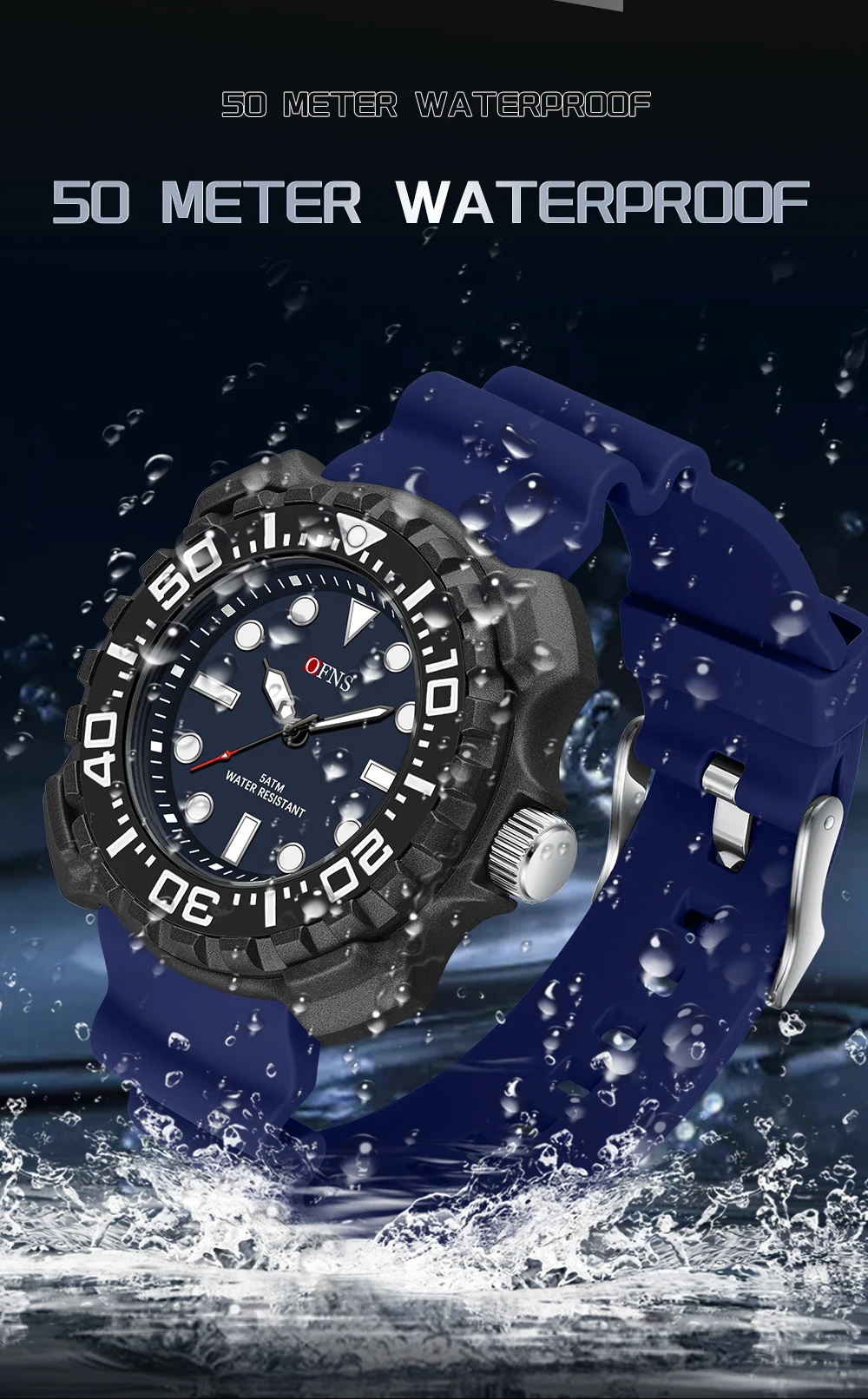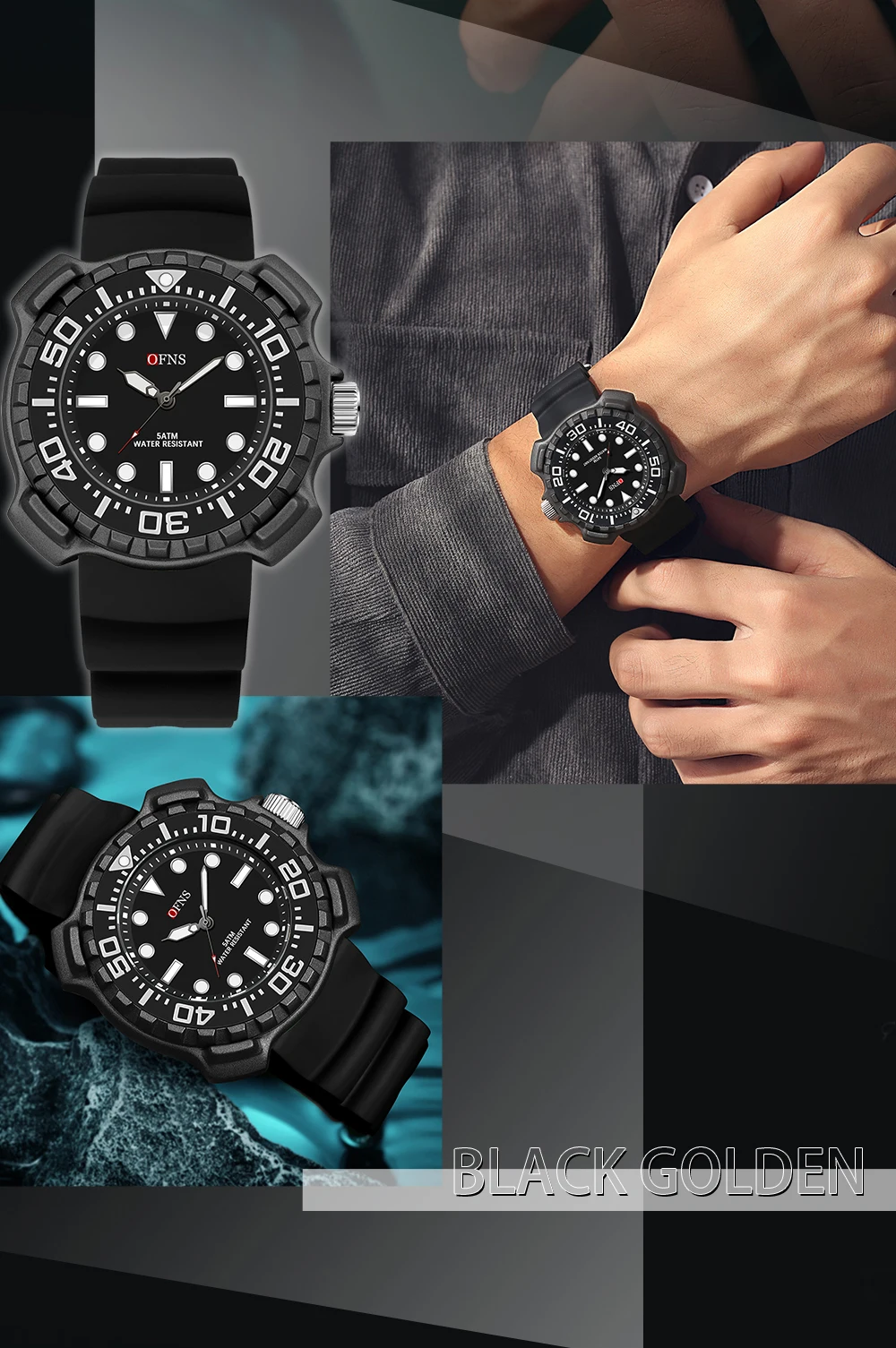 OFNS 1301 Quartz Watch Silicone Strap Fashionable and Trendy Men's Watch Simple Waterproof Electronic Quartz Watch Men's Watch