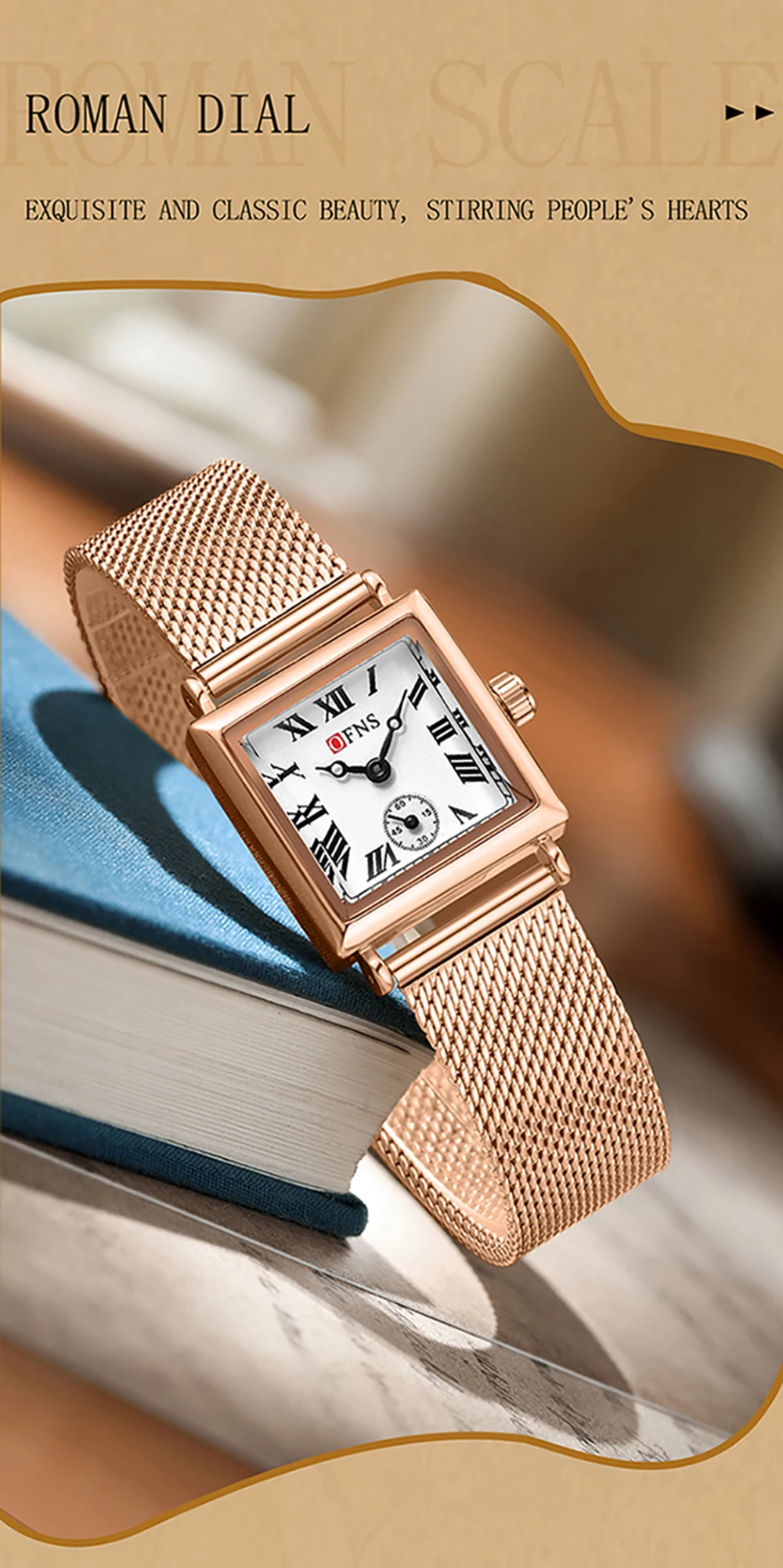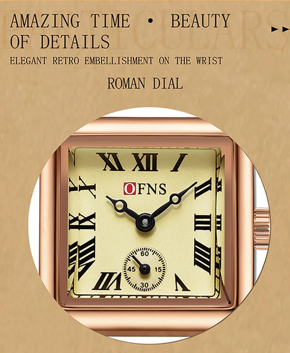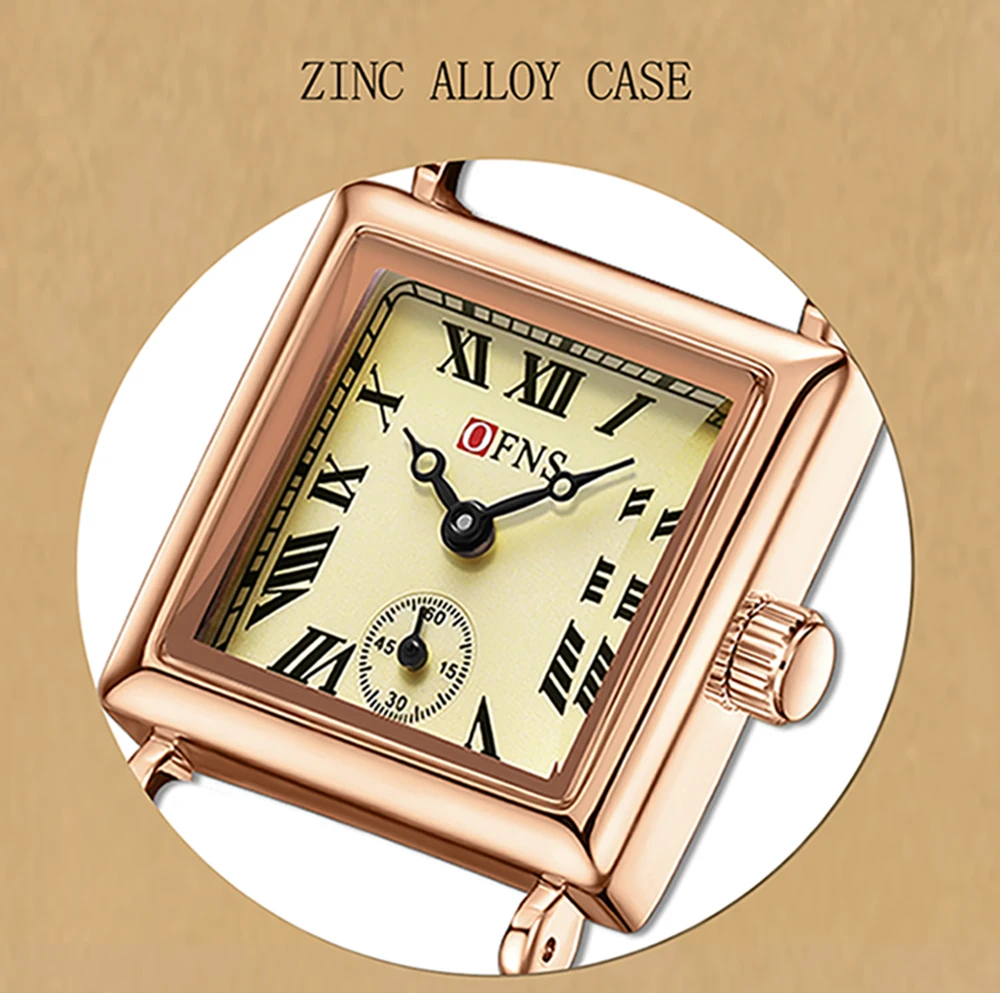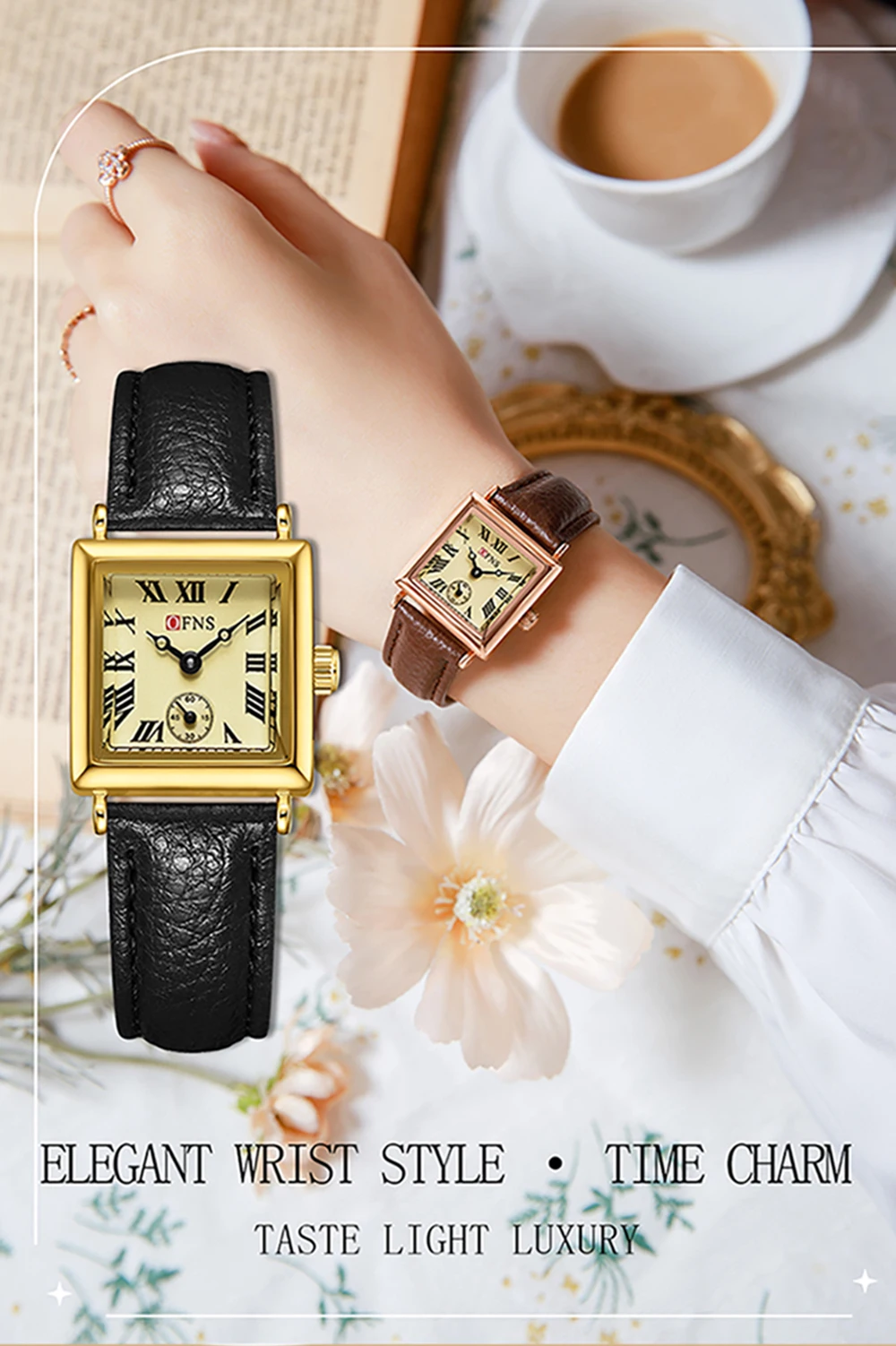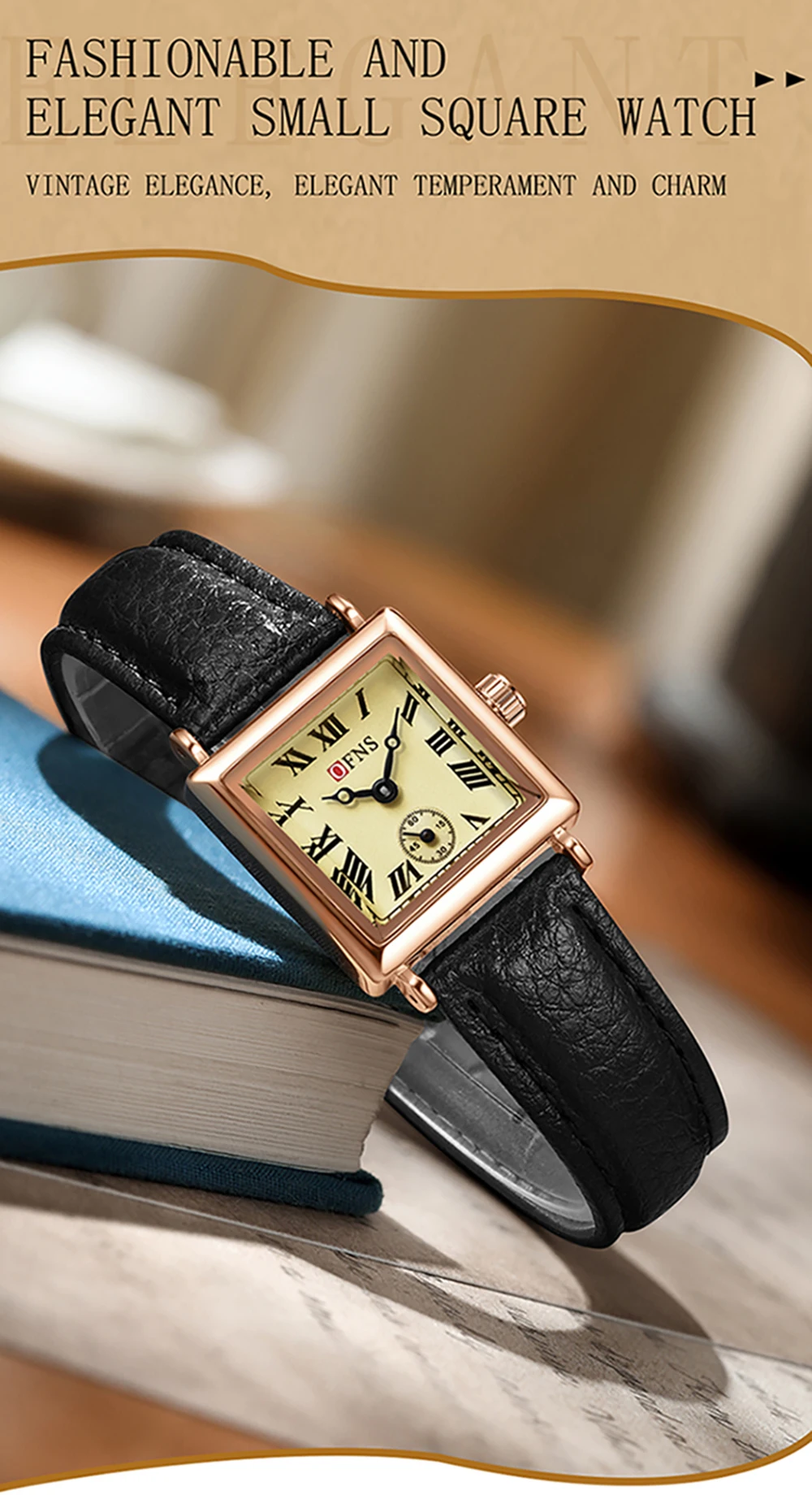 OFNS 1503 New Quartz Watch Unusual Square dial Fashionable Roman scale Two Pin Half Waterproof Women's Watch 2024