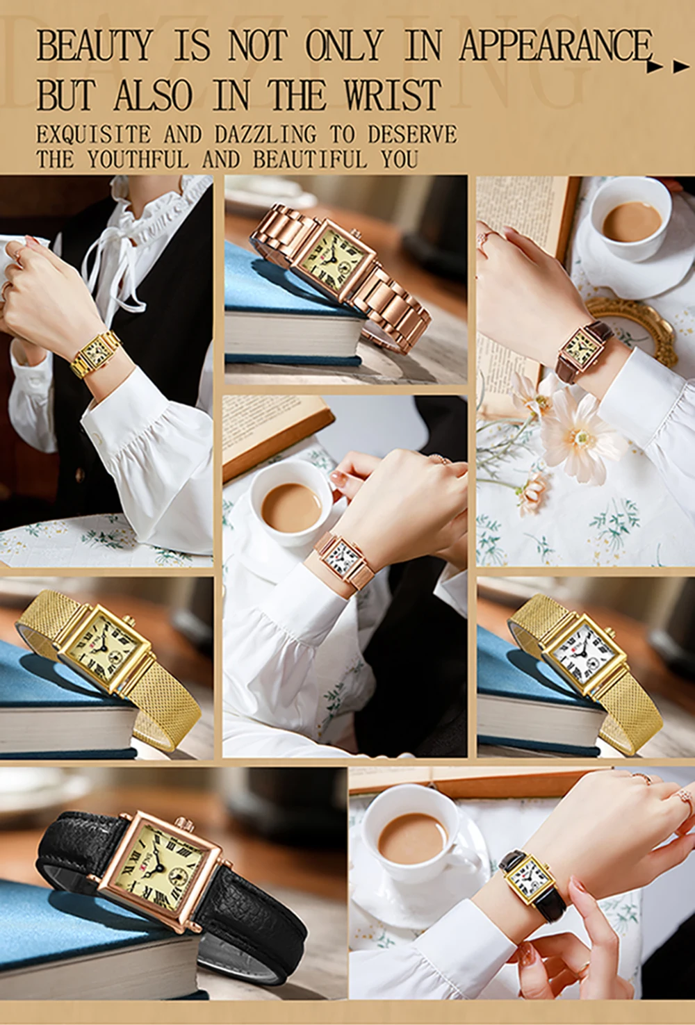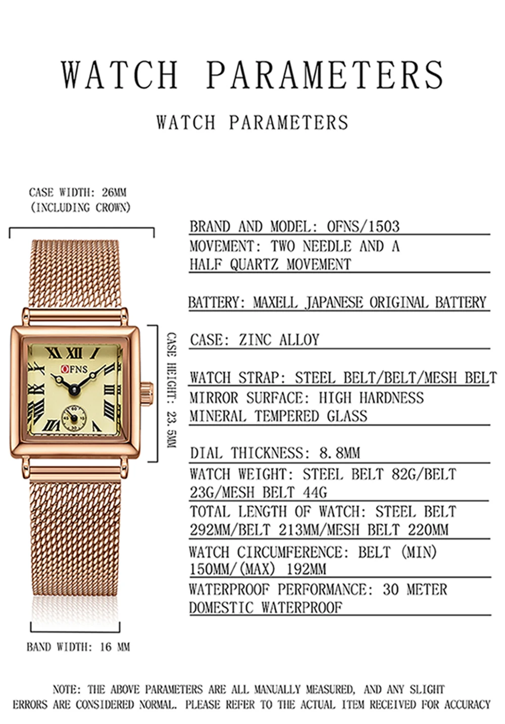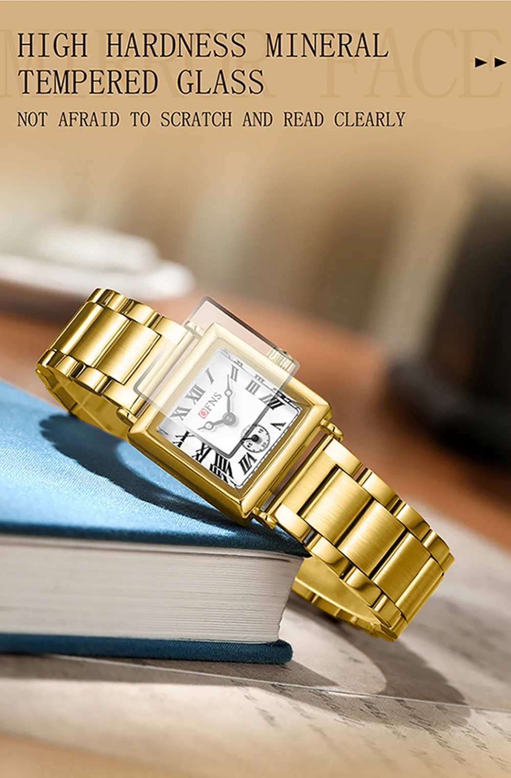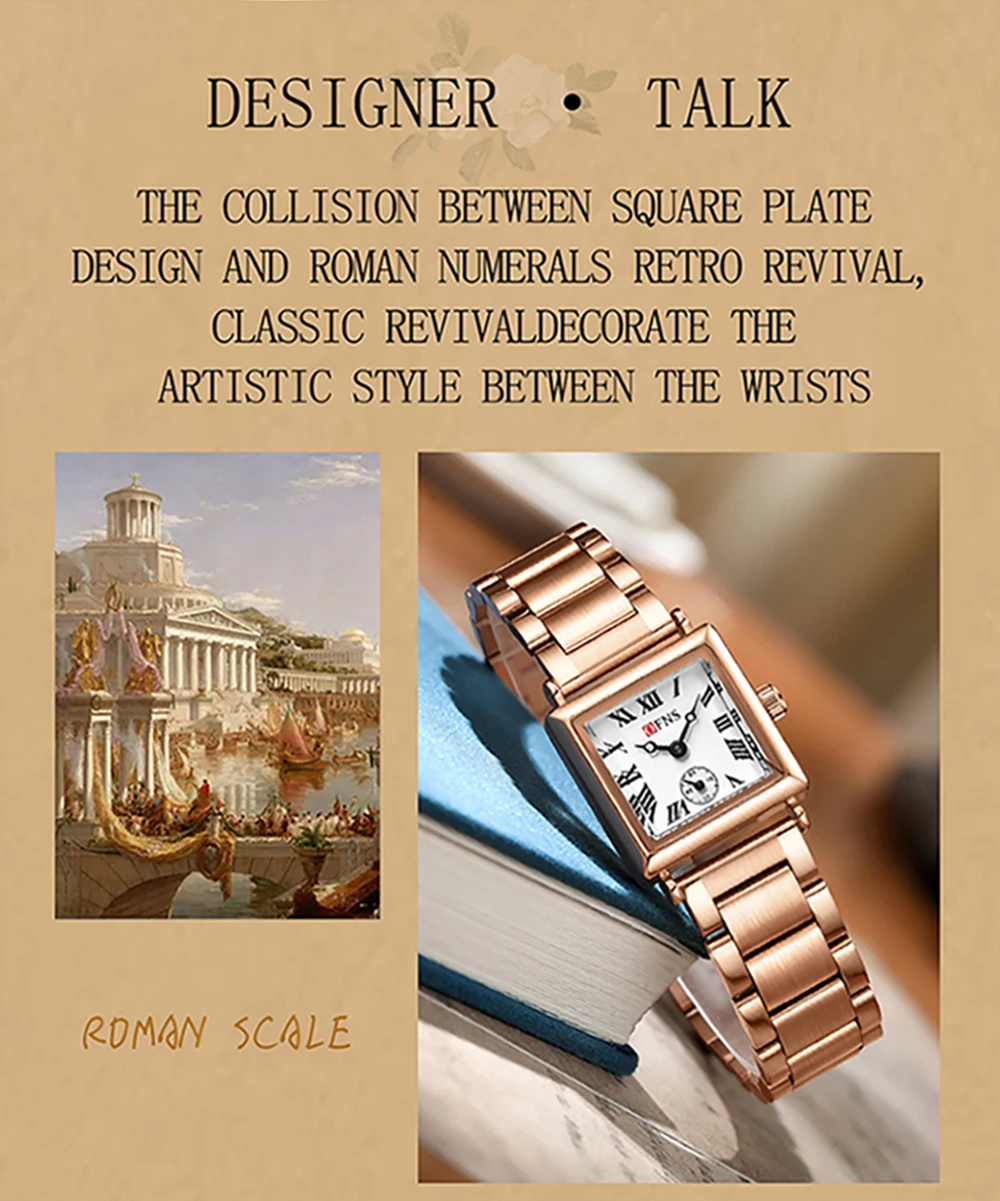 OFNS 1503 New Quartz Watch Unusual Square dial Fashionable Roman scale Two Pin Half Waterproof Women's Watch 2024