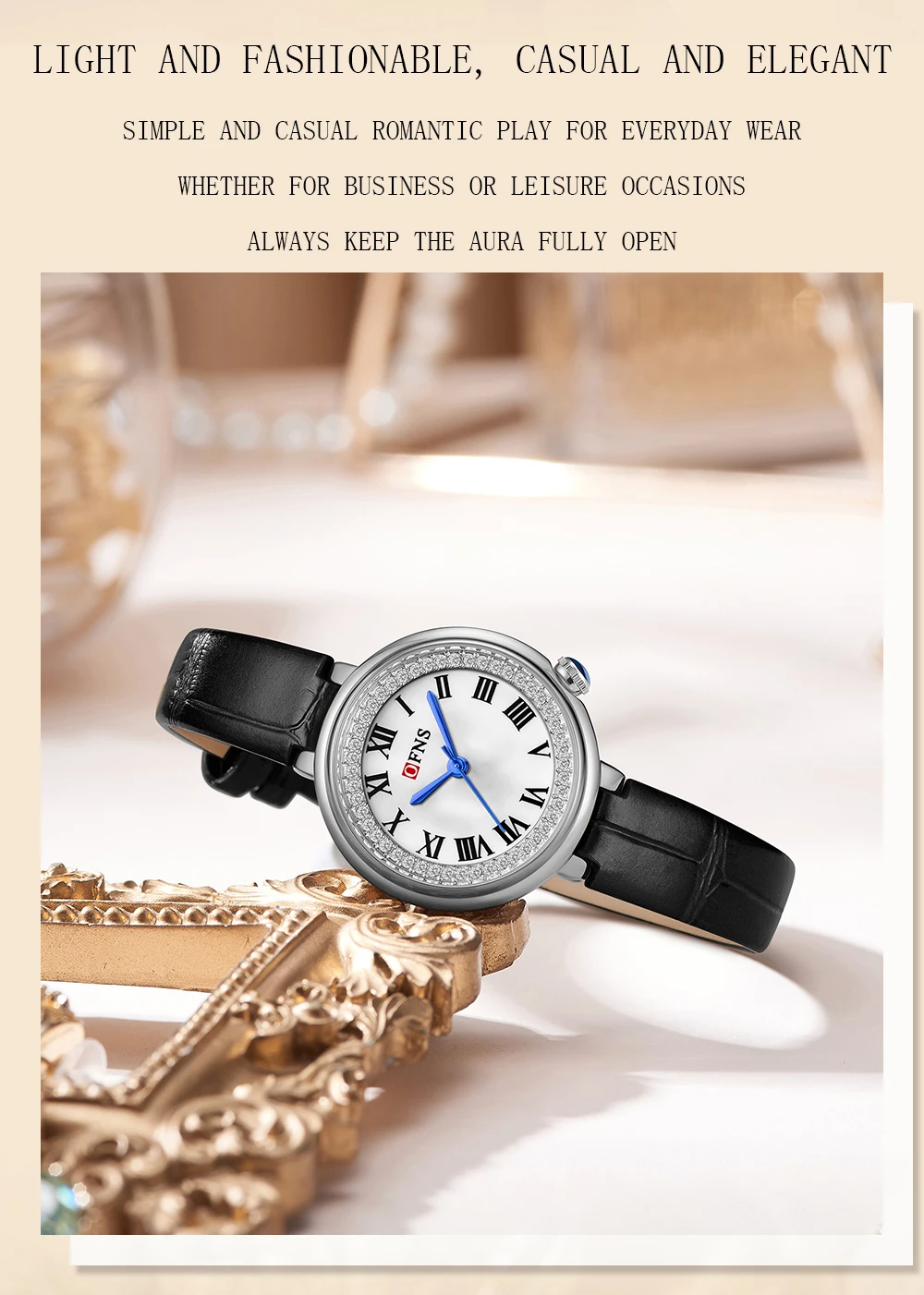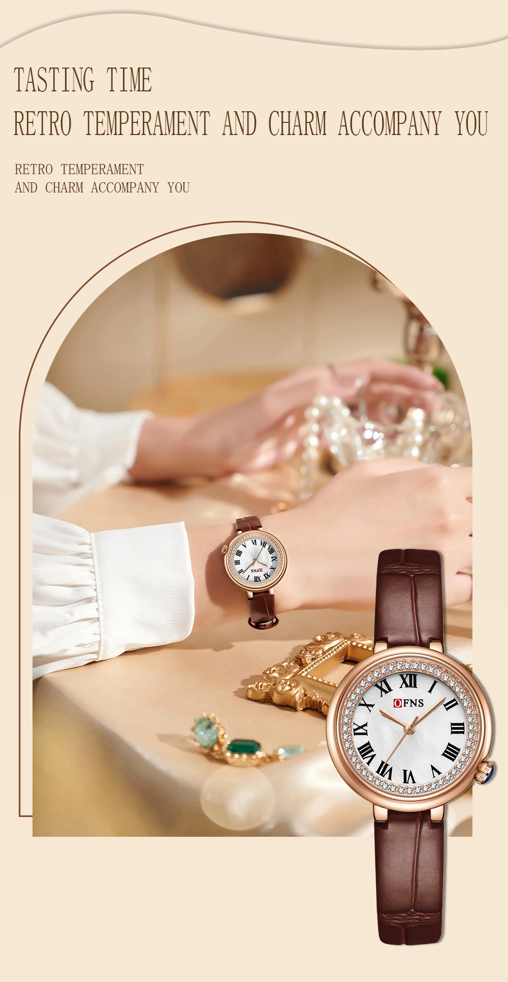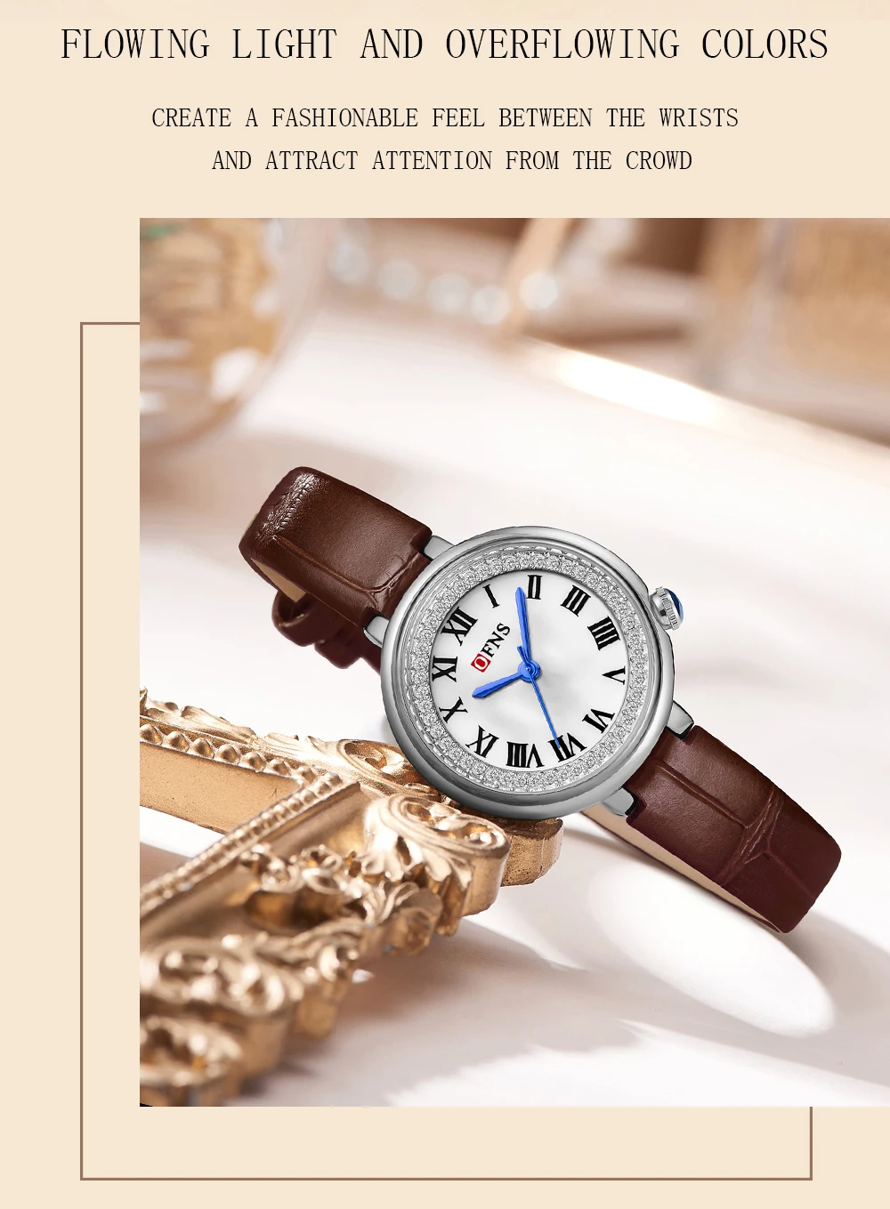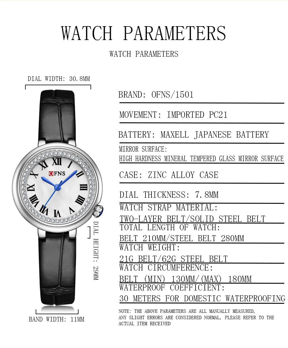 OFNS Brand 1501 Simple and Fashionable Women's Watch Belt Quartz Set with Diamond Roman Scale Classic Beimu Women's Watch 2024