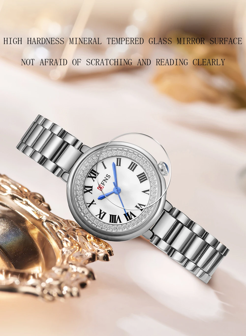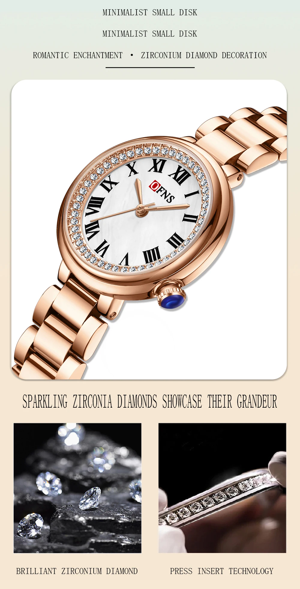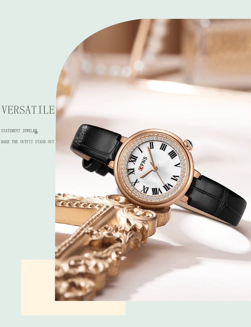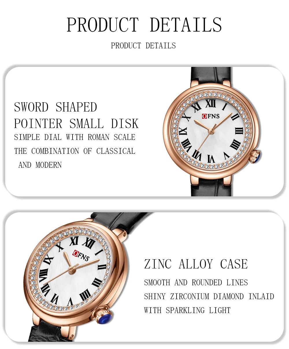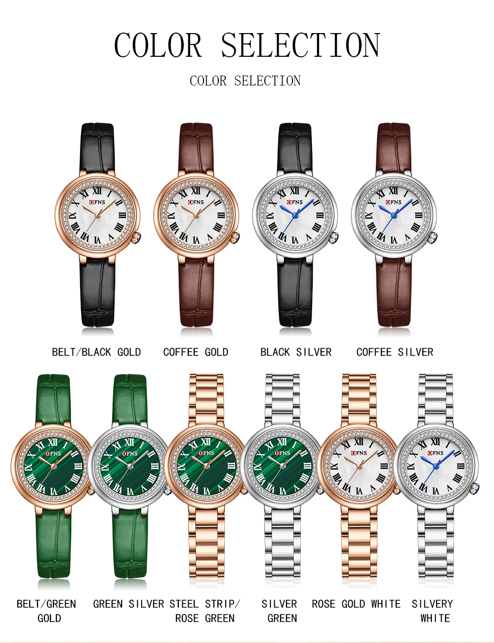 OFNS Brand 1501 Simple and Fashionable Women's Watch Belt Quartz Set with Diamond Roman Scale Classic Beimu Women's Watch 2024