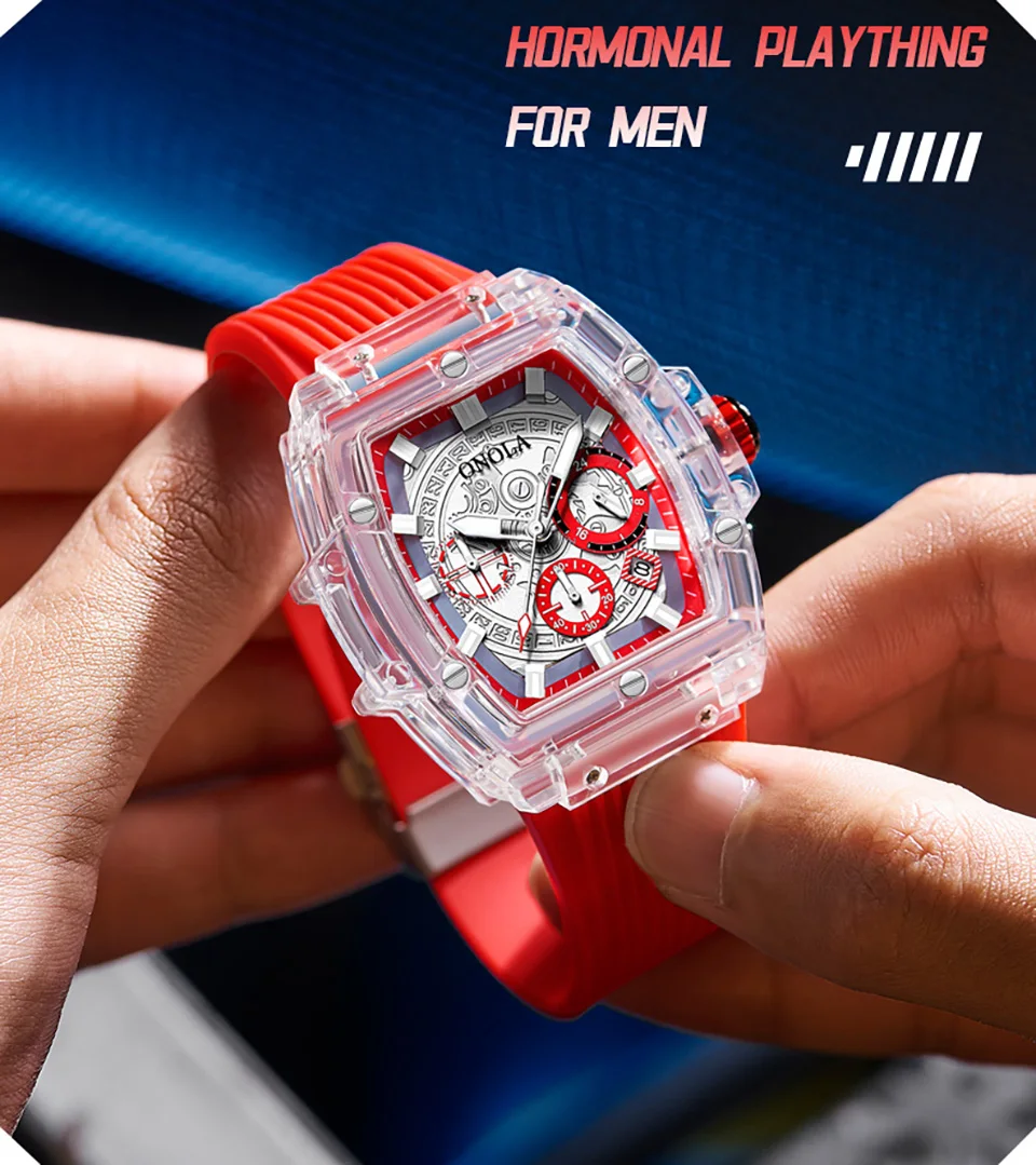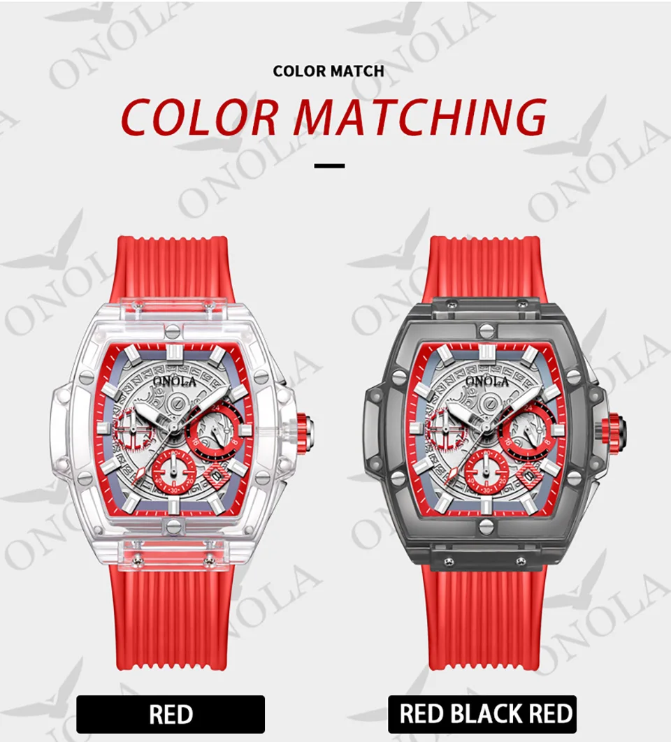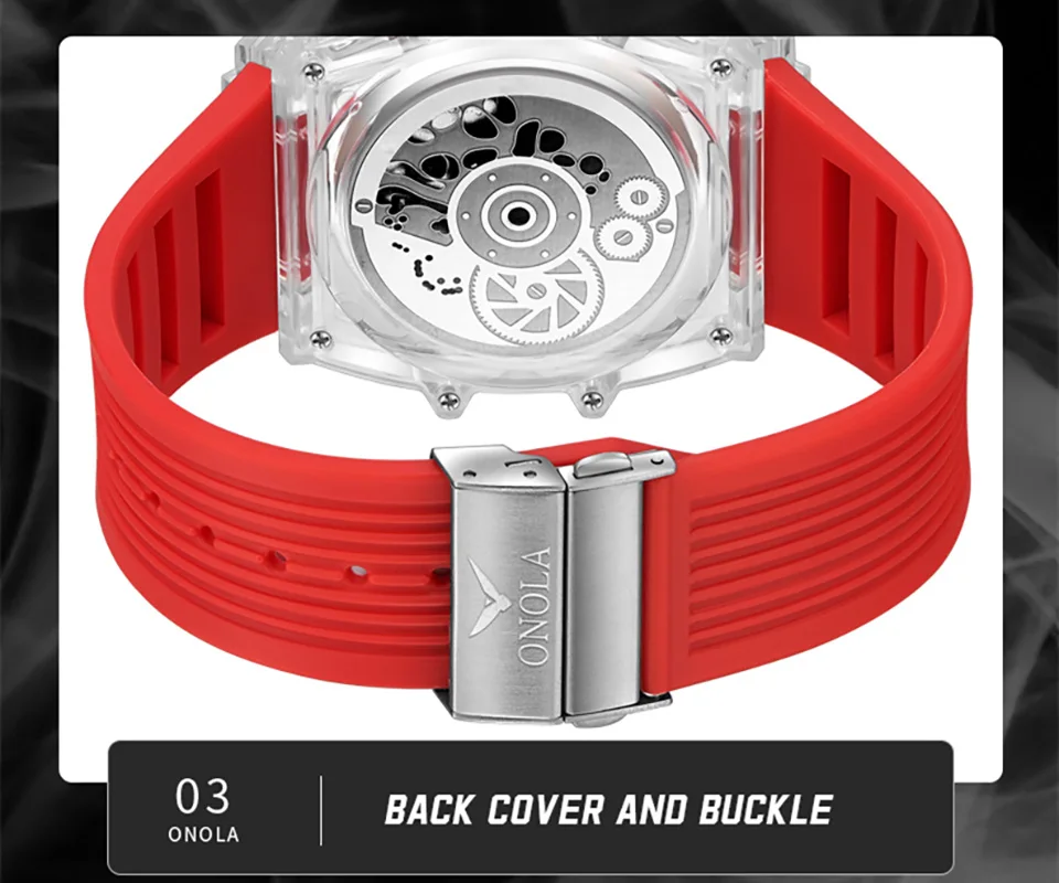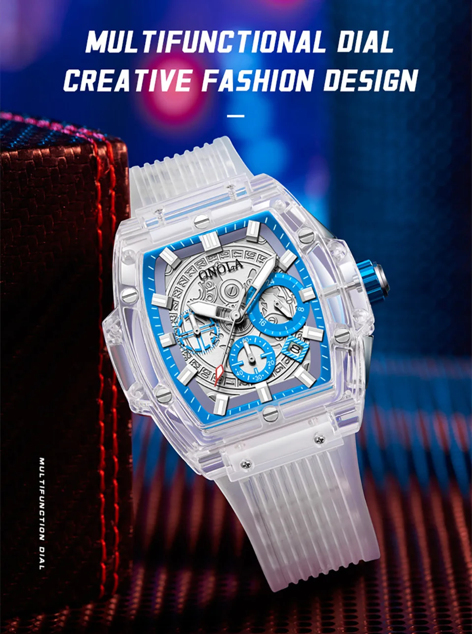 Onola brand business transparent plastic watch men women clock 2021 fashion sport casual unique quartz luxury Square men's watch