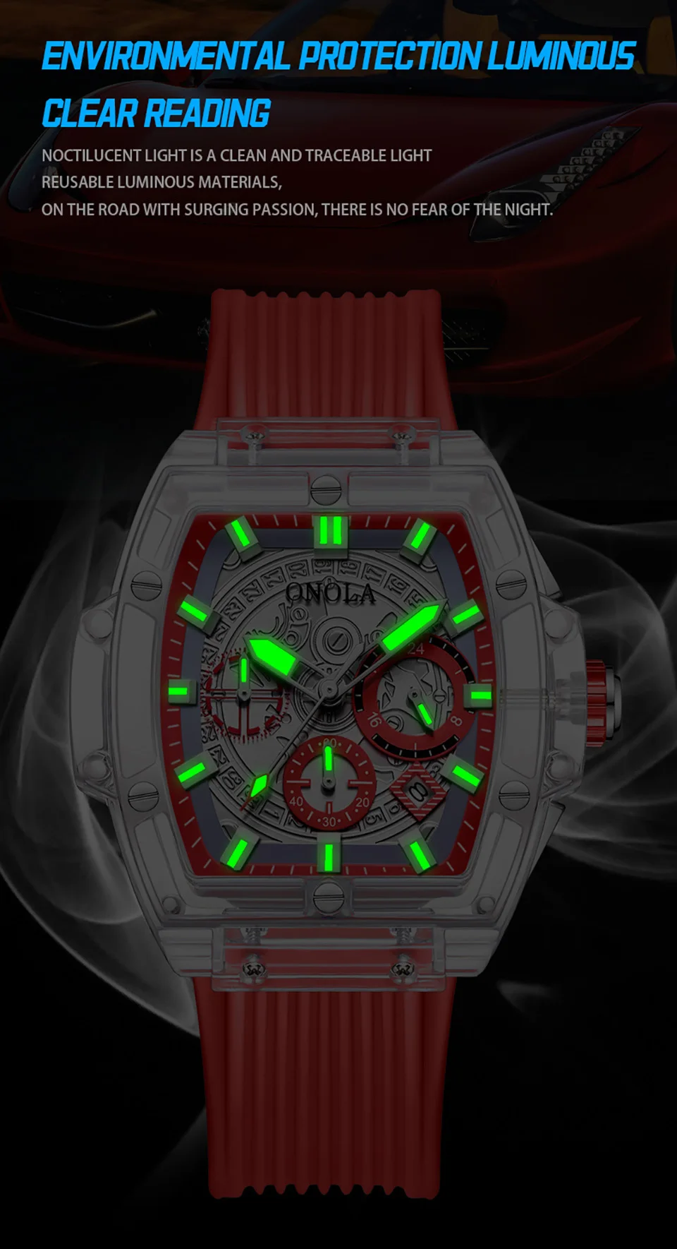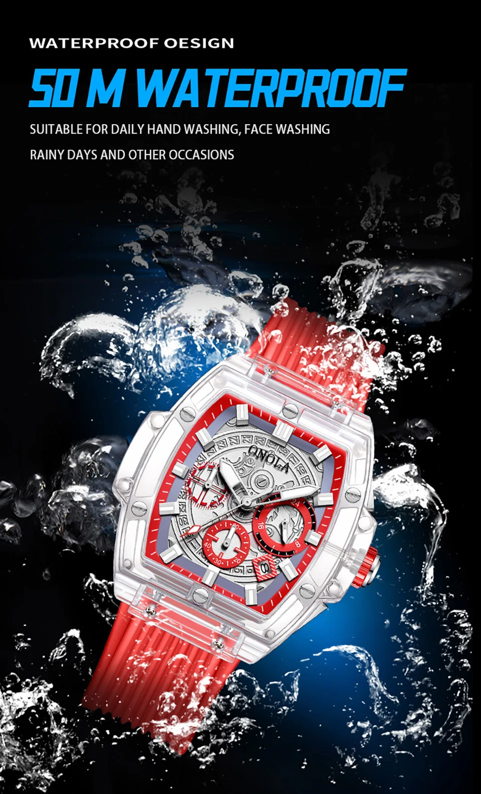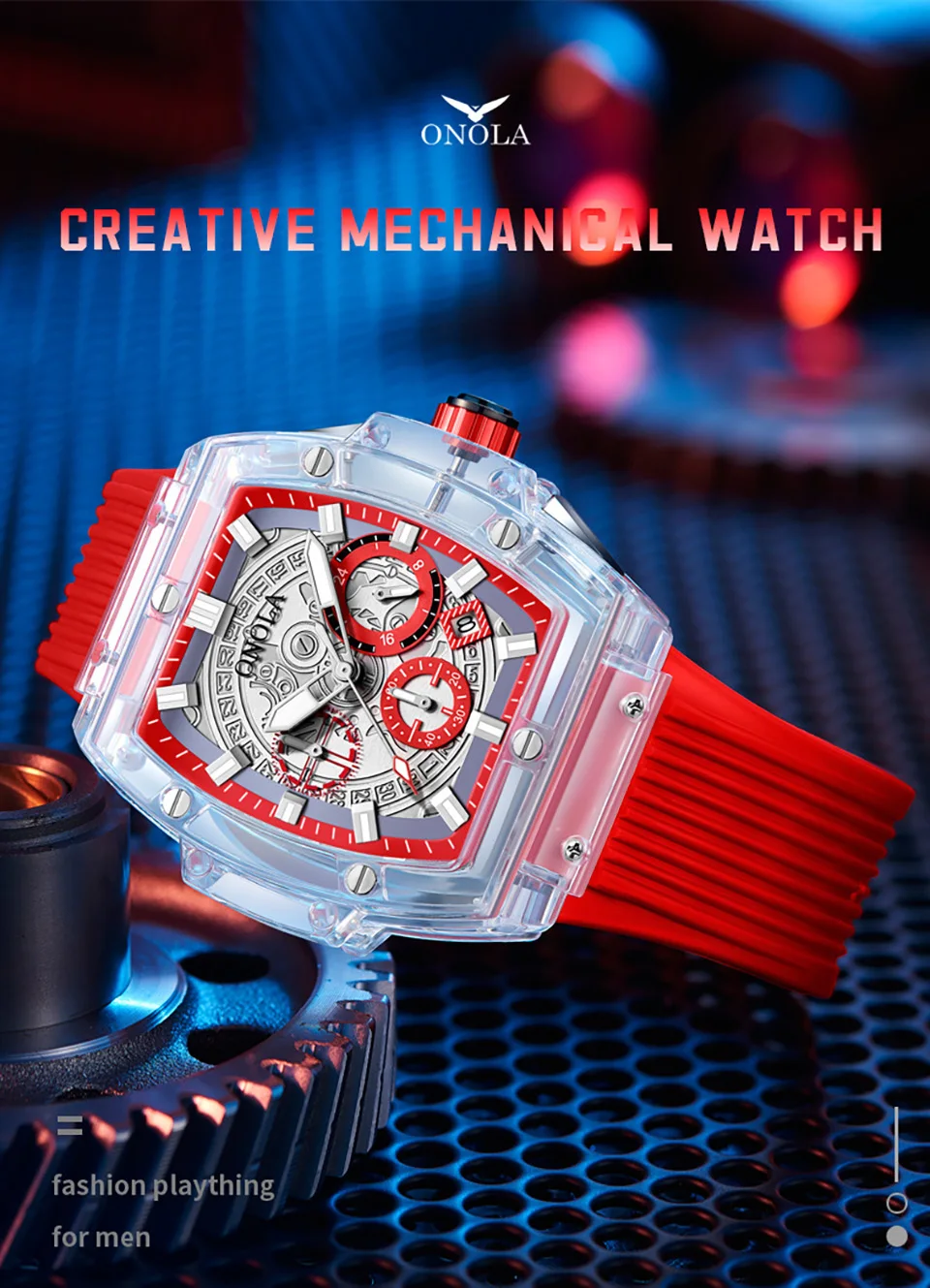 Onola brand business transparent plastic watch men women clock 2021 fashion sport casual unique quartz luxury Square men's watch